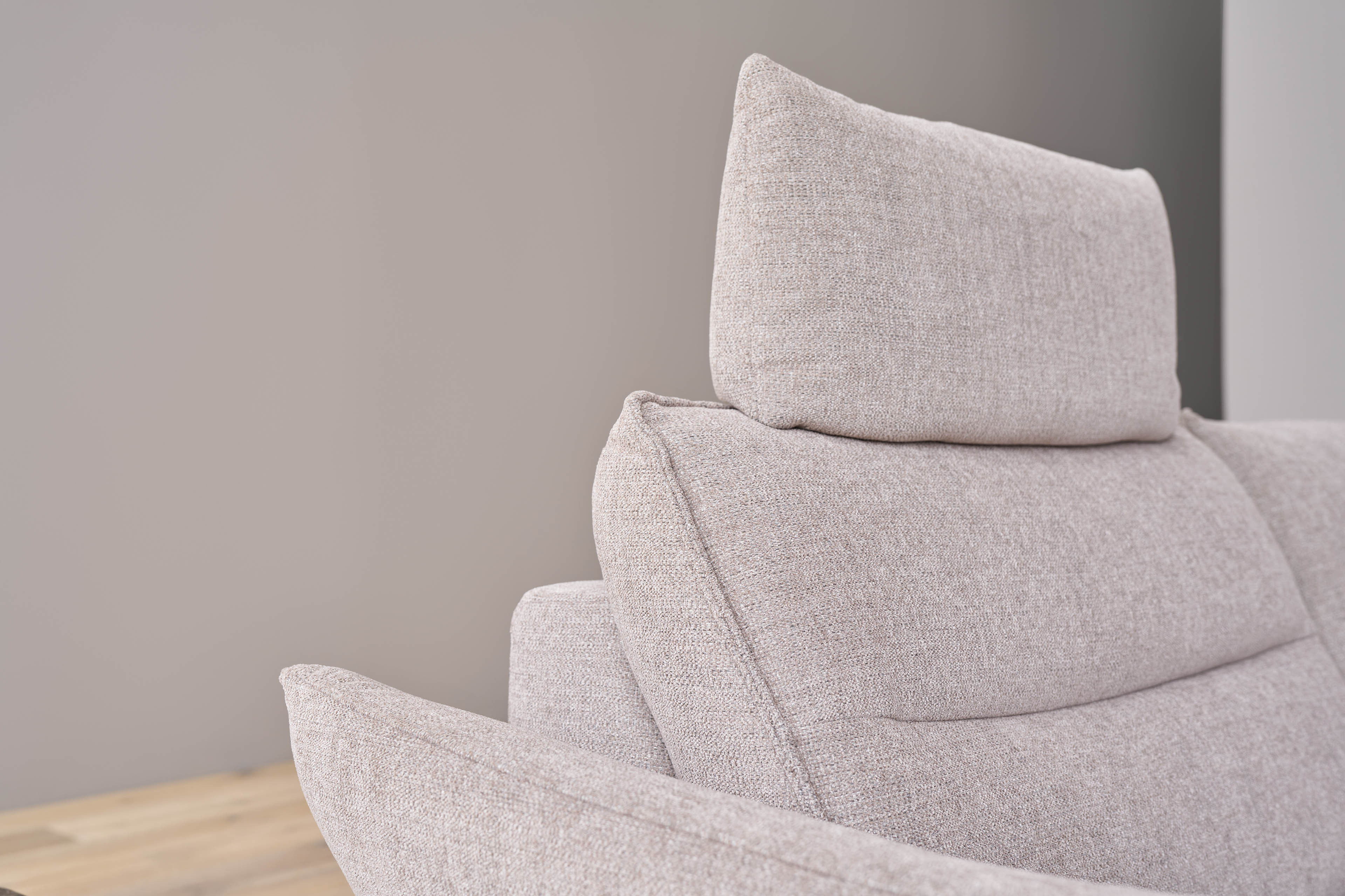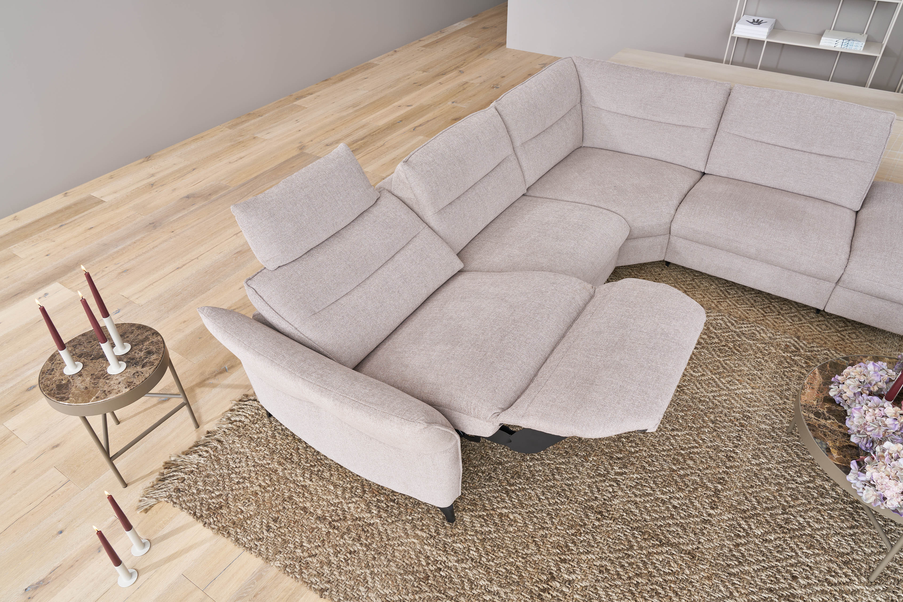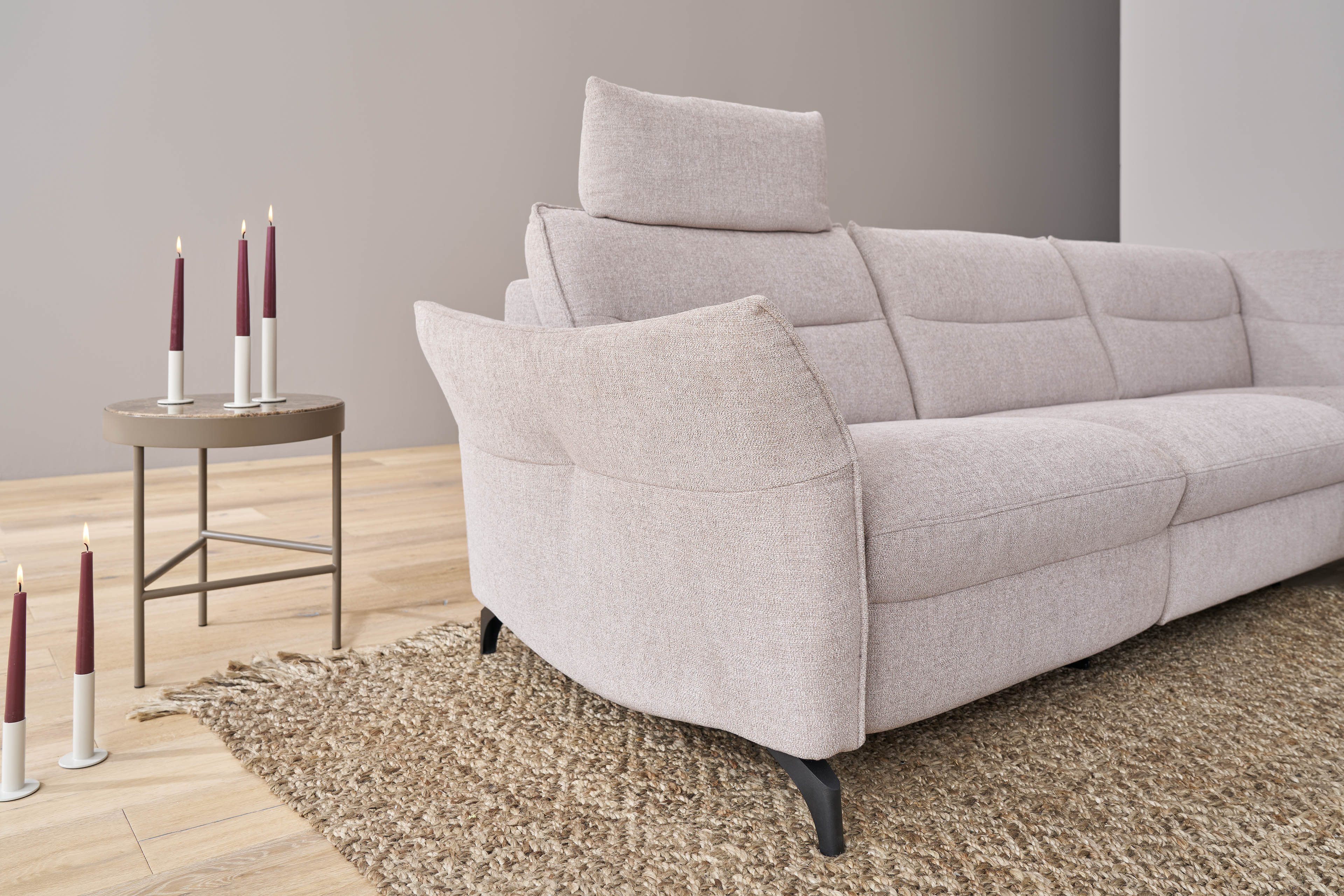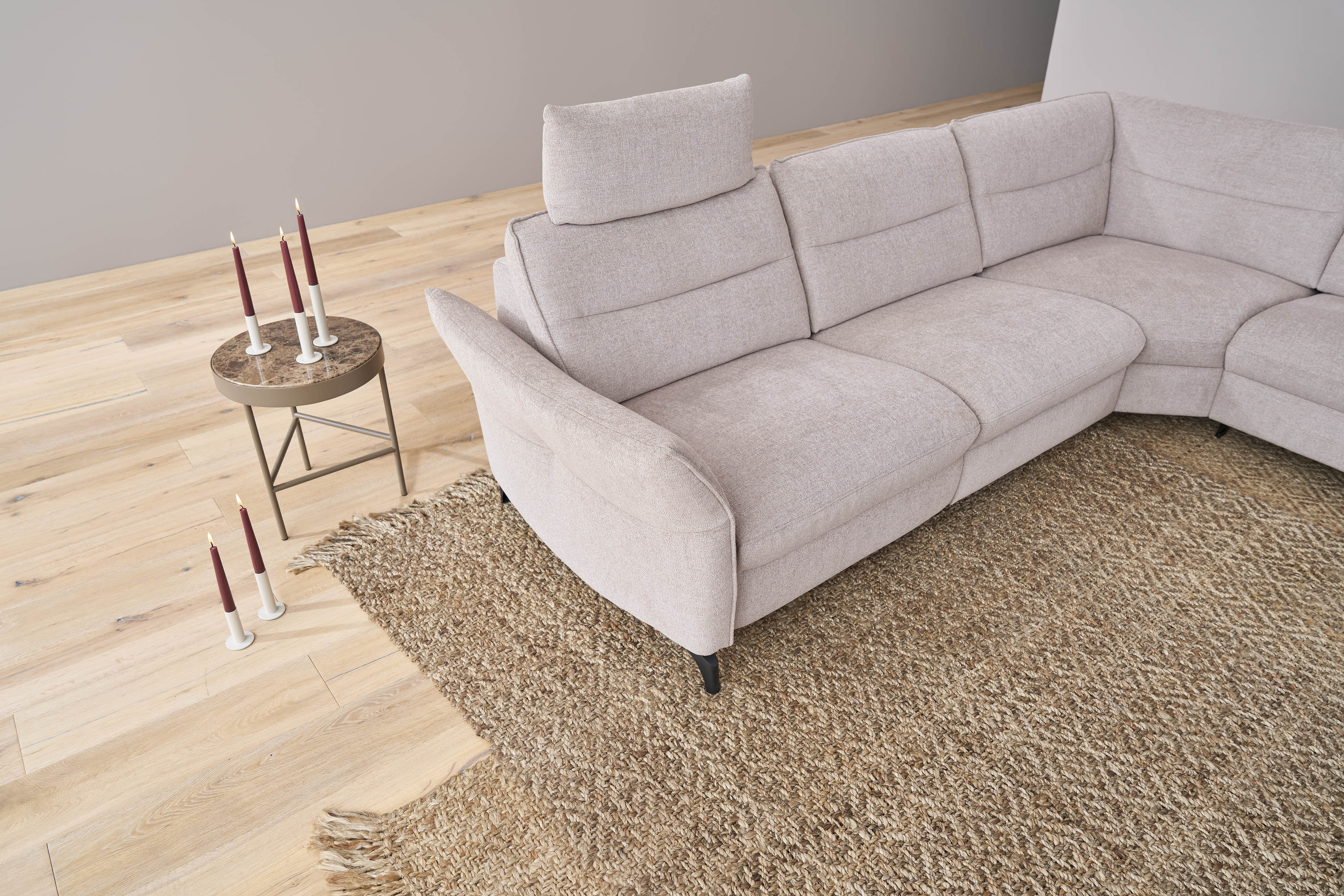 Erleben Sie Entspannung in einer völlig neuen Dimension mit dem Modell 1667 aus dem Hause Himolla, das als persönliche Ruheinsel im großen Stil weit mehr als nur eine gewöhnliche Sofagarnitur ist. Auf einem großzügigen Stellmaß von etwa 277-285 x 237 cm bietet diese Eckcouch, bestehend aus einem komfortablen 2,5-Sitzer, einer Ecke und einem offenen Abschlusselement, genau den Freiraum, den Sie nach einem stressigen Tag verdienen, sei es bei einem geselligen Spielenachmittag mit der Familie, einem kuscheligen Kinoabend zu zweit oder beim ganz privaten Rückzug mit einem spannenden Buch, welches Sie so sehr fesselt, als wären Sie inmitten der Geschichte. Damit jeder Nutzer seinen individuellen Komfort findet, steht Ihnen die hochwertige Superlastic-Formschaum-Polsterung in drei unterschiedlichen Härtegraden zur Verfügung - von angenehm weich, die softe Variante, über die Universalpolsterung "med", bis hin zum festen und aufrechten Sitzen, mit der Ausführung "plus mit Federkern", während die optional hinzubuchbare Relaxfunktion für den 2,5-Sitzer - wahlweise manuell oder motorisch steuerbar - ein stufenloses Gleiten in die perfekte Liegeposition ermöglicht. Ergänzt wird dieses Wohlfühlerlebnis durch weitere praktische Annehmlichkeiten, wie die bereits modelltypisch integrierte Armteilverstellung, die sowohl als bequeme Ablage beim Lesen als auch als stützendes Kopfpolster für ein kurzes Nickerchen fungiert, sowie durch optionalen Stauraum im Abschlusselement und ergonomische Kopfstützen, die ein erholsames Zurücklehnen möglich machen. Auch optisch lässt sich die Garnitur perfekt an Ihr Interieur anpassen, da der Hersteller neben dem abgebildeten dezenten Design aus Chenille-Flachgewebe in der Farbe "seashell" eine exklusive Palette an hochwertigen Stoff- und Lederqualitäten in verschiedensten Farbintensitäten bereithält. Lassen Sie die Hektik des Alltags hinter sich und machen Sie Ruhe sowie Behaglichkeit zum neuen Mittelpunkt Ihres Zuhauses - mit dem Himolla Polstersofa 1667.