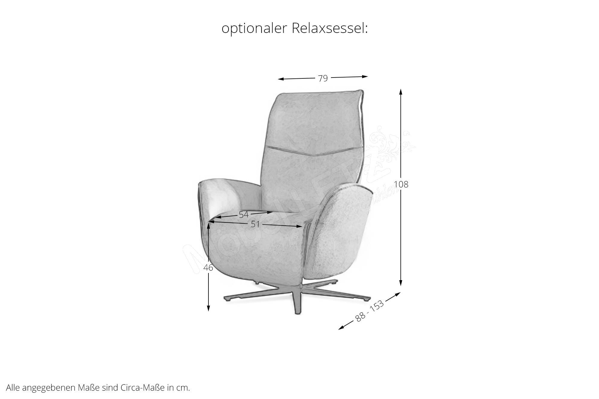 ca. BTH: 79/88/108 cm, Sitzhöhe ca. 46 cm, Sitztiefe ca. 54 cm, Sitzbreite ca. 51 cm, Liegelänge ca. 153 cm