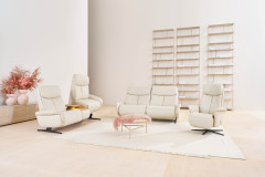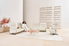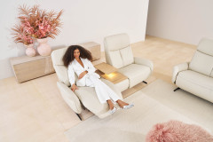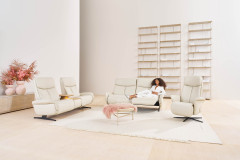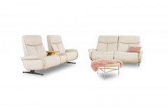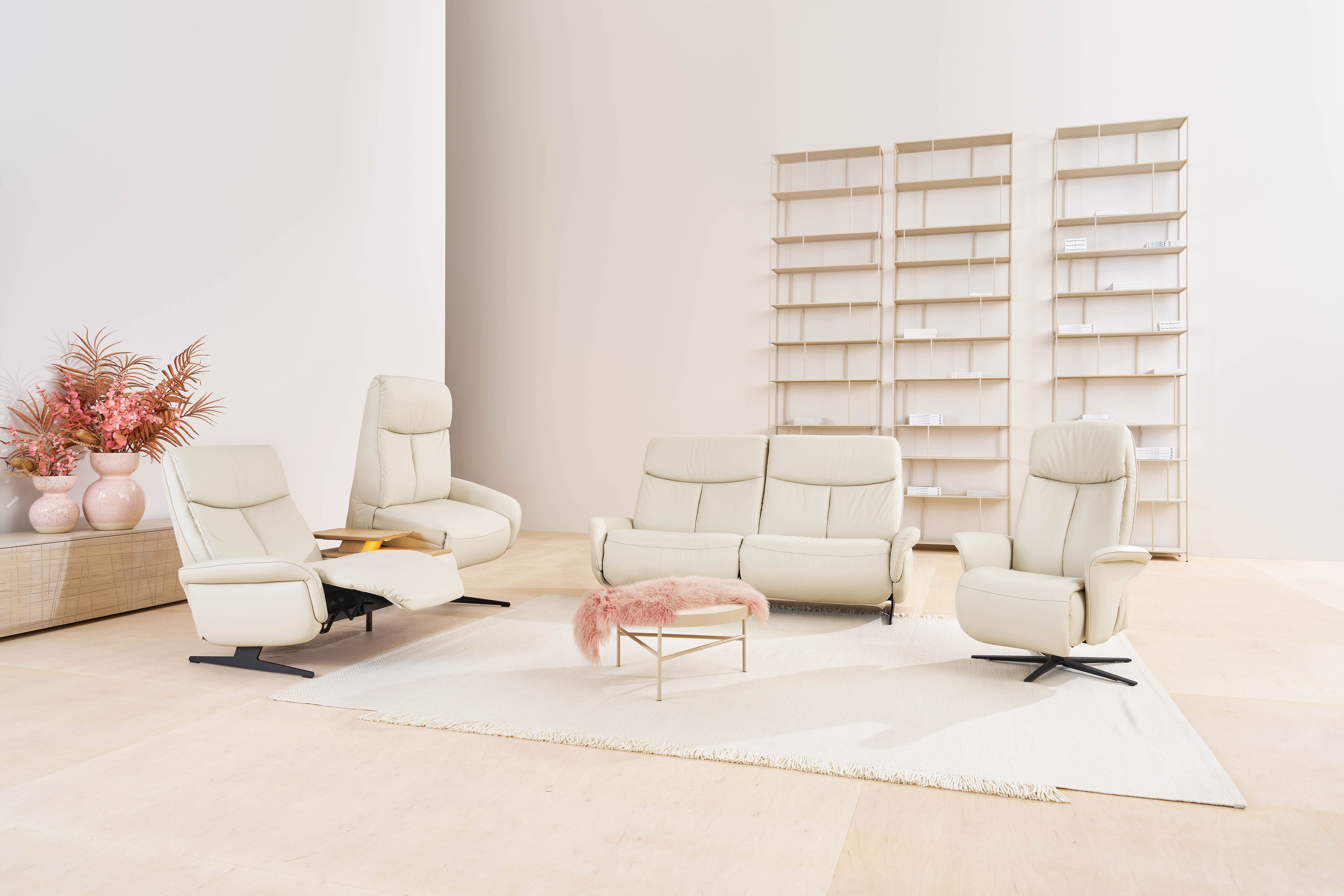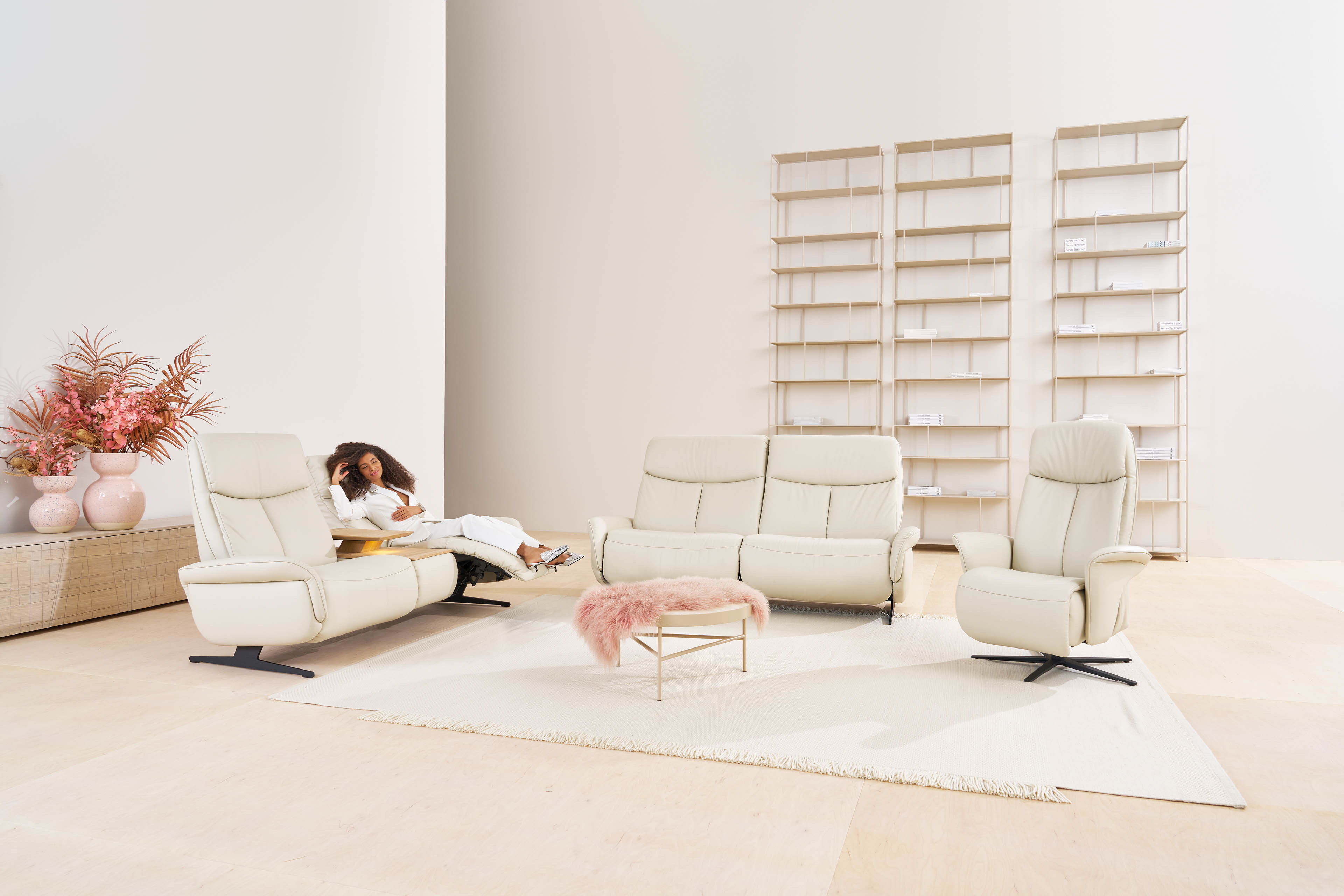 Ein Wohnraumklassiker, der auch in Ihrem Zuhause nicht fehlen darf - 4550 aus dem Hause Himolla, dem Polstermöbelhersteller, der für ausgezeichneten Sitzkomfort bekannt ist. Und auch bei diesem Modell wurde Gemütlichkeit ganz groß geschrieben: Eine Formasoft-Kaltschaumpolsterung im Rücken sowie eine wählbare Sitzpolsterung von weich bis fest bringen den Komfort mit, den wir benötigen, um nach unserem Feierabend wunderbar entspannen zu können und den stressigen Alltag hinter uns zu lassen. Besonders hervorzuheben ist hier die bereits inkludierte manuelle Relaxfunktion des 2,5-Sitzers, welche sich zum Erholen, Ausspannen sowie Tagträumen ideal eignet und mit einer komfortablen Aufstehhilfe, die ein müheloses Erheben aus dem Sitz ermöglicht, ergänzt werden kann. Ferner überzeugt dieses Element ebenso mit einem praktischen Zwischentisch, der zu heimischen Kinoabenden einlädt und stets einen sicheren Platz für Getränke sowie Snacks bietet. Aber auch der 3-Sitzer kann mit einer manuellen oder motorischen Relaxfunktion, letztere bedienbar über einen Kippschalter seitlich am Sitzfeld, ausgestattet werden und so auch für die restlichen Familienmitglieder einen Ort zum gemütlichen Zurücklehnen schaffen. Hinter einer Menge Funktionalität muss sich jedoch auch das Design nicht verstecken, denn die moderne Polstergarnitur zeigt sich in einem cremefarbenen Echtledergewand, dank dessen zeitloser Farbgebung es sicher auch hervorragend in Ihre vier Wände passt und für eine freundliche Aura sorgt. Sollte dies jedoch nicht der Fall sein, dann stöbern Sie einfach in der facettenreichen Bezugsauswahl des Herstellers unter dem Punkt "Wunschbezug - Farbe ändern", bis Sie Ihr präferiertes Bezugsgewand gefunden haben. Komplettieren Sie das Angebot zusätzlich mit einem stilvollen Relaxsessel aus dem Hause Himolla und lassen auch Sie Ihre Wohlfühlträume wahr werden. Die perfekte Symbiose aus praktischen Funktionen und elegantem Look - 4550 aus der CUMULY COMFORT Kollektion von Himolla Polstermöbel.