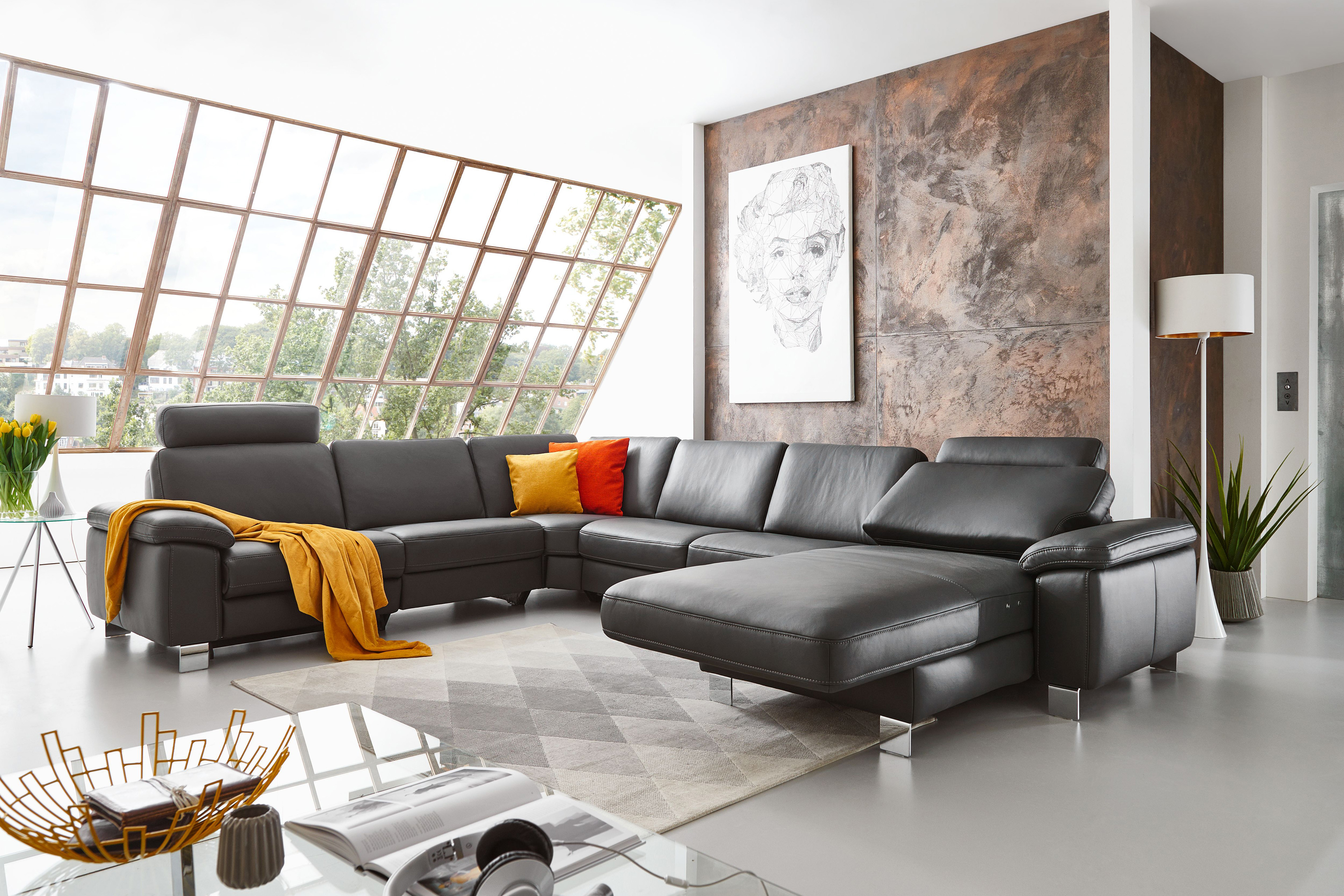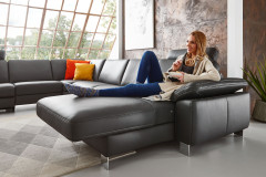 Genügend Platz für die ganze Familie - hier finden Sie großzügige Liegeflächen, um am Freitag nach der Arbeit das Wochenende entspannt einzuläuten. Gemütliche Stunden in Ihrem Wohnzimmer stehen auf dem Programm, wenn HU-SC17009 von Hukla in Ihrem Zuhause Einzug hält. Die wandelbare Wohnlandschaft bietet nicht nur ein stilvolles Design im zeitlosen, anthrazitfarbenen Lederbezug, sondern auch maximale Flexibilität und Anpassungsmöglichkeiten auf einer Größe von ca. 278 x 364 x 166 cm. Hier können Sie Ihren persönlichen Stil sowie Ihre individuellen Vorlieben perfekt zum Ausdruck bringen: Wählen Sie aus verschiedenen Holz- oder Metallfüßen, Armlehnen, Sitzausführungen und Nahtbildern, um das Gesamtbild des XXL-Sofas zu vervollständigen. Darüber hinaus bietet die Sitzgelegenheit eine wählbare Schlaffunktion. Laden Sie doch mal wieder zum kuscheligen Mädelsabend ein und stellen Sie den Sekt dafür kalt, im Ernstfall haben Sie dann genügend Platz, um ein, zwei oder sogar drei Übernachtungsgäste zu beherbergen. Dank der hochwertigen Verarbeitung und der Auswahl feinster Materialien verspricht die Couch ferner höchsten Sitzkomfort sowie Langlebigkeit. Ihnen gefällt der abgebildete Bezug nicht und die Zusammenstellung haben Sie sich eigentlich auch etwas anders vorgestellt? Dann stehen Ihnen unsere freundlichen Einrichtungsexperten gern beratend per E-Mail, Kontaktformular, im Live-Chat oder via Telefon zur Verfügung, um Ihren Wohntraum mit HU-SC17009 von Hukla Polstermöbel wahrwerden zu lassen.