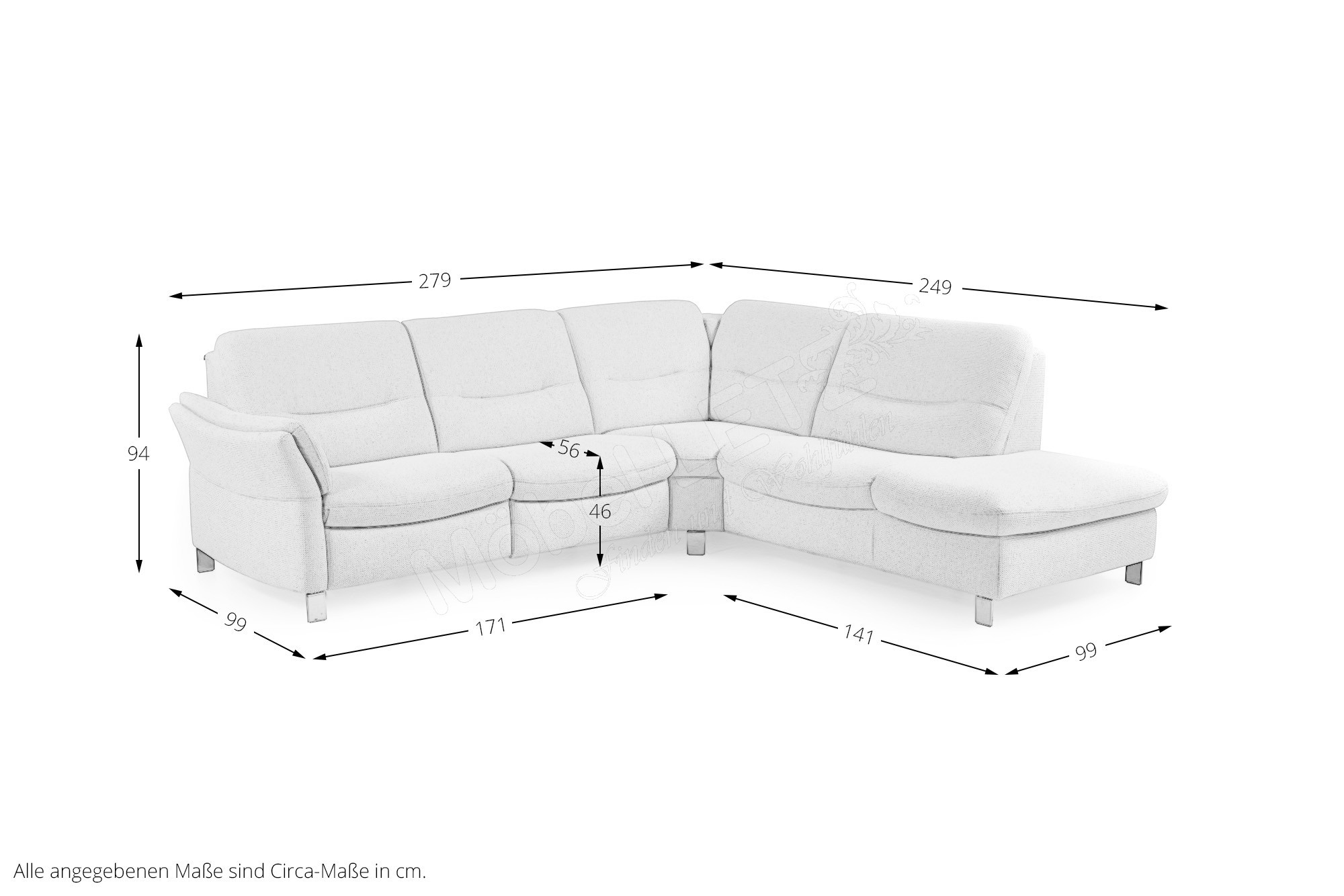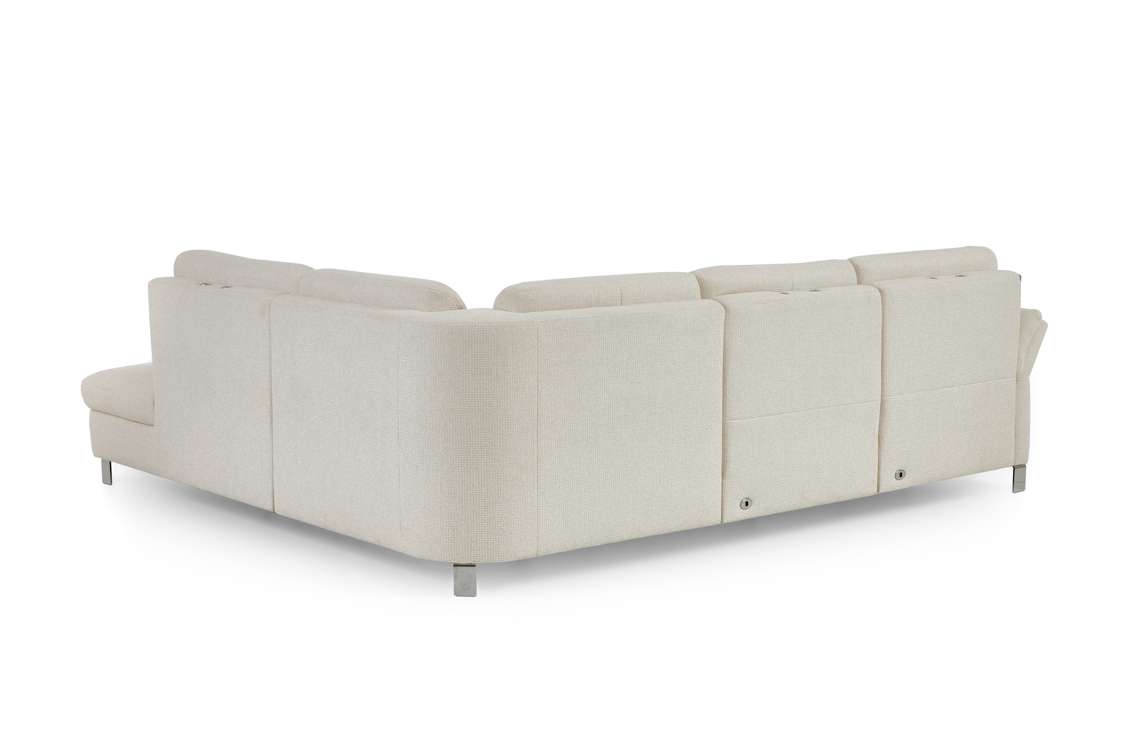 Sie möchten Ihr Wohnzimmer etwas erneuern oder sind gerade umgezogen und auf der Suche nach einer neuen Garnitur, welche nicht nur optisch ein Hingucker ist, sondern auch ausreichend Platz bietet? Dann stellen wir Ihnen gerne das elegante Ecksofa HU-SF24080 aus dem Hause Hukla vor. Bezogen in einem Chenille-Flachgewebe im trendigen Cremeton sowie stehend auf chromfarbigen Metallfüßen wird das Modell zu einem absoluten Design-Highlight und verleiht jedem Zuhause eine ruhige sowie einladende Atmosphäre. Mit ihrem dezenten Äußeren wirkt die Couch nicht zu aufdringlich, aber sie zieht dennoch mit ihrem attraktiven Charme alle Blicke auf sich und fügt sich zudem problemlos in jedes Interieur ein. Lassen Sie sich nach einem langen Tag auf der ca. 279 x 249 cm großen Couchgarnitur nieder, genießen Sie einen himmlischen Sitzkomfort dank der voll durchgeschäumten Federkernpolsterung auf dauerelastischen Wellenfedern und lassen Sie den Abend mit einem guten Buch oder sanften Musiktönen ausklingen. Damit Sie Ihren neuen Rückzugsort individueller gestalten können, halten unsere Zusatzoptionen praktische Extras für Sie bereit. Neben verschiedenen Fußvarianten, zwei Sitzhöhen, Kopfstützen oder einem optionalen Hocker finden Sie dort die Möglichkeit, einen Stauraum, welcher sich im Anstellhocker des 1,5-Sitzers befindet, sowie eine Wall-Away-Funktion und eine Armteilverstellung für den 2,5-Sitzer hinzuzubuchen. So können Sie sich mittels eines Touch-Buttons in eine bequeme Liegeposition befördern, sich in Ihre Lieblingsdecke einkuscheln und gemütlich einen spannenden Film anschauen. Bestellen Sie das moderne Hukla Sofa noch heute und erleben Sie zukünftig erholsame Momente - HU-SF24080.