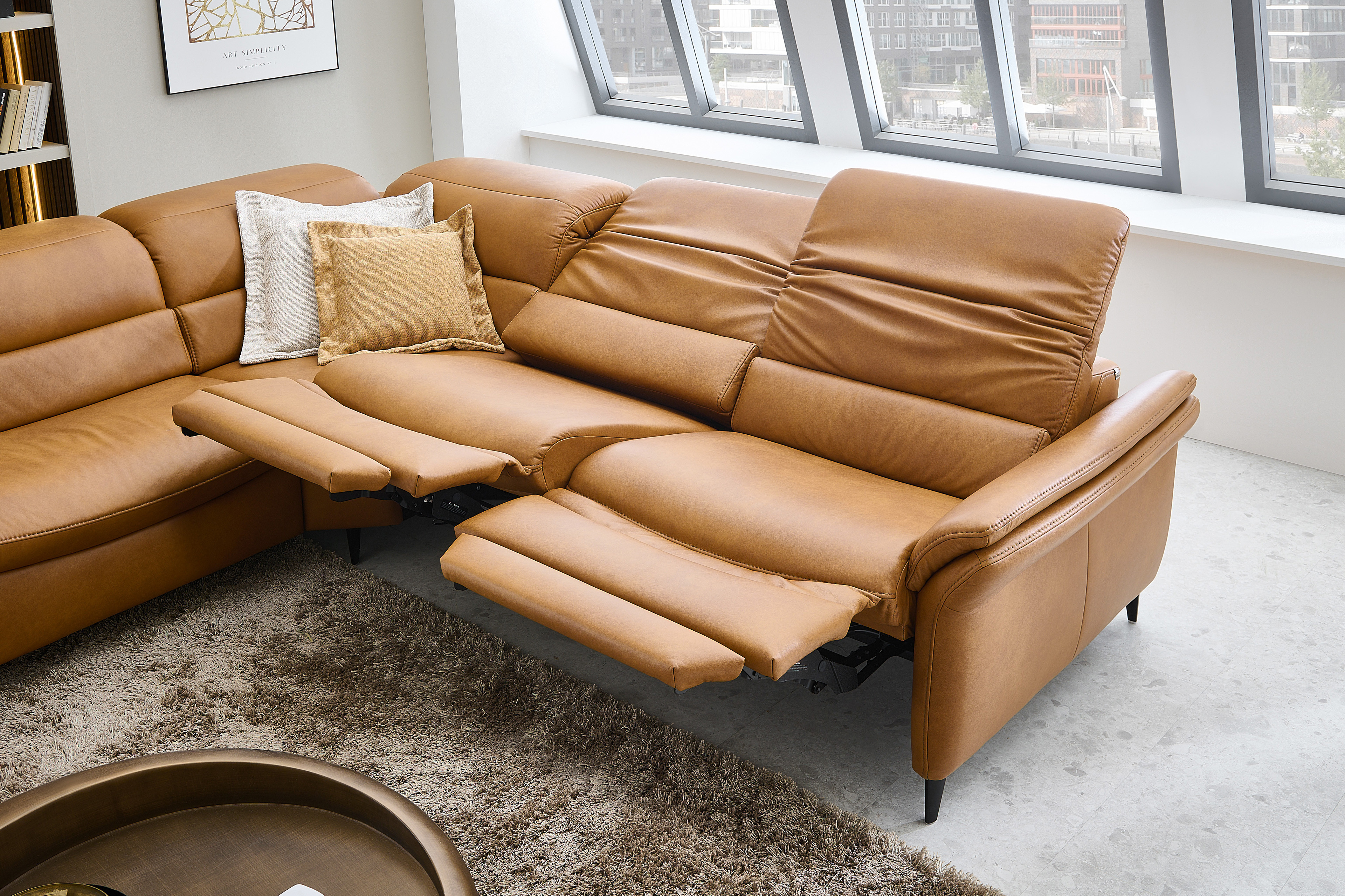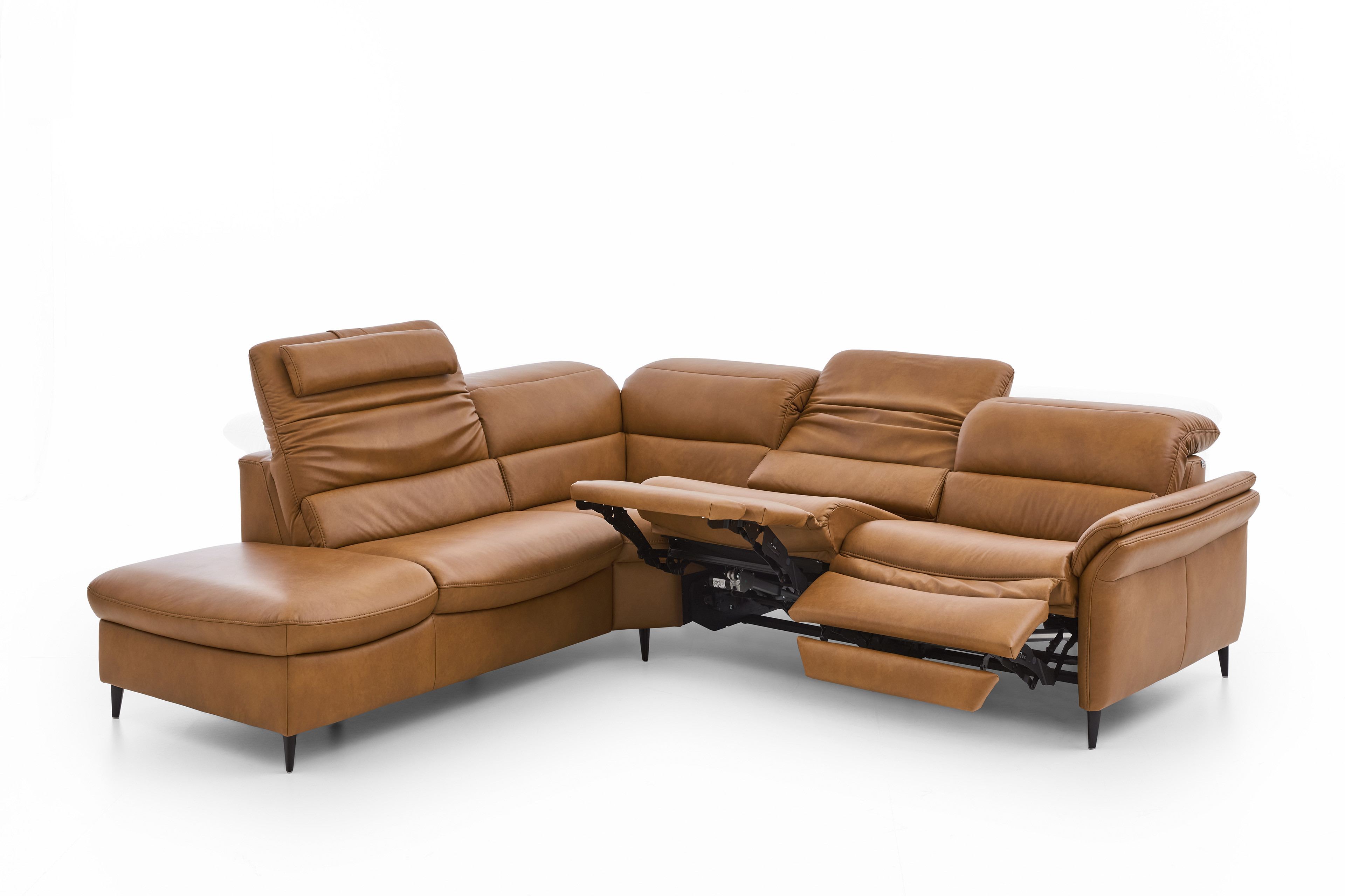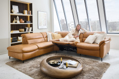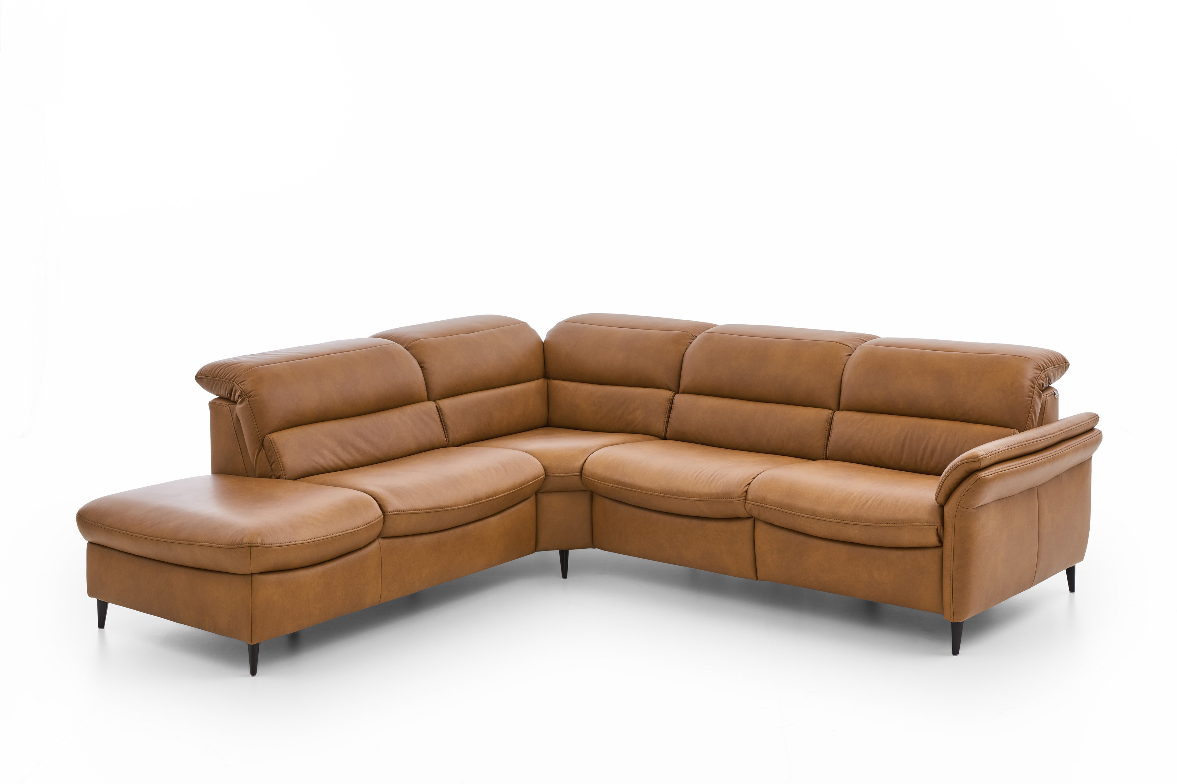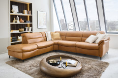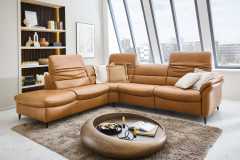 Verwandeln Sie Ihr Wohnzimmer in einen Ort der Entspannung und des Wohlfühlens mit unserem erstklassigen Hukla Polstersofa, welches mit einer voll durchgeschäumten Federkernpolsterung, in drei verschiedenen Sitzhärten wählbar, himmlischen Sitzkomfort schenkt sowie zum längeren Verweilen einlädt - Modell HU-SF25072. Bestehend aus einem 1,5-Sitzer mit Anstellhocker, einer Rundecke sowie einem 2,5-Sitzer bietet die Garnitur ausreichend Fläche für einen gemütlichen Filmabend oder lustigen Spieleabend mit der ganzen Familie. Mit seinem extravaganten Leder-Outfit im Farbton "Kurkuma" zieht das Möbelstück alle Blicke auf sich und verleiht mit seiner warmen Farbgebung jedem Raum Geborgenheit sowie zeitlose Eleganz. Die dezenten, schwarzen Alufüße runden das edle Design modern ab, geben der Couch den perfekten Halt und durch die praktische Höhe ist genügend Platz für den Saugroboter, sodass auch darunter immer absolute Sauberkeit herrscht. Optional können Sie das Schmuckstück mit einer Wall-Away-Funktion ausstatten. So können Sie sich mühelos über einen Touch-Button in eine bequeme Liegeposition befördern. Diese sowie ein passender Hocker und dekorative Kissen halten unsere Zusatzoptionen für Sie bereit. Zudem lässt sich dieses Sitzmöbel mithilfe eines umfangreichen Typenplanes auch als großzügige Wohnlandschaft oder als kompaktes Einzelsofa konfigurieren: Klicken Sie dazu auf "Artikel frei planen", entscheiden Sie zwischen diversen Elementen und gestalten Sie Ihre Traumoase nach Ihren Vorstellungen. HU-SF25072 aus dem Hause Hukla lässt keine Wünsche offen und wird zum Lieblingsplatz in Ihrem Zuhause.
