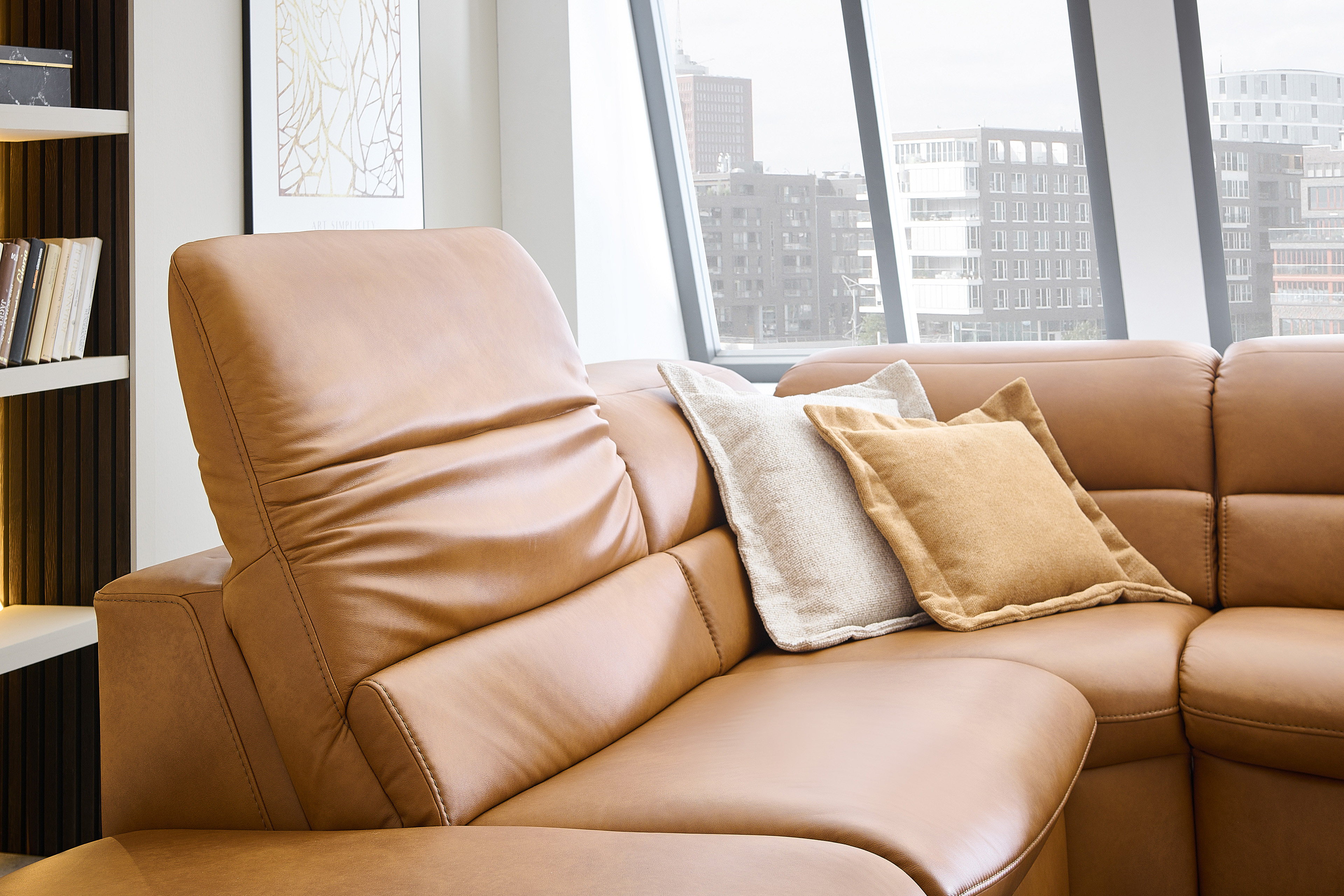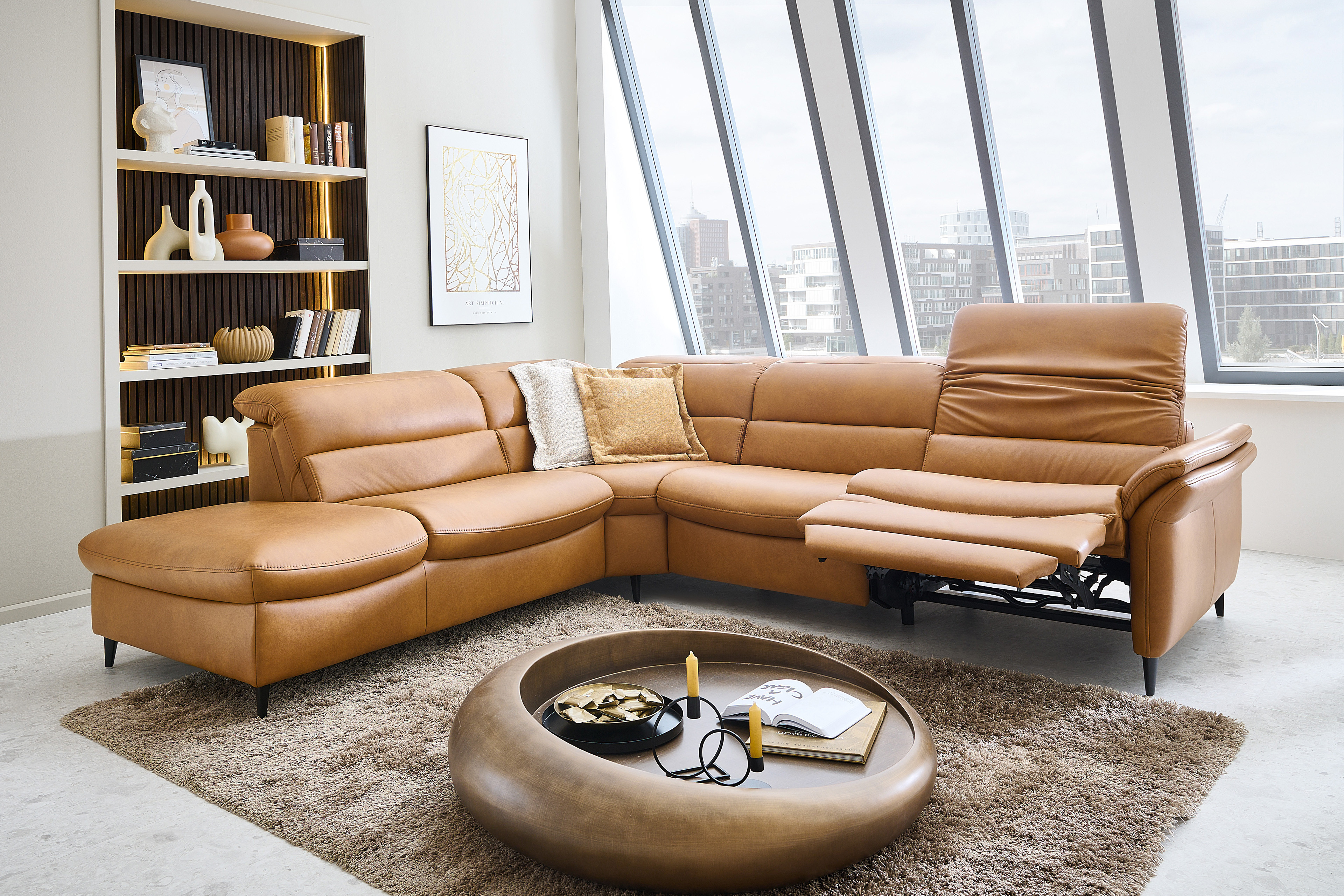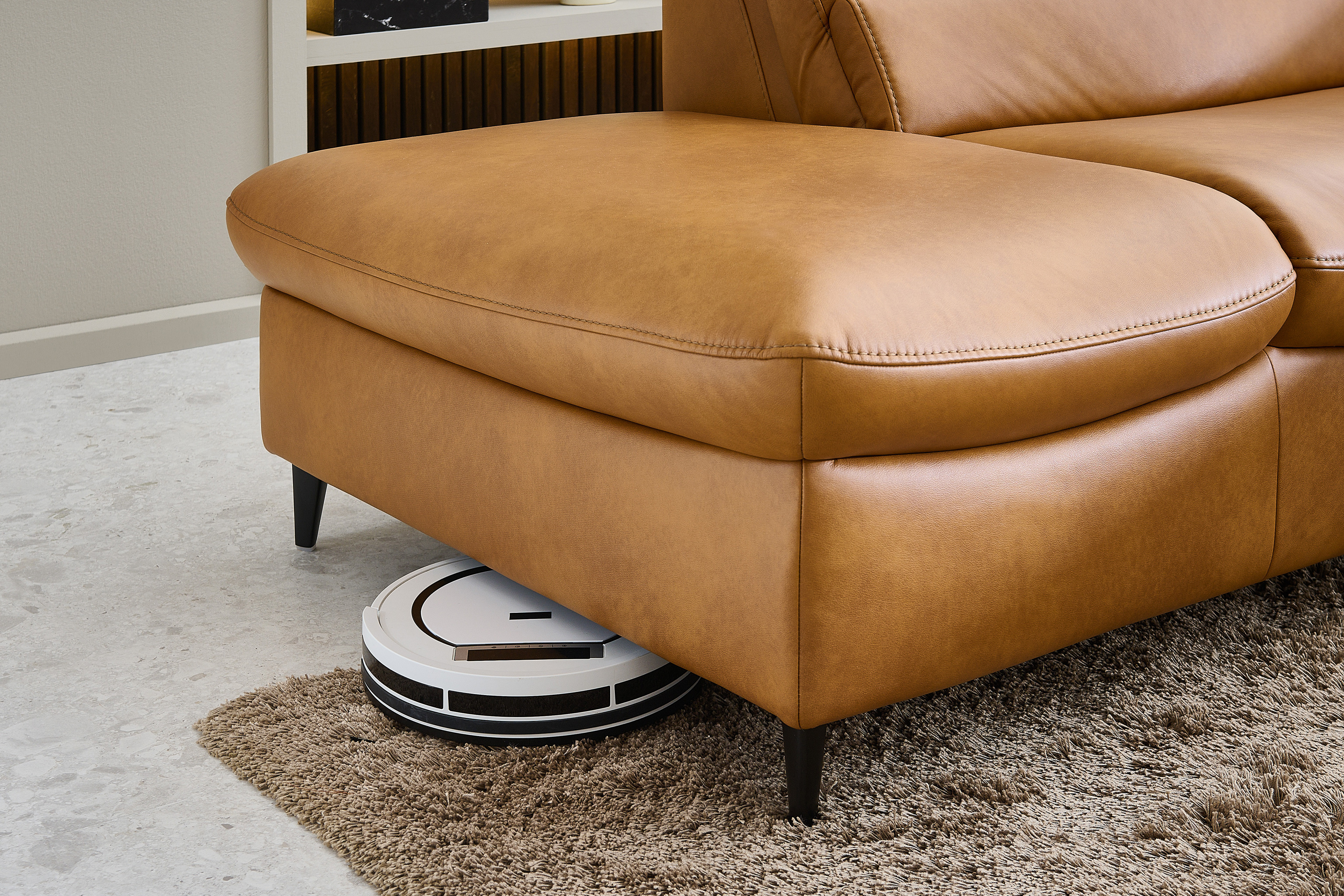 Verwandeln Sie Ihr Wohnzimmer in einen Ort der Entspannung und des Wohlfühlens mit unserem erstklassigen Hukla Polstersofa, welches mit einer voll durchgeschäumten Federkernpolsterung, in drei verschiedenen Sitzhärten wählbar, himmlischen Sitzkomfort schenkt sowie zum längeren Verweilen einlädt - Modell HU-SF25072. Bestehend aus einem 1,5-Sitzer mit Anstellhocker, einer Rundecke sowie einem 2,5-Sitzer bietet die Garnitur ausreichend Fläche für einen gemütlichen Filmabend oder lustigen Spieleabend mit der ganzen Familie. Mit seinem extravaganten Leder-Outfit im Farbton "Kurkuma" zieht das Möbelstück alle Blicke auf sich und verleiht mit seiner warmen Farbgebung jedem Raum Geborgenheit sowie zeitlose Eleganz. Die dezenten, schwarzen Alufüße runden das edle Design modern ab, geben der Couch den perfekten Halt und durch die praktische Höhe ist genügend Platz für den Saugroboter, sodass auch darunter immer absolute Sauberkeit herrscht. Optional können Sie das Schmuckstück mit einer Wall-Away-Funktion ausstatten. So können Sie sich mühelos über einen Touch-Button in eine bequeme Liegeposition befördern. Diese sowie ein passender Hocker und dekorative Kissen halten unsere Zusatzoptionen für Sie bereit. Zudem lässt sich dieses Sitzmöbel mithilfe eines umfangreichen Typenplanes auch als großzügige Wohnlandschaft oder als kompaktes Einzelsofa konfigurieren: Klicken Sie dazu auf "Artikel frei planen", entscheiden Sie zwischen diversen Elementen und gestalten Sie Ihre Traumoase nach Ihren Vorstellungen. HU-SF25072 aus dem Hause Hukla lässt keine Wünsche offen und wird zum Lieblingsplatz in Ihrem Zuhause.