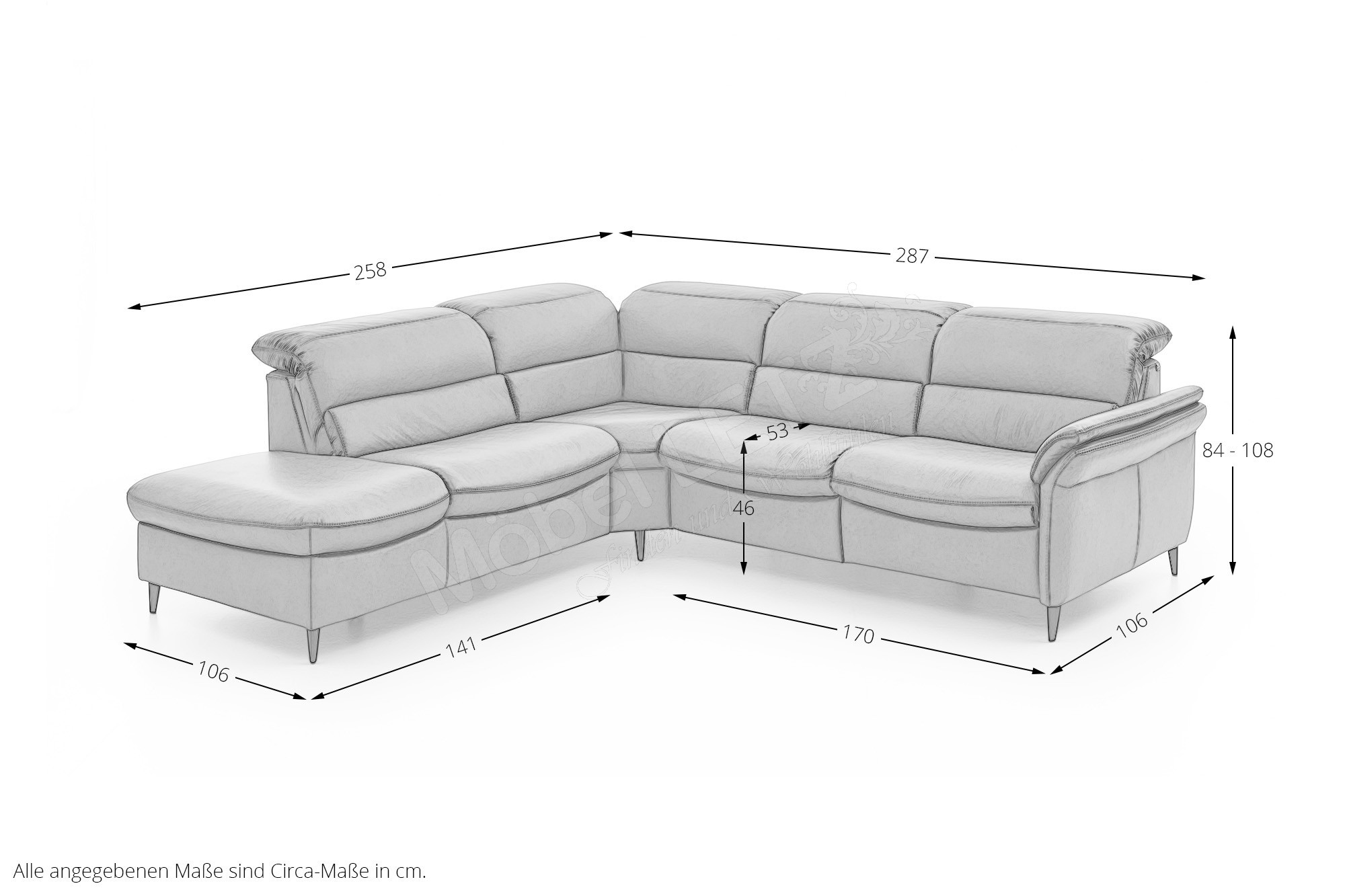 - 1 x AhoL1,5KV - 1,5-Sitzer mit Anstellhocker links, ca. BHT: 141/84-108/106 cm