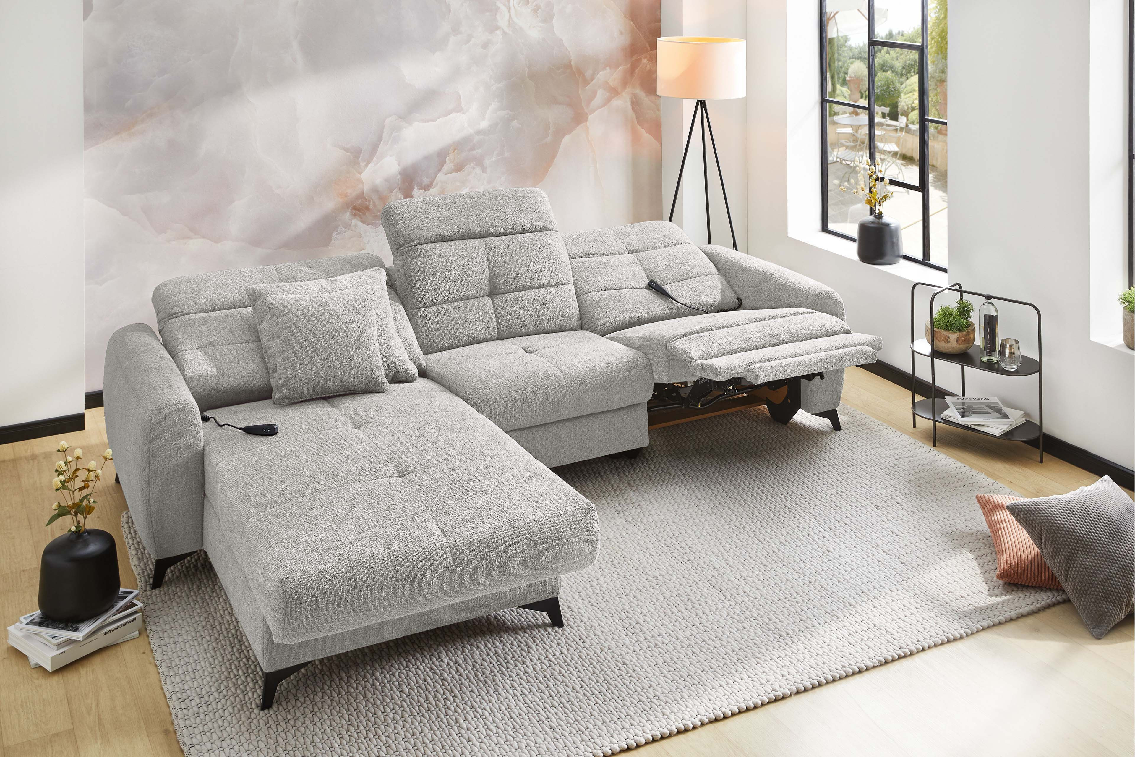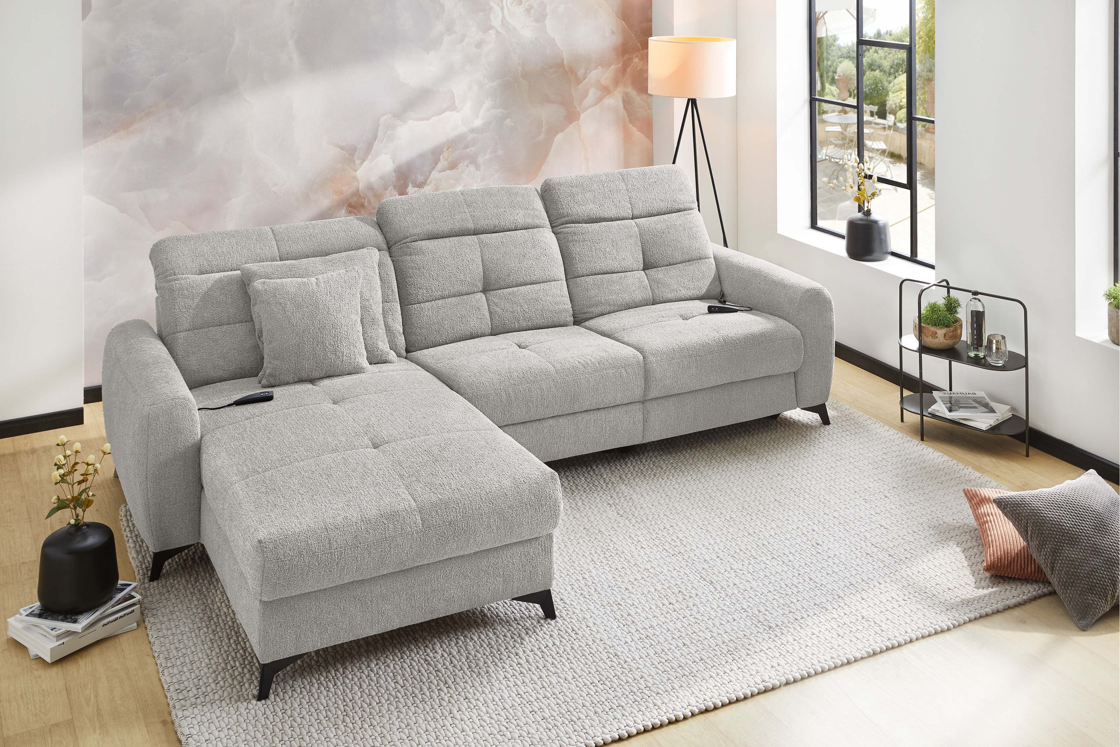 Das Sofa - das wahre Herzstück unseres Wohnzimmers! Hier wollen wir nicht nur sitzen, sondern so richtig entspannen, relaxen und die freie Zeit genießen. Ob ein gemütlicher Fernsehabend, entspanntes Faulenzen oder schöne Momente mit den Freunden und der Familie: Auf der passenden Polstergarnitur fühlt sich all das einfach besser an - Chillout von Jockenhöfer Polstermöbel. Dieses elegante Ecksofa überzeugt auf den ersten Blick mit seinem modernen Design. Die modisch gesteppte Sitz- und Rückenfläche sorgt für einen stylishen Look, während der helle Farbton eine warme und geborgene Atmosphäre schafft. Zwei Zierkissen im gleichen Bezug der Garnitur runden das Gesamtbild gekonnt ab und erhöhen den Wohlfühlfaktor um einiges. Doch Chillout punktet nicht nur optisch: Dank der hochwertigen Schaumpolsterung mit einer Nosagunterfederung passt sich die Job Polstergarnitur perfekt an Ihren Körper an und bietet besten Komfort. Besonders praktisch sind die integrierte motorische Relaxfunktion sowie die manuelle Kopfteilverstellung an Ottomane und Sofateil - so finden Sie immer die perfekte Sitzposition für entspannte Stunden. Kurz gesagt: Mit Chillout von Jockenhöfer holen Sie sich ein echtes Wohlfühlwunder in Ihre vier Wände, das Design, Gemütlichkeit und Funktionalität perfekt miteinander vereint. Probieren Sie es aus und genießen Sie Ihre entspannten Momente in vollen Zügen zuhause!