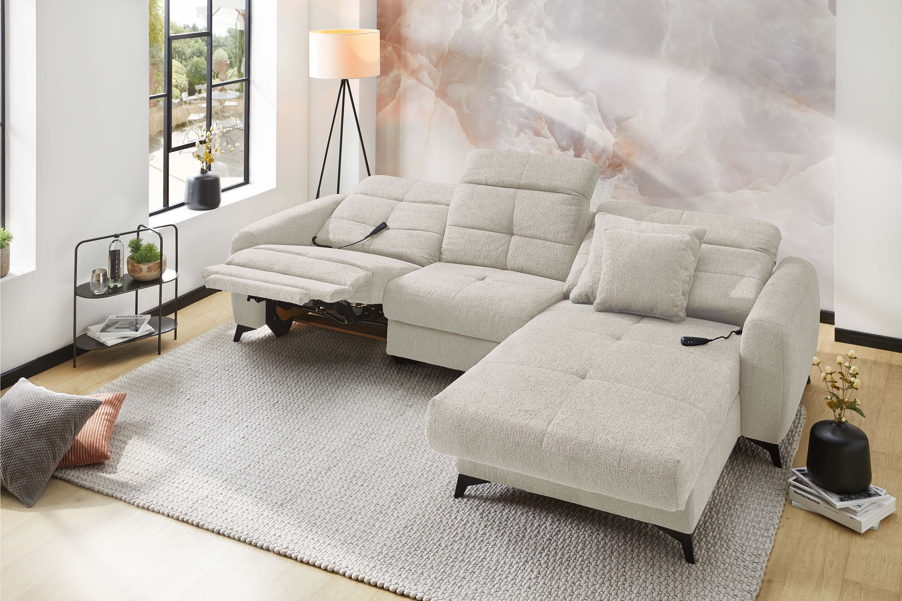 Das Sofa - das wahre Herzstück unseres Wohnzimmers! Hier wollen wir nicht nur sitzen, sondern so richtig entspannen, relaxen und die freie Zeit genießen. Ob ein gemütlicher Fernsehabend, entspanntes Faulenzen oder schöne Momente mit den Freunden und der Familie: Auf der passenden Polstergarnitur fühlt sich all das einfach besser an - Chillout von Jockenhöfer Polstermöbel. Dieses elegante Ecksofa überzeugt auf den ersten Blick mit seinem modernen Design. Die modisch gesteppte Sitz- und Rückenfläche sorgt für einen stylishen Look, während der helle Farbton eine warme und geborgene Atmosphäre schafft. Zwei Zierkissen im gleichen Bezug der Garnitur runden das Gesamtbild gekonnt ab und erhöhen den Wohlfühlfaktor um einiges. Doch Chillout punktet nicht nur optisch: Dank der hochwertigen Schaumpolsterung mit einer Nosagunterfederung passt sich die Job Polstergarnitur perfekt an Ihren Körper an und bietet besten Komfort. Besonders praktisch sind die integrierte motorische Relaxfunktion sowie die manuelle Kopfteilverstellung an Sofateil und Ottomane - so finden Sie immer die perfekte Sitzposition für entspannte Stunden. Kurz gesagt: Mit Chillout von Jockenhöfer holen Sie sich ein echtes Wohlfühlwunder in Ihre vier Wände, das Design, Gemütlichkeit und Funktionalität perfekt miteinander vereint. Probieren Sie es aus und genießen Sie Ihre entspannten Momente in vollen Zügen zuhause!