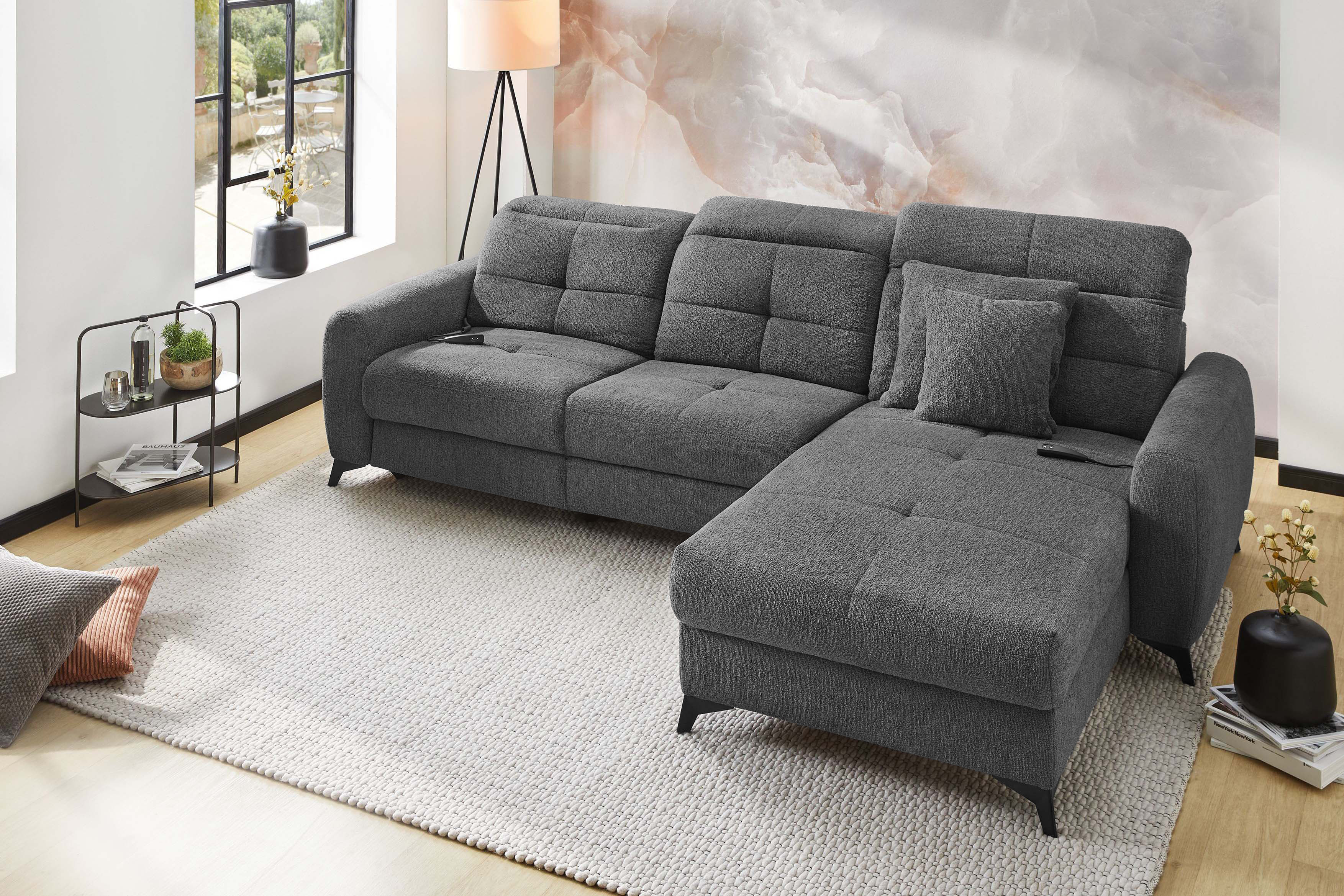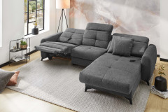 Das Sofa - das wahre Herzstück unseres Wohnzimmers! Hier wollen wir nicht nur sitzen, sondern so richtig entspannen, relaxen und die freie Zeit genießen. Ob ein gemütlicher Fernsehabend, entspanntes Faulenzen oder schöne Momente mit den Freunden und der Familie: Auf der passenden Polstergarnitur fühlt sich all das einfach besser an - Chillout von Jockenhöfer Polstermöbel. Dieses elegante Ecksofa überzeugt auf den ersten Blick mit seinem modernen Design. Die modisch gesteppte Sitz- sowie Rückenfläche sorgt für einen stylishen Look, während der dunkle Farbton eine zeitlose Atmosphäre schafft. Zwei Zierkissen im gleichen Bezug der Garnitur runden das Gesamtbild gekonnt ab und erhöhen den Wohlfühlfaktor um einiges. Doch Chillout punktet nicht nur optisch: Dank der hochwertigen Schaumpolsterung mit einer Nosagunterfederung passt sich die Job Polstergarnitur perfekt an Ihren Körper an und bietet besten Komfort. Besonders praktisch sind die integrierte motorische Relaxfunktion sowie die manuelle Kopfteilverstellung an Sofateil und Ottomane - so finden Sie immer die perfekte Sitzposition für entspannte Stunden. Kurz gesagt: Mit Chillout von Jockenhöfer holen Sie sich ein echtes Wohlfühlwunder in Ihre vier Wände, das Design, Gemütlichkeit und Funktionalität perfekt miteinander vereint. Probieren Sie es aus und genießen Sie Ihre entspannten Momente in vollen Zügen zuhause!