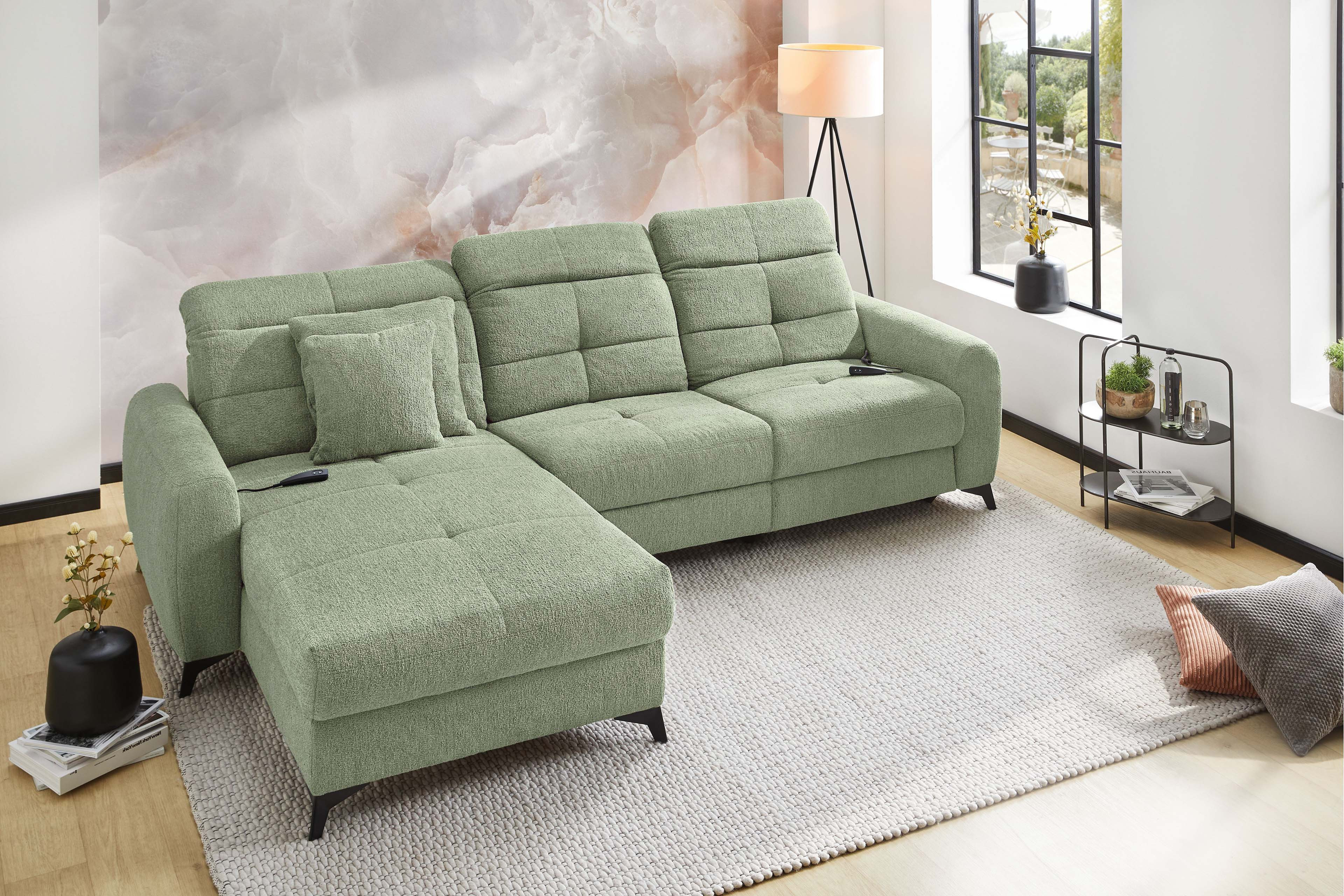Das Sofa - das wahre Herzstück unseres Wohnzimmers! Hier wollen wir nicht nur sitzen, sondern so richtig entspannen, relaxen und die freie Zeit genießen. Ob ein gemütlicher Fernsehabend, entspanntes Faulenzen oder schöne Momente mit den Freunden und der Familie: Auf der passenden Polstergarnitur fühlt sich all das einfach besser an - Chillout von Jockenhöfer Polstermöbel. Dieses elegante Ecksofa überzeugt auf den ersten Blick mit seinem modernen Design. Die modisch gesteppte Sitz- und Rückenfläche sorgt für einen stylishen Look, während der beruhigende Grünton eine behagliche und geborgene Atmosphäre schafft. Zwei Zierkissen im gleichen Bezug der Garnitur runden das Gesamtbild gekonnt ab und erhöhen den Wohlfühlfaktor um einiges. Doch Chillout punktet nicht nur optisch: Dank der hochwertigen Schaumpolsterung mit einer Nosagunterfederung passt sich die Job Polstergarnitur perfekt an Ihren Körper an und bietet besten Komfort. Besonders praktisch sind die integrierte motorische Relaxfunktion sowie die manuelle Kopfteilverstellung an Ottomane und Sofateil - so finden Sie immer die perfekte Sitzposition für entspannte Stunden. Kurz gesagt: Mit Chillout von Jockenhöfer holen Sie sich ein echtes Wohlfühlwunder in Ihre vier Wände, das Design, Gemütlichkeit und Funktionalität perfekt miteinander vereint. Probieren Sie es aus und genießen Sie Ihre entspannten Momente in vollen Zügen zuhause!