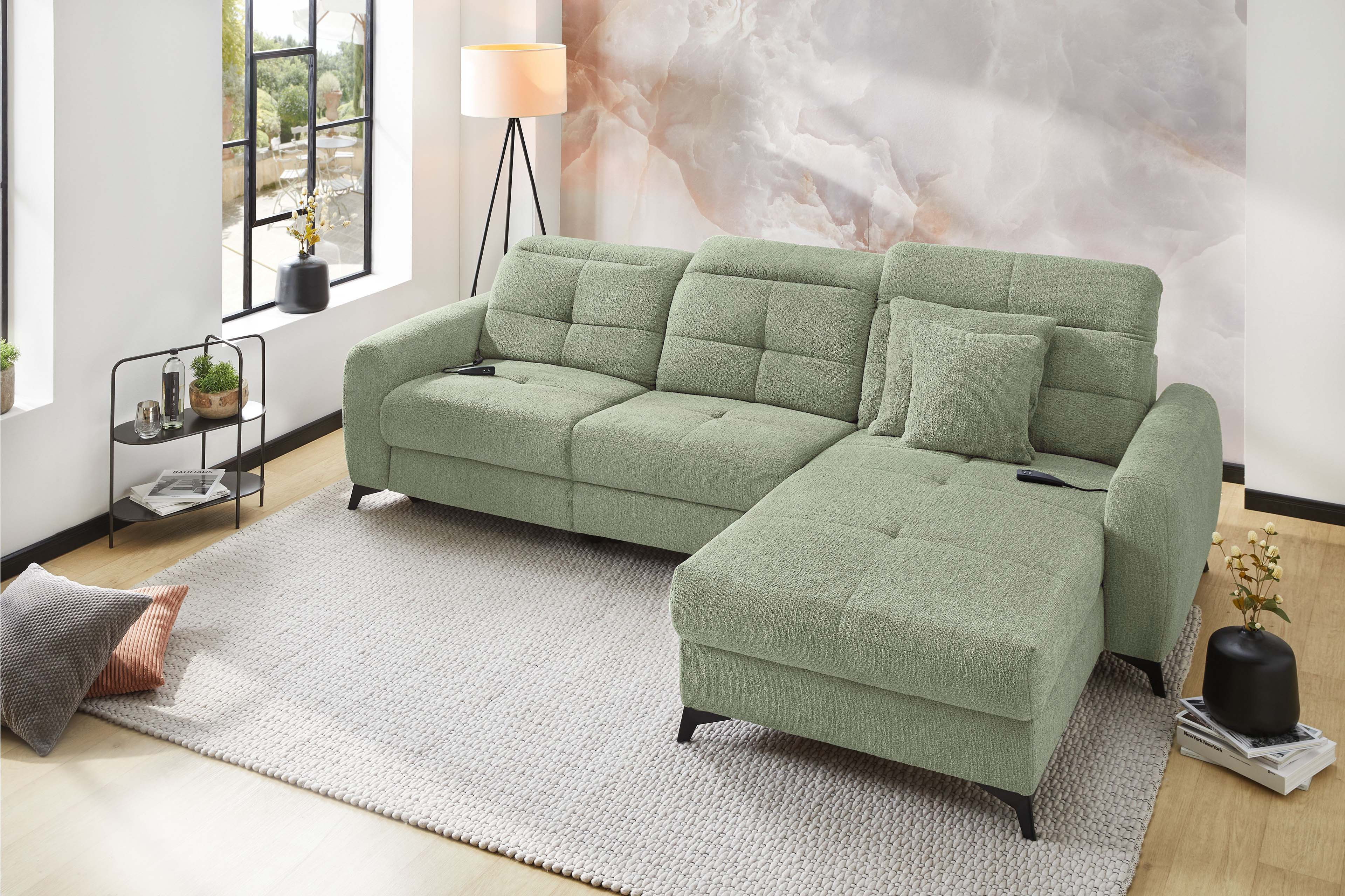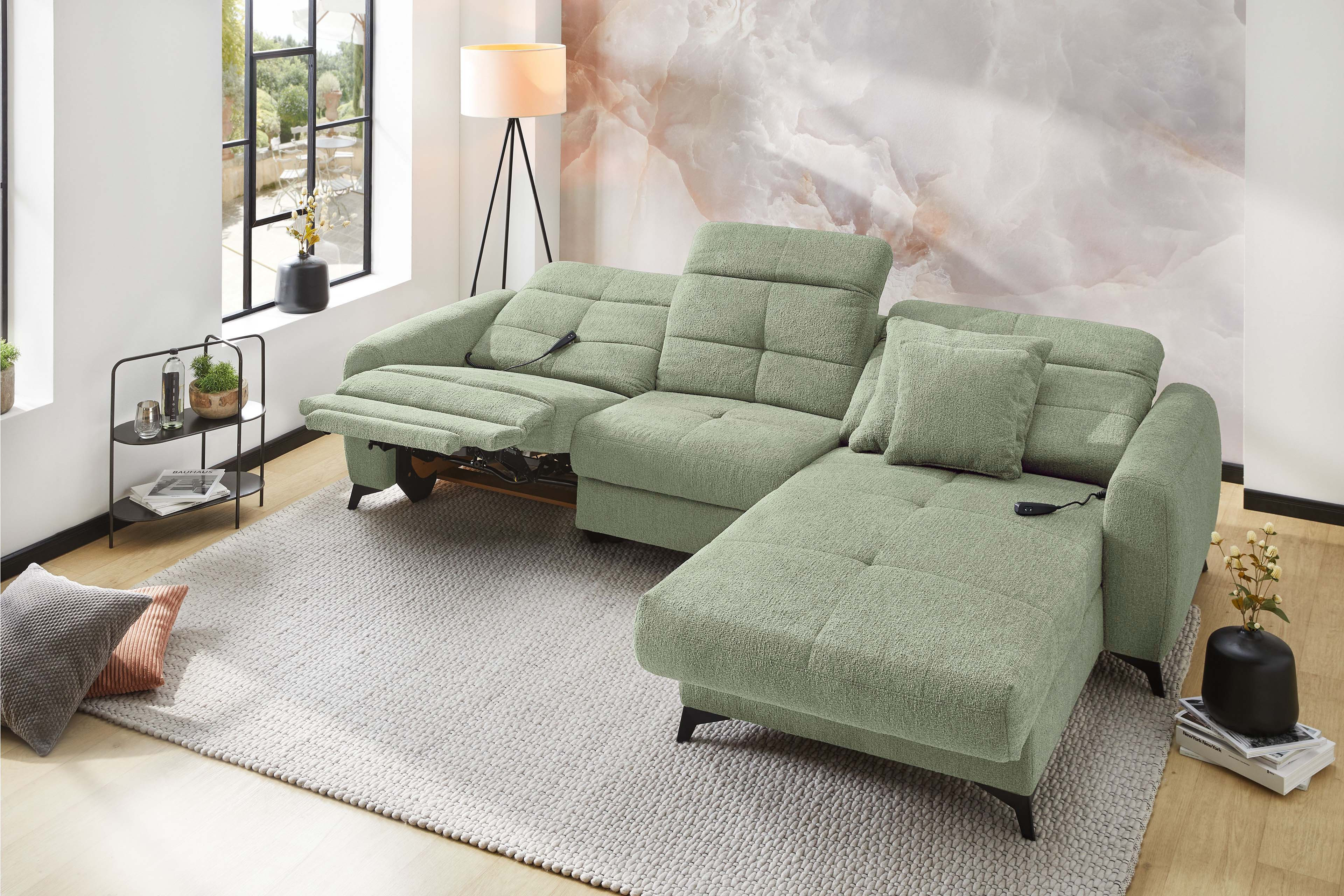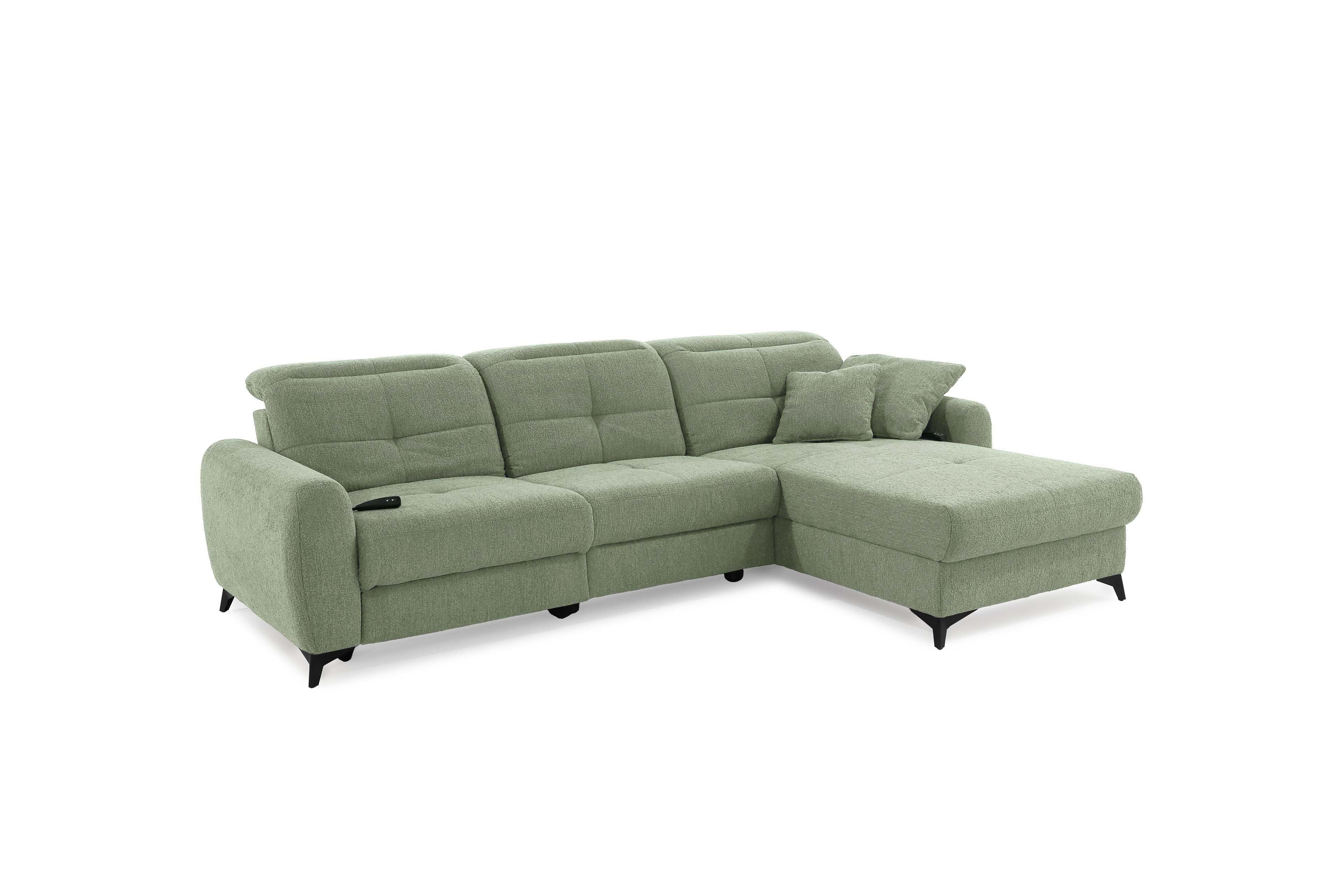 Das Sofa - das wahre Herzstück unseres Wohnzimmers! Hier wollen wir nicht nur sitzen, sondern so richtig entspannen, relaxen und die freie Zeit genießen. Ob ein gemütlicher Fernsehabend, entspanntes Faulenzen oder schöne Momente mit den Freunden und der Familie: Auf der passenden Polstergarnitur fühlt sich all das einfach besser an - Chillout von Jockenhöfer Polstermöbel. Dieses elegante Ecksofa überzeugt auf den ersten Blick mit seinem modernen Design. Die modisch gesteppte Sitz- und Rückenfläche sorgt für einen stylishen Look, während der beruhigende Grünton eine behagliche und geborgene Atmosphäre schafft. Zwei Zierkissen im gleichen Bezug der Garnitur runden das Gesamtbild gekonnt ab und erhöhen den Wohlfühlfaktor um einiges. Doch Chillout punktet nicht nur optisch: Dank der hochwertigen Schaumpolsterung mit einer Nosagunterfederung passt sich die Job Polstergarnitur perfekt an Ihren Körper an und bietet besten Komfort. Besonders praktisch sind die integrierte motorische Relaxfunktion sowie die manuelle Kopfteilverstellung an Sofateil und Ottomane - so finden Sie immer die perfekte Sitzposition für entspannte Stunden. Kurz gesagt: Mit Chillout von Jockenhöfer holen Sie sich ein echtes Wohlfühlwunder in Ihre vier Wände, das Design, Gemütlichkeit und Funktionalität perfekt miteinander vereint. Probieren Sie es aus und genießen Sie Ihre entspannten Momente in vollen Zügen zuhause!