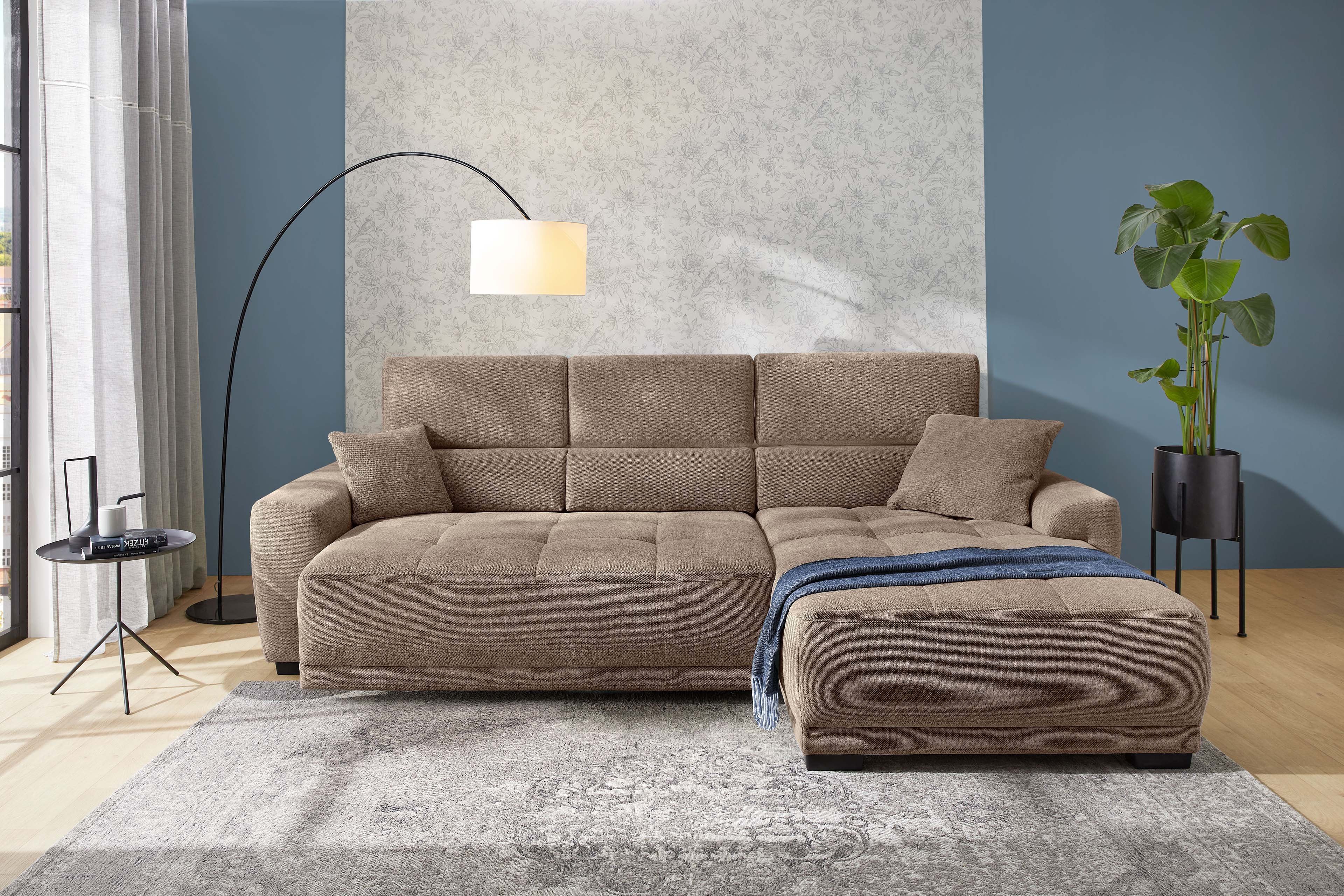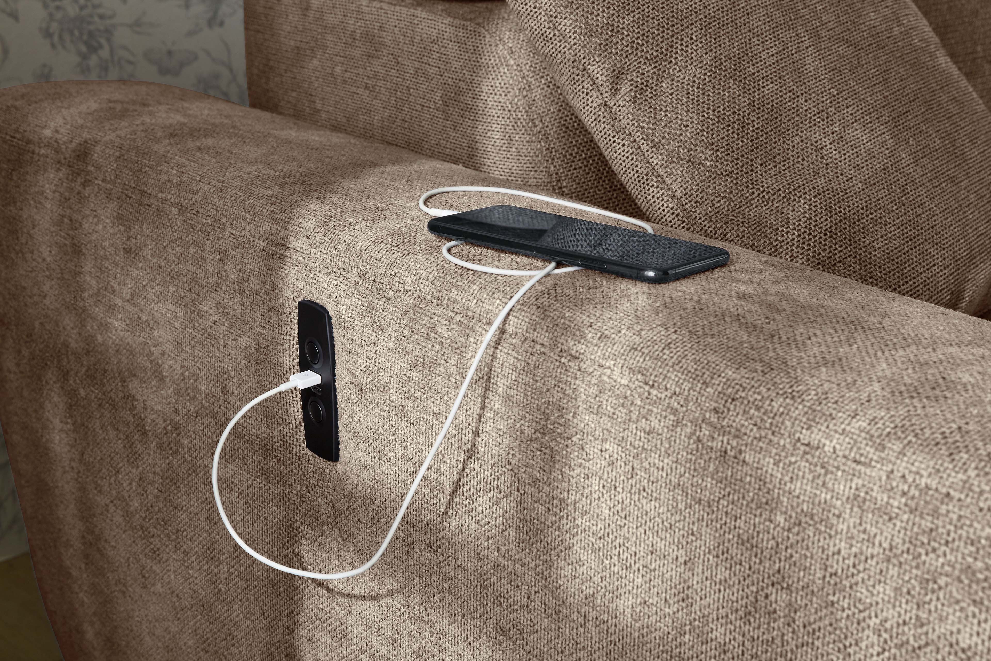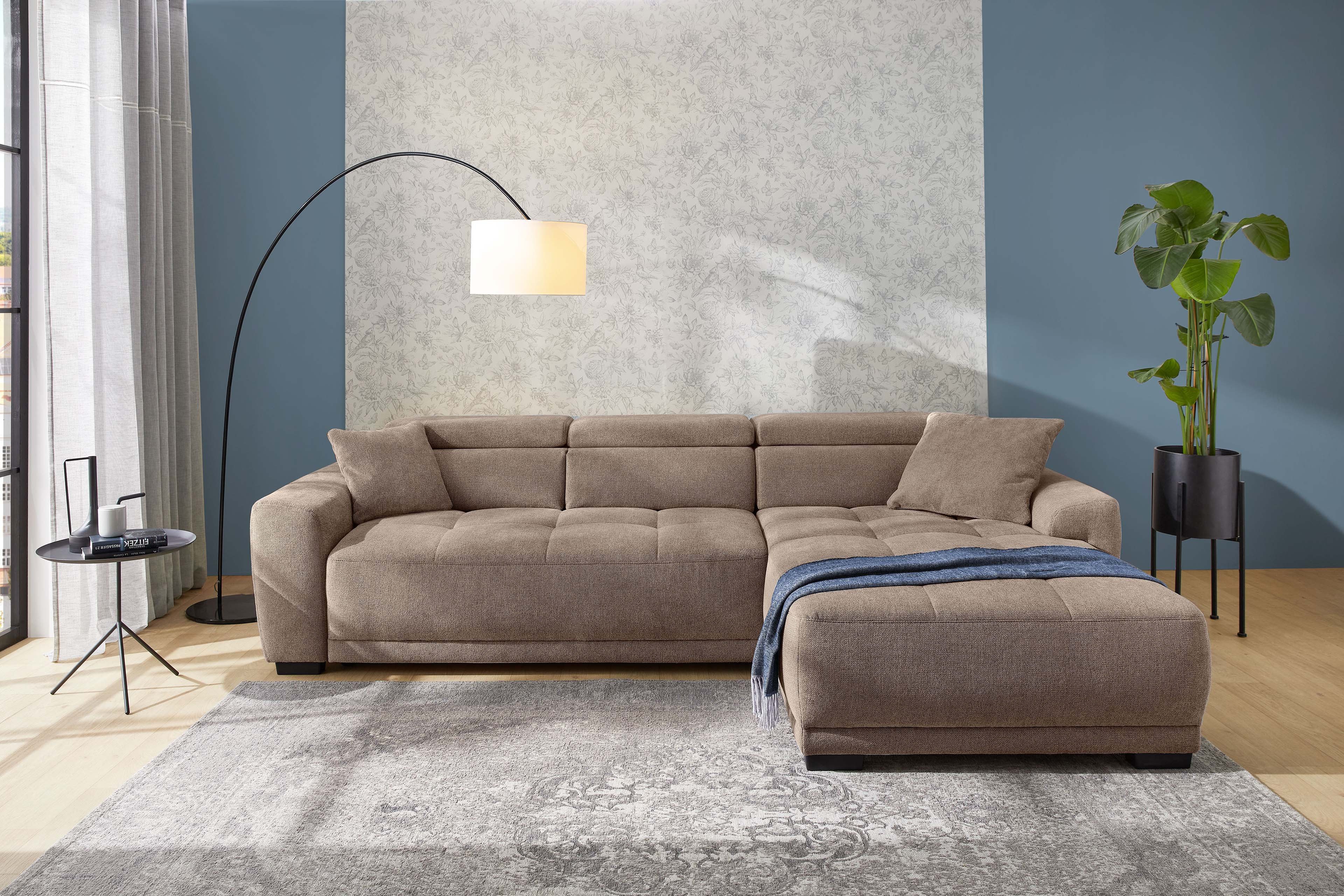 Modern und zeitlos lädt die Eckgarnitur Domino-LE25 von Jockenhöfer Polstermöbel zum Relaxen ein. In einem topaktuellen Style präsentiert sich das Modell von seiner besten Seite, denn mit einem USB-A sowie USB-C Ladeport können Sie ganz bequem das Smartphone oder Tablet vom Sofa aus laden und Ihre geschäftlichen oder privaten Unterlagen erledigen. Mit einem Stellmaß von ca. 296 x 200 cm bietet diese Polsterecke genügend Platz für schöne Abende mit dem Partner, aber auch bei einem Gläschen Wein können Sie nette Gespräche mit Ihren Freunden oder mit Ihren Arbeitskollegen führen. Durch die bequeme Polyätherschaum-Polsterung mit einer Wellenunterfederung, welche einen wundervollen Sitz- und Liegekomfort verspricht, wird diese bezaubernde Polstergarnitur ganz sicher zum neuen Ruhepol in Ihrem Wohnzimmer. Spüren Sie Entspannung pur bei einem gemütlichen Fernsehabend durch die motorische Sitztiefenverstellung, mit welcher Ihnen ca. 30 cm mehr Sitz- oder Liegefläche zur Verfügung stehen, Sie Ihre persönliche Lieblingsposition einstellen und einen stressigen Tag ganz in Ruhe ausklingen lassen können. Auch die Kopfteile sind manuell mehrfach verstellbar, wodurch sie sich individuell an Ihre Bedürfnisse anpassen. Das attraktive Design sowie der hellbraune Chenille-Flachgewebe-Bezug lässt Ihr Wohnzimmer in einem ganz neuen Glanz erstrahlen. Setzen Sie sich, machen Sie es sich mit den, im Angebot enthaltenen, Zierkissen bequem und genießen Sie allein oder in vertrauter Gesellschaft die freien, wertvollen Momente im Leben - Domino-LE25 von Job.