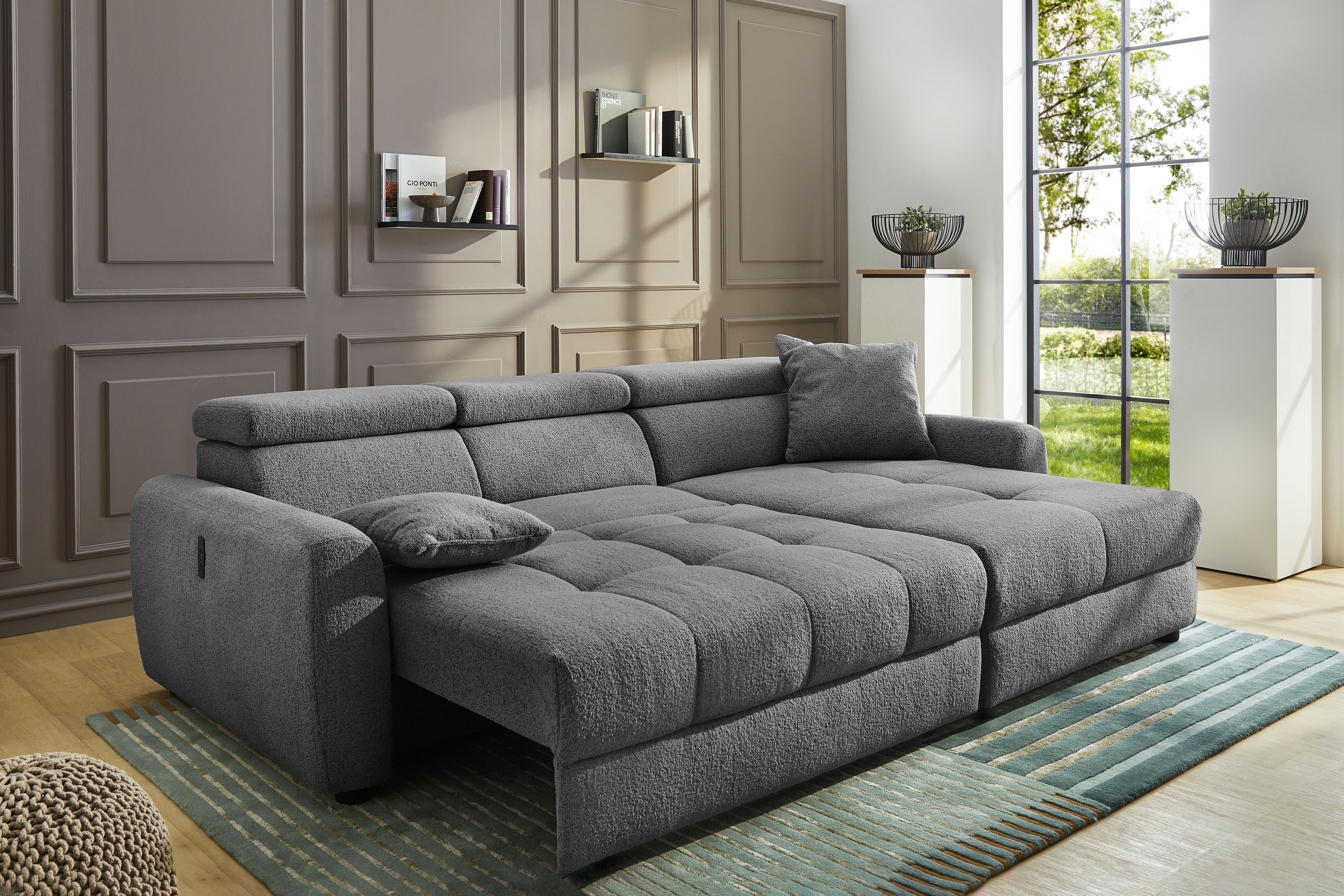 Move von Jockenhöfer Polstermöbel setzt auf zarte und dennoch gekonnte Akzente. Ein absolut im Trend liegender, angenehm weicher Flachgewebe-Bezug, kombiniert mit schwarzen Füßen und feinen Nähten, die die schöne Steppung besonders gut zur Geltung bringen, gestalten die ca. 270 x 175 cm große Eckgarnitur, neben den im Lieferumfang enthaltenen Zierkissen, zu einem absoluten Highlight. Doch das Modell, bestehend aus einem 2-sitzigen Sofateil und einer Ottomane, begeistert nicht nur durch sein schickes Äußeres. Bestimmen Sie selbst, welche Position für Sie die bequemste ist, denn die Kopfteile lassen sich getrennt voneinander nach oben stellen, bieten einen herrlichen Anlehnkomfort sowie eine individuelle Rückenhöhe ganz nach Ihren Ansprüchen. Die bequeme Schaumpolsterung auf Wellenfedern lädt dabei zum ausgiebigen Faulenzen sowie Verweilen ein und die bereits integrierte motorische Sitztiefenverstellung im 2-Sitzer schafft per Knopfdruck zu jeder Zeit eine gemütliche Liegefläche von ca. 227 x 122 cm. Zudem verfügt die Polstergarnitur über einen praktischen USB-A sowie USB-C Ladeport im Bedienelement an der Außenseite der Armlehne, mit welchem wunderbar das Smartphone oder Tablet geladen werden kann. Beine hochlegen, zurücklehnen, entspannen und es sich einfach gut gehen lassen - allein oder im Kreise Ihrer Liebsten. Auch Sie sind begeistert? Dann bestellen Sie gleich noch heute! Move aus dem Hause Job - in weiteren Farben, linker sowie rechter Ausführung lieferbar …