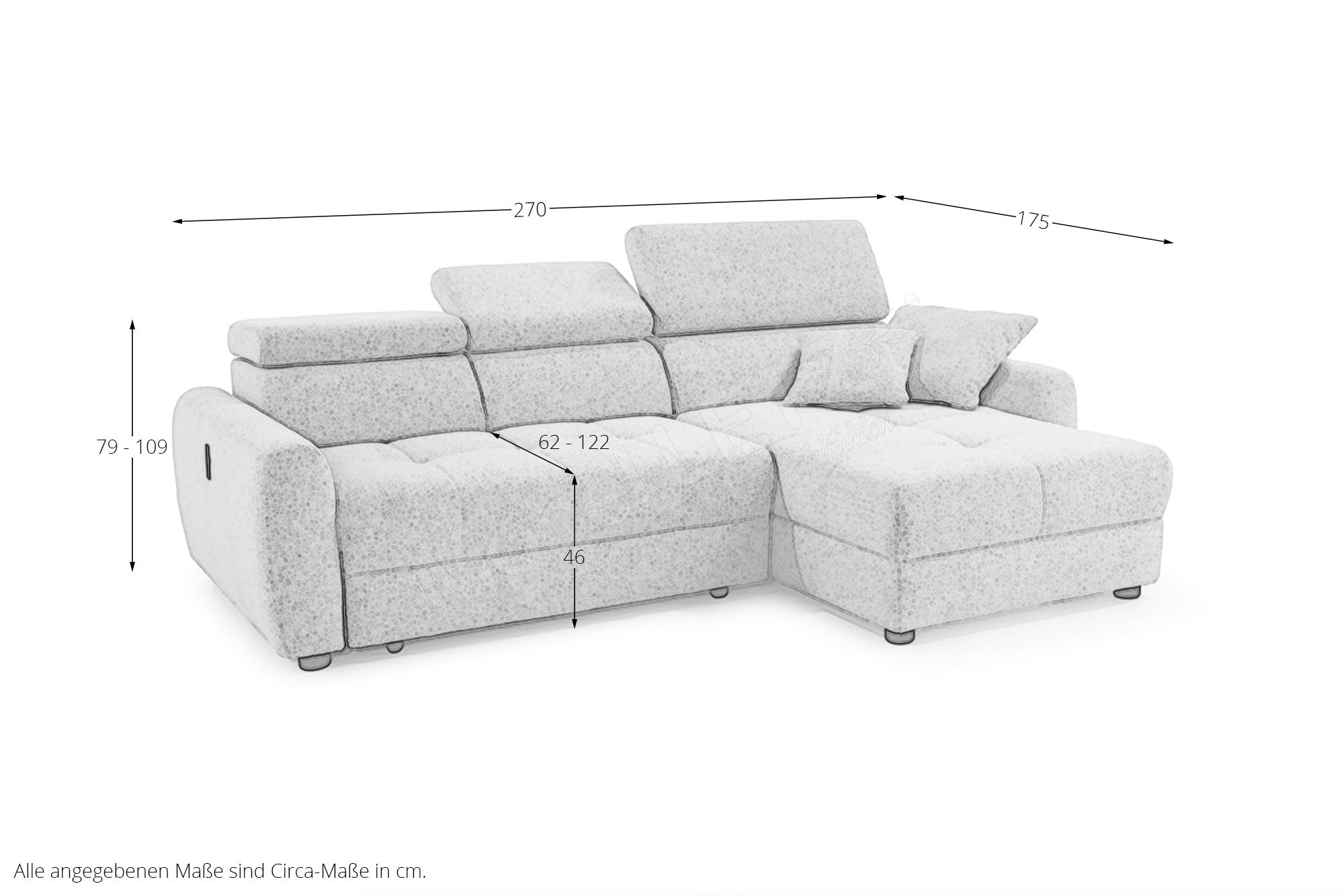 - Funktionen: motorische Sitztiefenverstellung, Kopfteilverstellung, USB-Ladefunktion