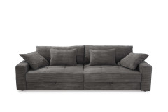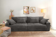 Mit dem Big-Sofa Space von Jockenhöfer Polstermöbel holen Sie sich modernes sowie gemütliches Design in Verbindung mit cleverer Funktionalität zu sich nach Hause. Bezogen in einem kuschelweichen Cordstoff, welcher in einem dunklen Grauton gehalten ist, strahlt es Ruhe und absolute Harmonie aus. Abgerundet durch die quadratische Steppung in der Sitzfläche sowie im Rücken echt bezogen, lässt es sich mit einer großzügigen Stellfläche von ca. 284 x 113 cm nicht nur vor einer Wand platzieren, sondern auch wunderbar frei in den Raum stellen. Mit der imposanten, dick gepolsterten Sitzfläche aus einem Schaumstoff mit einer Wellenunterfederung und den voluminösen Rückenkissen wird die Job Polstergarnitur zur neuen Wohlfühloase für Sie und Ihre Liebsten. Zwei integrierte, große Bettkästen unterhalb der Sitzfläche, in welchen Decken, Kissen oder auch andere Wohnaccessoires stets ihren geordneten Platz finden, sowie vier zusätzliche Kissen in zwei verschiedenen Größen sind im Lieferumfang enthalten und verleihen dem XXL-Sofa seinen unverwechselbaren Charme, dem niemand widerstehen kann. Lassen Sie sich fallen, schließen Sie die Augen und fangen Sie an zu träumen. Vielleicht von Ihrem nächsten Urlaub oder lauen Sommernächten, blühenden Feldern, duftenden Wiesen! Spüren auch Sie die Anziehungskraft dieses bezaubernden Sofas? Dann zögern Sie nicht und bestellen Sie gleich noch heute dieses imposante Mega-Sofa, welches Großzügigkeit, Ordnung und Gemütlichkeit perfekt miteinander verbindet - Space aus dem Hause Job, auch in weiteren Farben lieferbar.