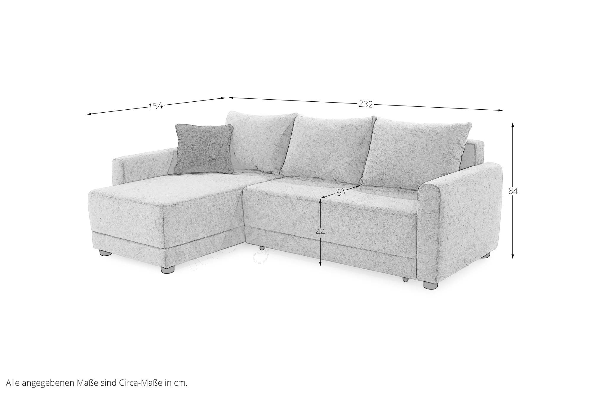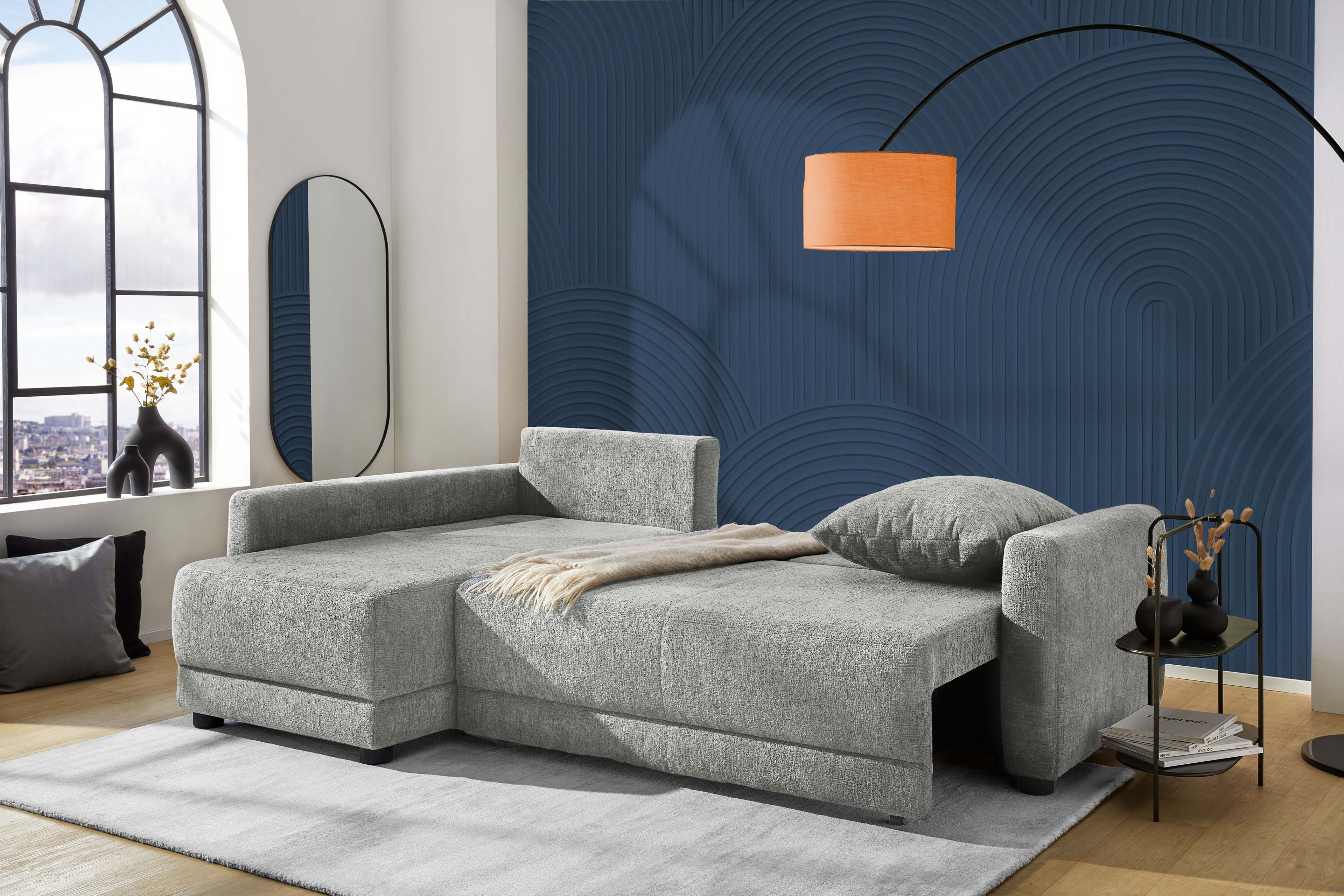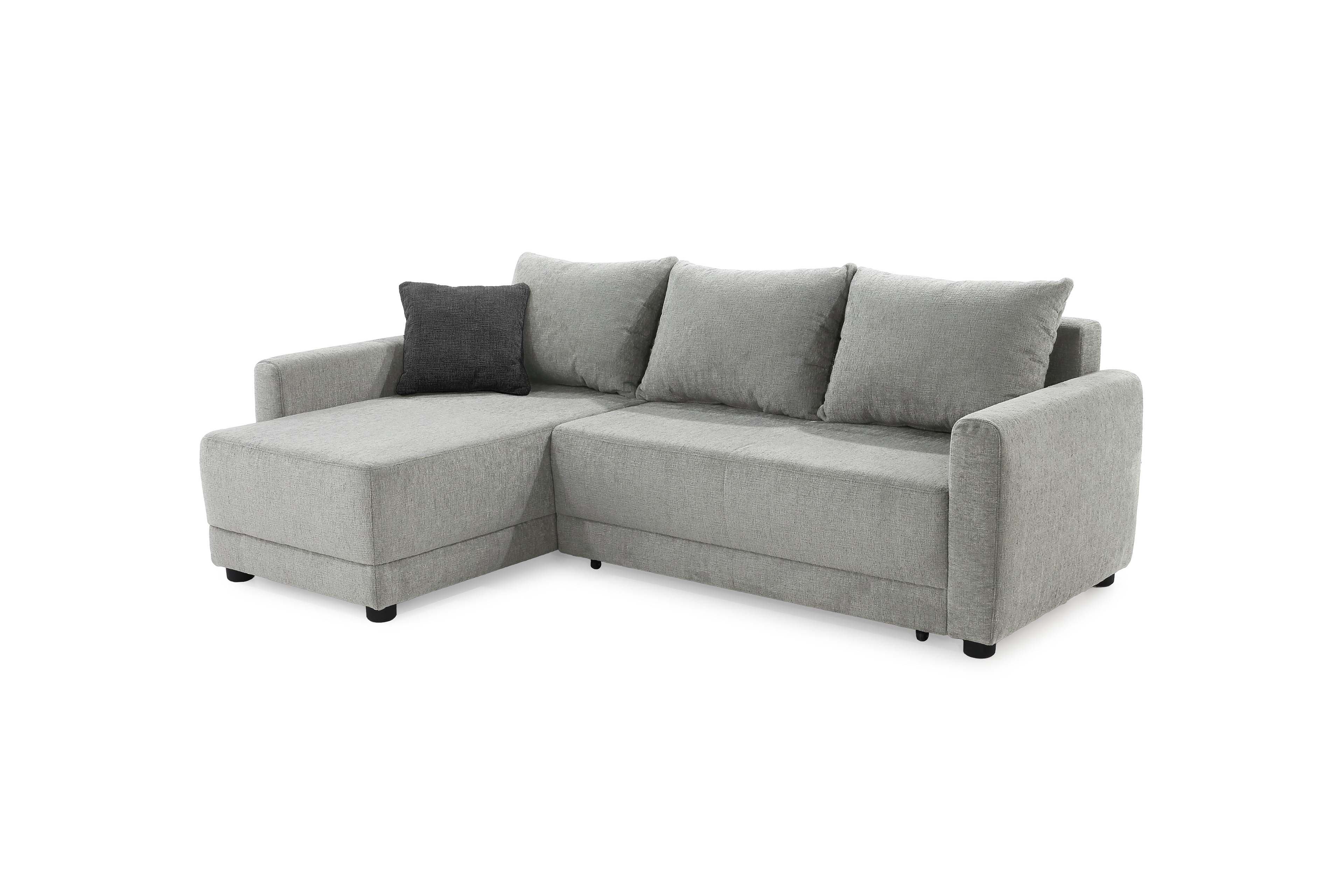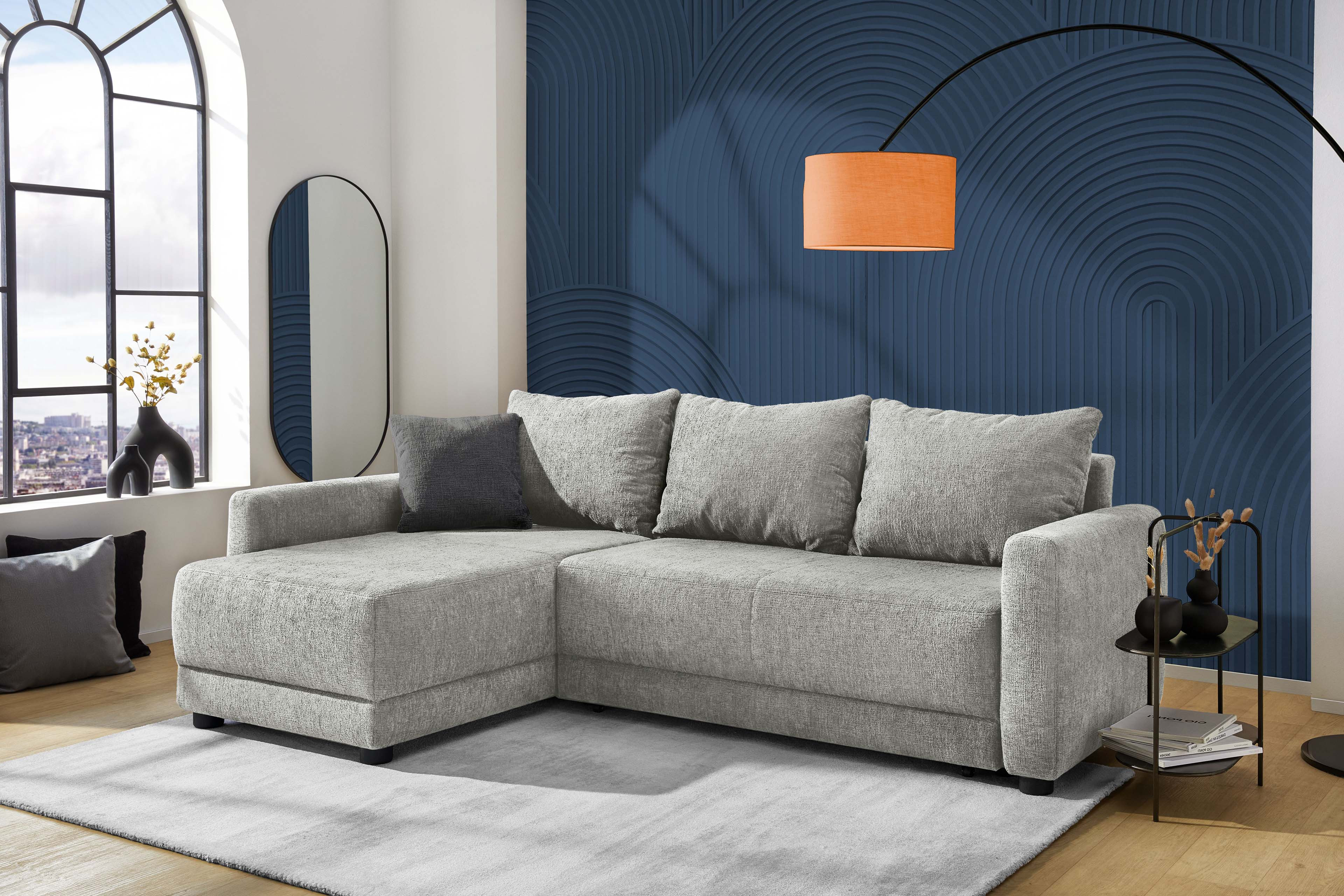 Venezia von Jockenhöfer Polstermöbel - ein modernes Ecksofa mit zeitlosem Charme. Die ca. 154 x 232 cm große Eckgarnitur vereint elegantes Design mit erstklassigem Komfort und wird so zum neuen Highlight in Ihrem Wohnzimmer. Der stilvolle Bezug aus grauem Chenille-Flachgewebe besticht durch seine zurückhaltende Farbgebung, die sowohl klassische als auch moderne Einrichtungskonzepte harmonisch ergänzt. So fügt sich die Job Polstergarnitur mühelos in unterschiedlichste Wohnstile ein und bleibt dabei stets ein Blickfang. Für ein unvergleichliches Sitzgefühl sorgt die hochwertige Schaumpolsterung, die Ihnen und Ihren Gästen einen langanhaltenden Komfort garantiert. Die drei großen, losen Rückenkissen sowie ein dekoratives Zierkissen sind inklusive und laden zum entspannten Kuscheln sowie Wohlfühlen ein. Doch das Sofa kann noch mehr: Eine clevere Schlaffunktion verwandelt Venezia im Handumdrehen in ein bequemes Nachtlager mit einer großzügigen Liegefläche von ca. 201 x 136 cm - perfekt für Übernachtungsbesuch. Der integrierte Bettkasten bietet zudem praktischen Stauraum, der durch einfaches Vorziehen der Sitzfläche des 2-sitzigen Elements sichtbar wird. Ob in linker oder rechter Ausführung, ob in Beige oder weiteren Farben - Venezia von Job ist die perfekte Kombination aus Stil und Funktionalität. Machen Sie diese vielseitige Polsterecke zum gemütlichen Mittelpunkt Ihres Zuhauses und genießen Sie höchsten Sitz- sowie Schlafkomfort in modernem Design!