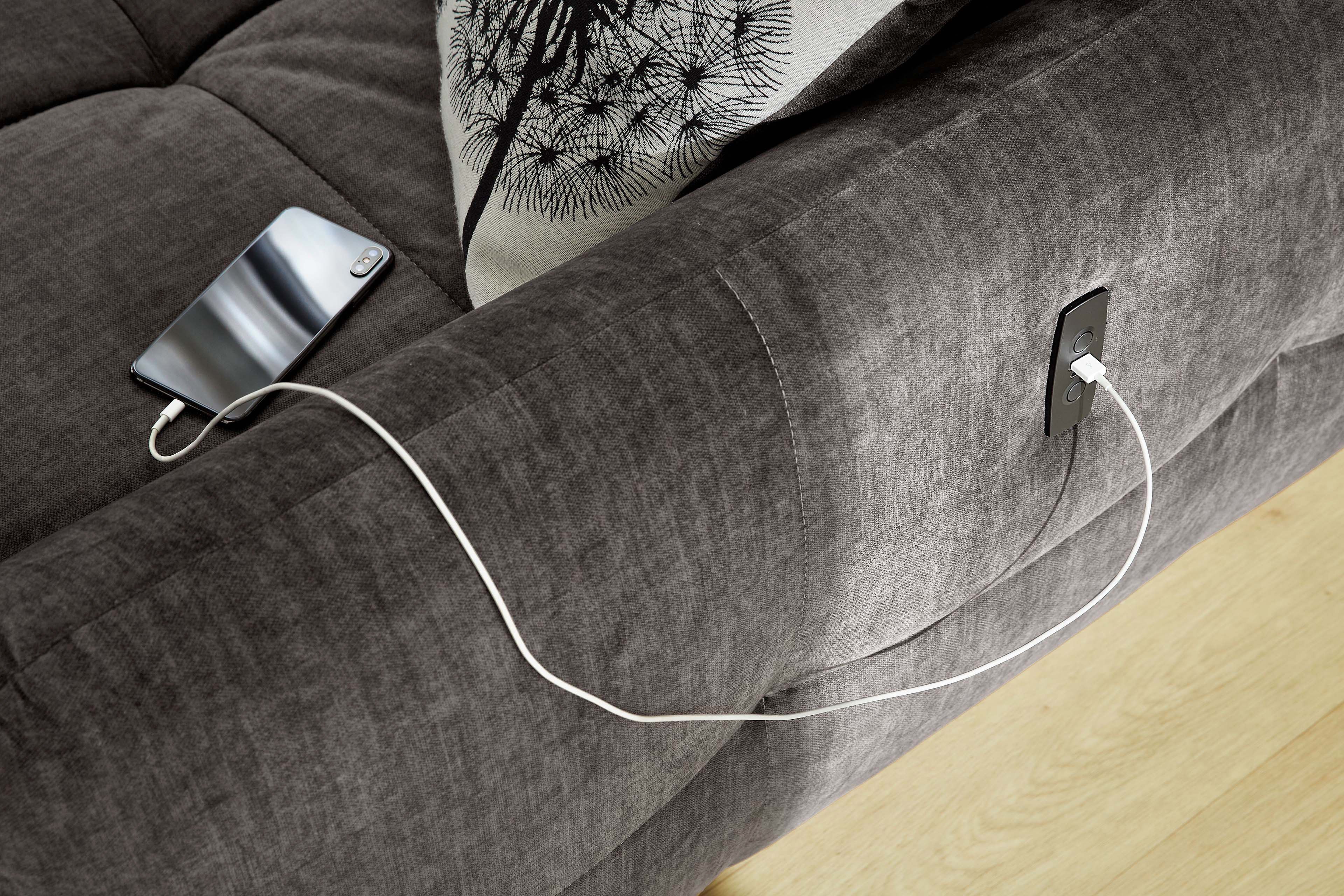 - Funktionen: motorische Sitztiefenverstellung, Kopfteilverstellung, USB-Ladefunktion