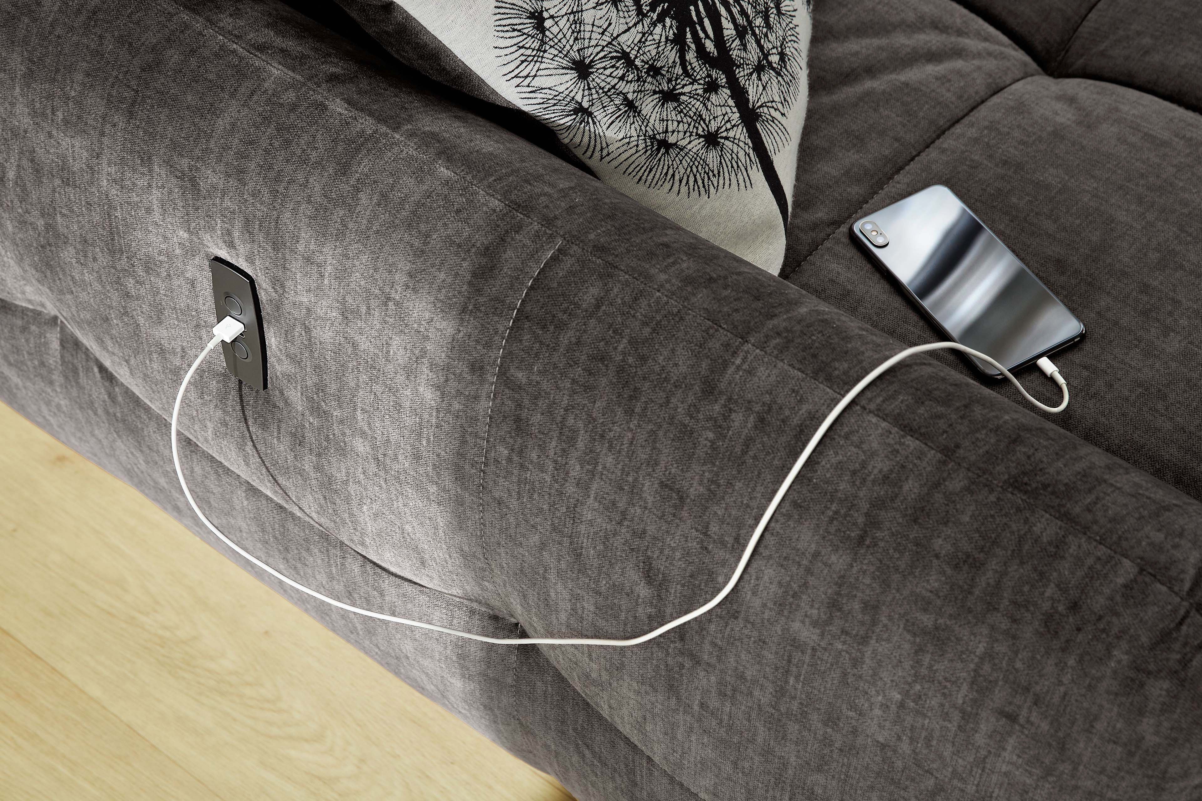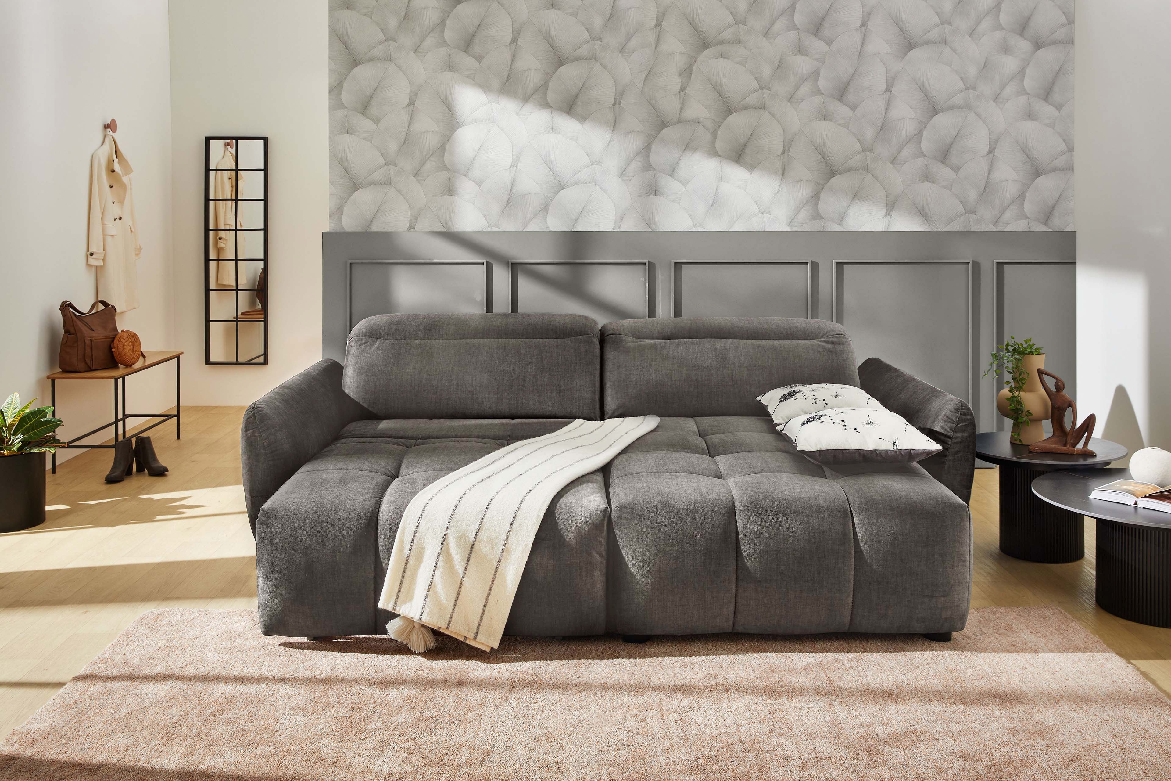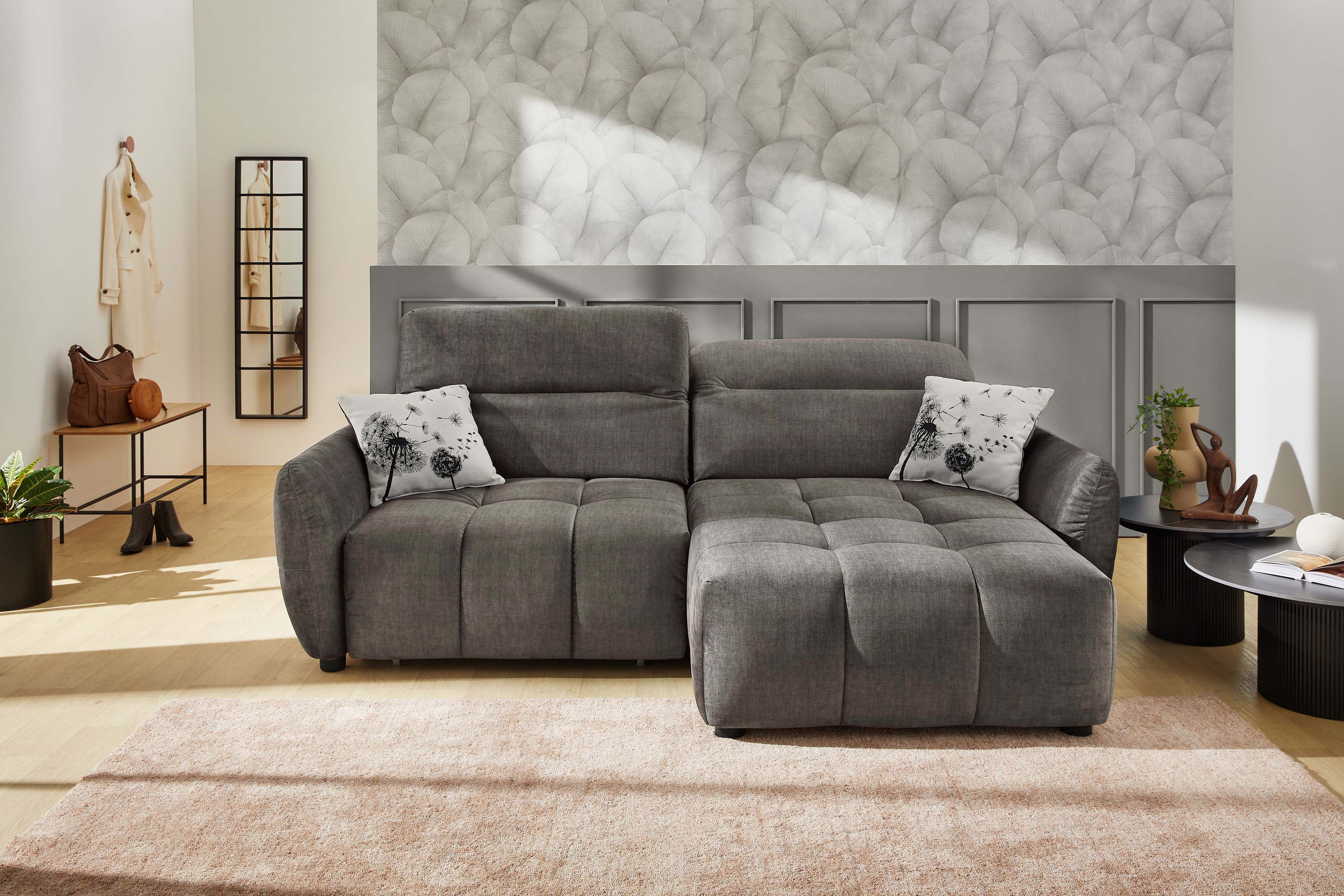 Dieses attraktive Ecksofa aus dem Hause Jockenhöfer vereint Stil, Komfort und Bequemlichkeit auf höchstem Niveau. Die schön geformte Polstergarnitur präsentiert sich im eleganten Grauton mit schwarzen Kunststofffüßen und ist zudem mit vielerlei Details, wie den sofort ins Auge fallenden, quadratisch angeordneten Einzügen in der Sitzfläche, versehen, welche zusammen mit der stylishen Blocksitzausführung sowie dem voluminös runden Design ein äußerst charmantes Gesamtbild erzeugen. Zoom ist umlaufend mit einem weichen Velours bezogen, sodass die Garnitur mit einem Stellmaß von ca. 260 x 191 cm auch beliebig frei im Raum platziert werden kann. Eine bequeme Polyätherschaumpolsterung auf einer stabilen Wellenunterfederung sorgt für einen hervorragenden Sitz- sowie Liegekomfort und die hochwertige Verarbeitung der Materialien garantiert eine lange Lebensdauer sowie eine hohe Strapazierfähigkeit. Ebenso verfügt diese Polsterecke über zwei unabhängig voneinander verstellbare Kopfteile und ist zudem mit einer praktischen, motorischen Sitztiefenverstellung sowie einem USB-A und USB-C Ladeport ausgestattet. Durch den elektromotorischen Auszug erhalten Sie per Knopfdruck ca. 60 cm mehr Sitztiefe und können es sich auf einer ca. 214 x 130 cm großen Relax- sowie Liegefläche so richtig gemütlich machen. Zwei Wende-Zierkissen im modischen Dessin komplettieren den Lieferumfang dieser tollen Polstergarnitur. Zoom von Job - in linker und rechter Ausführung lieferbar.
