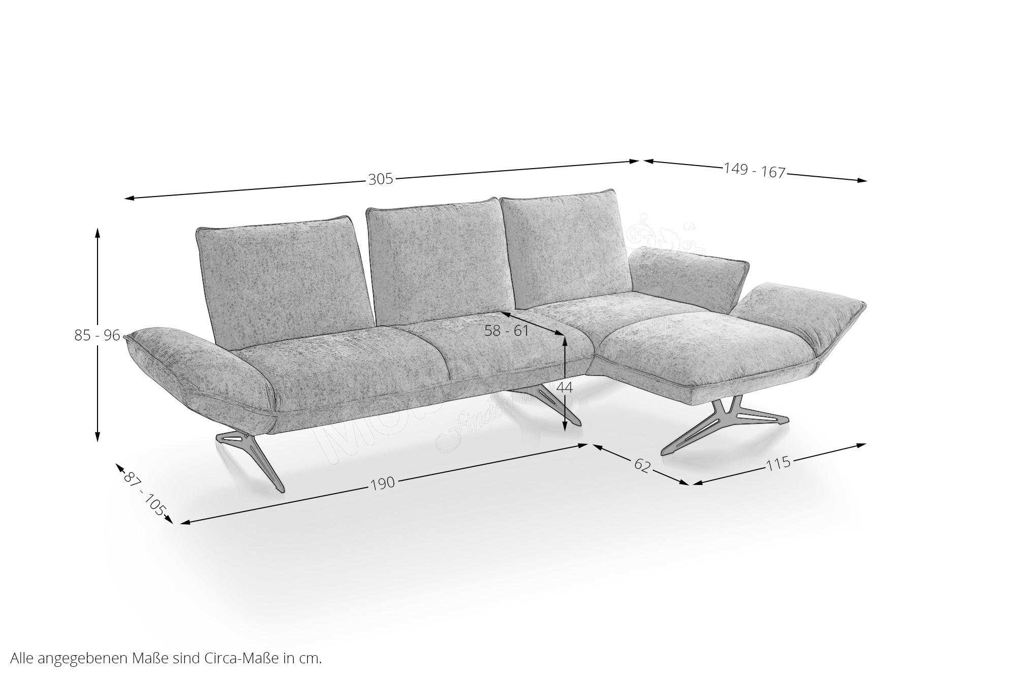 - 1 x PZ2 - Liege mittel zwei Armlehnen rechts, ca. BHT: 115/85-96/149-167 cm