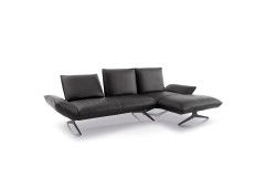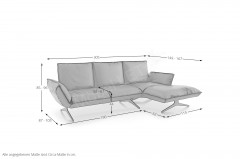 Sie haben Ihre neue Wohnung mit viel Liebe zum Detail eingerichtet und jetzt fehlt nur noch ein Möbelstück, das kompromisslosen Luxus mit vollendeter Entspannung vereint. Entdecken Sie Buddy - die Design-Ikone aus dem Hause KOINOR. Hier trifft meisterhafte Handwerkskunst auf urbane Ästhetik. Buddy fasziniert durch sein spannendes Spiel der Gegensätze: Klare, kubische Formen verschmelzen mit einladend voluminösen Polstern zu einem optischen Highlight. Gehüllt in ein atemberaubendes, schwarzes Echtleder, strahlt dieses Ecksofa eine zeitlose Eleganz aus, die sich nahtlos in Ihr Interieur einfügt. Da auch der Rücken mit feinstem Leder bezogen ist, genießen Sie absolute architektonische Freiheit bei der Raumgestaltung. Aber das KOINOR Sofa sieht nicht nur fantastisch aus, es fühlt sich auch, dank einer weichen Polsterung aus einem Polyschaum, so an. Der Rücken lässt sich manuell nach hinten verstellen, wodurch sich die Sitztiefe auf großzügige ca. 61 cm erweitert. Das ist kein einfaches Sitzen mehr - das ist Entspannung auf höchstem Niveau. Machen Sie keine Kompromisse, wenn es um Ihren Komfort geht. Kontaktieren Sie noch heute unsere Experten per Telefon, Mail oder Live-Chat für Ihre persönliche Wunschkonfiguration. Erleben Sie Design und Qualität Made in Germany - Buddy von KOINOR.