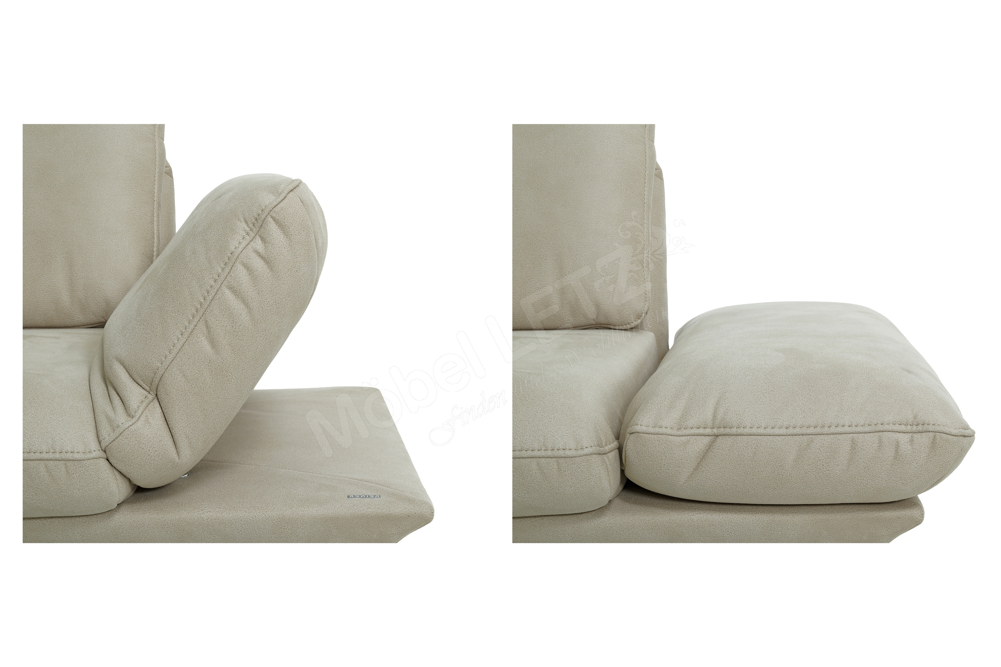 Das Rückenkissen kann, mittels Klemmbeschlag, stufenlos nach oben aufgestellt werden. Dadurch vergrößert sich die Sitztiefe und das Sofa wird zum Hochlehner.