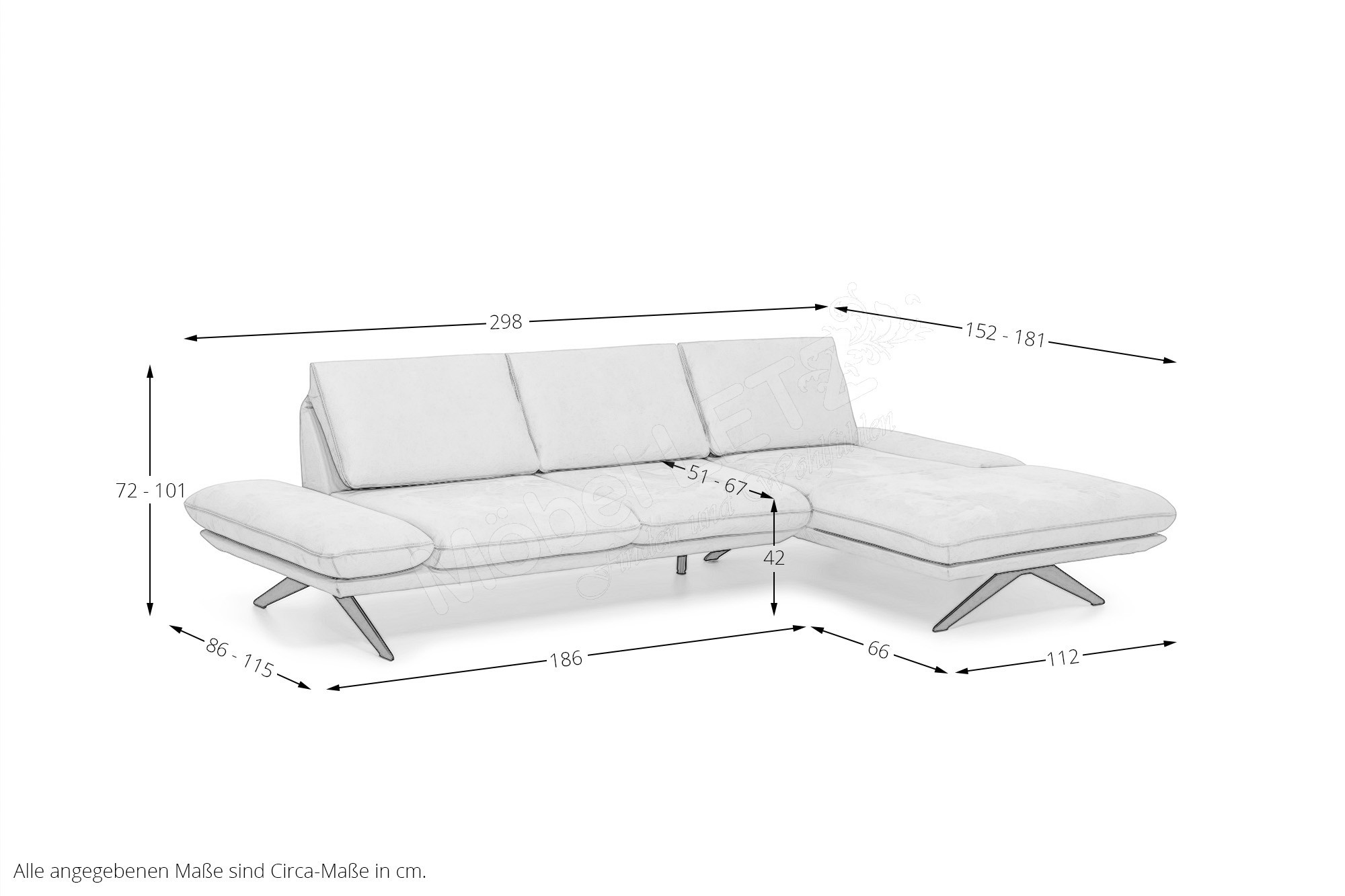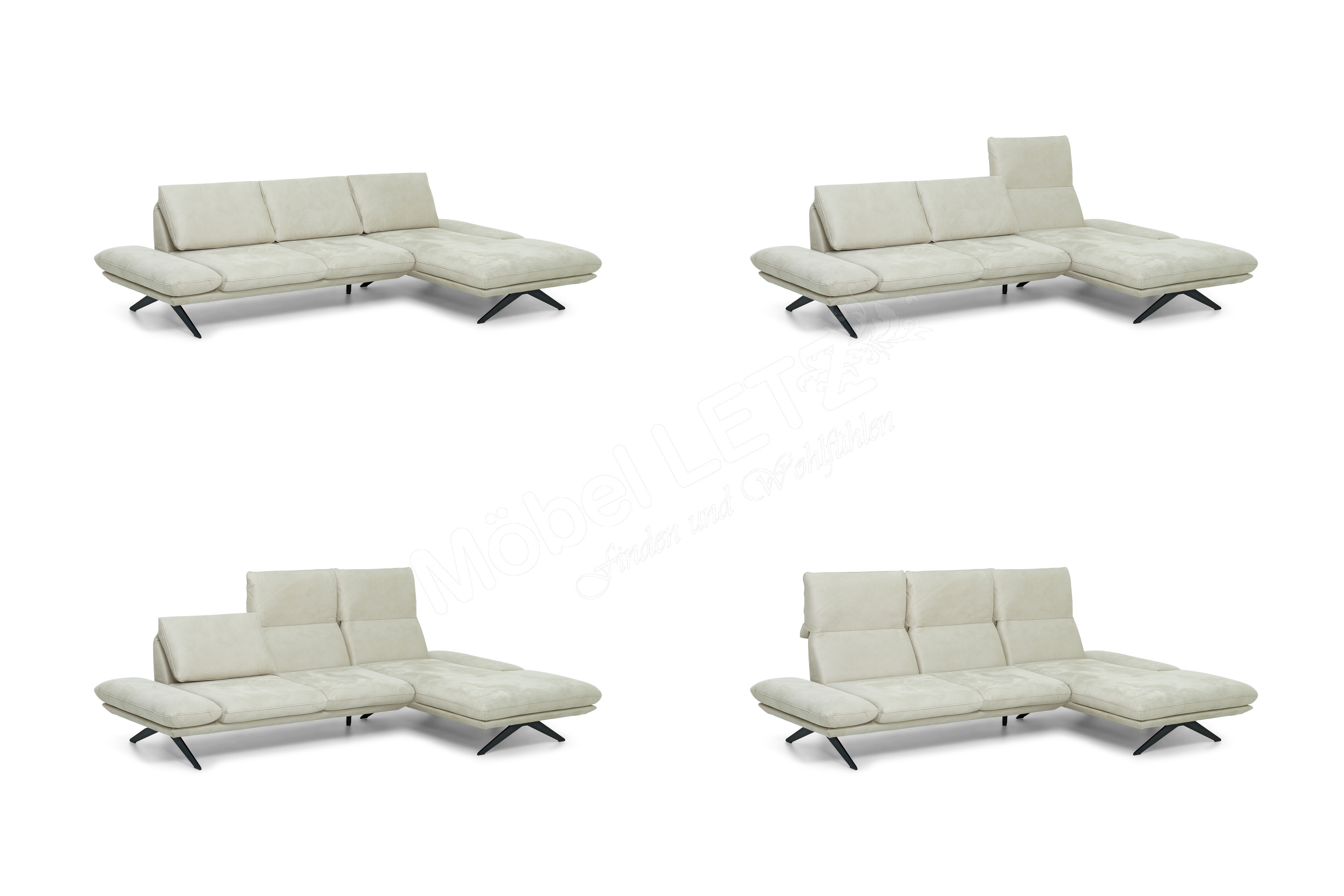 Sie sind auf der Suche nach einer schicken Eckgarnitur, doch die bisherigen Sofas sehen alle gleich aus? Dann sollten Sie sich die gelungene Zusammenstellung des Systemprogramms Elements aus dem Hause KOINOR Polstermöbel einmal genauer anschauen. Die Kombination aus einer geradlinigen Formensprache schafft zusammen mit sanften Rundungen sowie der verstellbaren Armlehne ein gelungenes Gesamtbild, welches sich in das bestehende Interieur einfügt und seine Betrachter stets in seinen Bann zieht. Die hier abgebildete Eckkombination aus einem 2,5-Sitzer sowie einer mittleren Liege hält ein Stellmaß von ca. 298 x 152-181 cm für Sie bereit, auf dem Sie sich entspannt zurücklehnen und dem TV-Programm folgen können. Und das Beste an Elements? Das Sofa wird, so wie alle anderen Modelle, in Deutschland designt und hergestellt, was Ihnen das höchste Maß an Qualität sowie Langlebigkeit garantiert. Entspannen Sie in Zukunft auf die schönste Art und Weise mit dem KOINOR Sofaprogramm Elements.