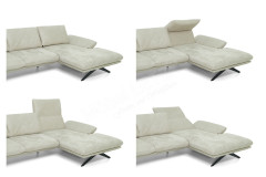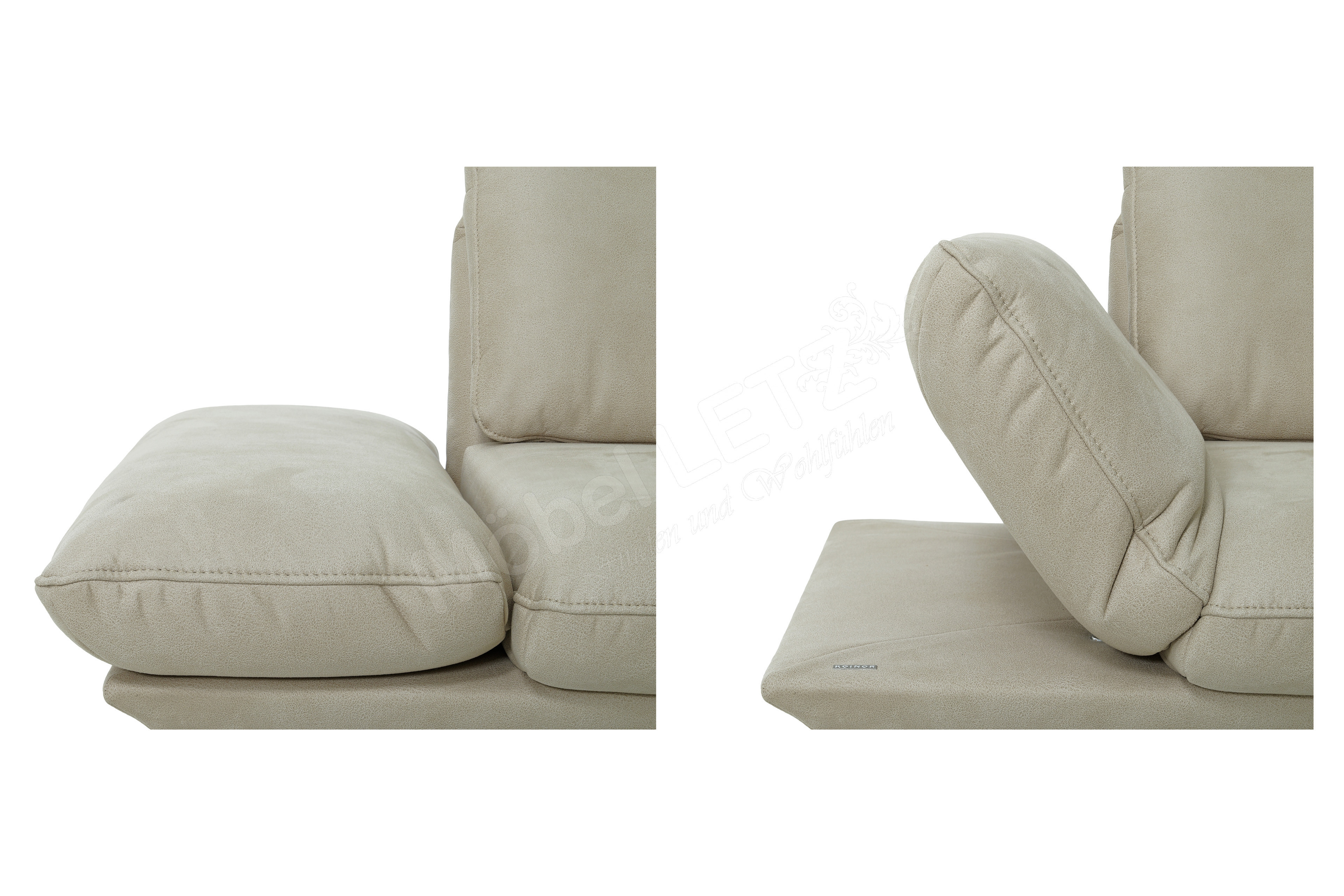Das Rückenkissen kann, mittels Klemmbeschlag, stufenlos nach oben aufgestellt werden. Dadurch vergrößert sich die Sitztiefe und das Sofa wird zum Hochlehner.