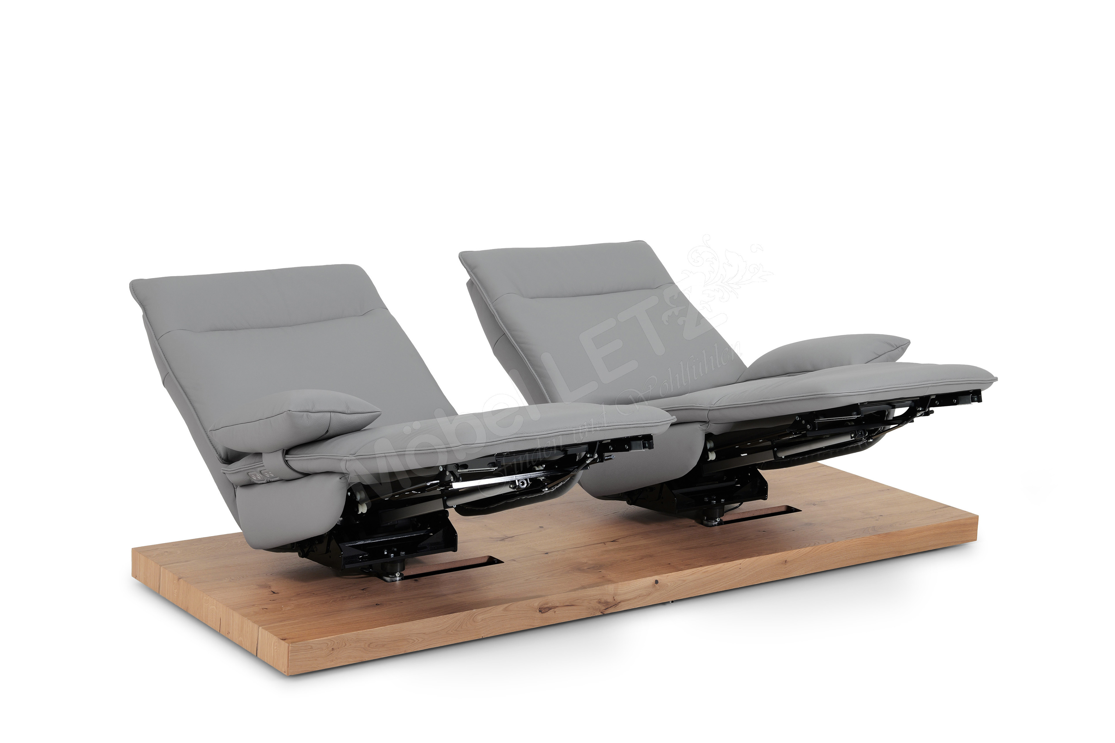 Evino aus dem Hause KOINOR Polstermöbel steht für pures Wohngefühl und Smart Living. Die Gegensätzlichkeit im Design zieht alle Blicke auf sich und erweckt somit ein einzigartiges Raumgefühl. Ein geradliniges, bodennahes Plateau, welches hier in der Ausführung Balkeneiche abgebildet ist, schafft eine solide Basis für das extravagante Möbelstück und lässt es beinahe schwerelos wirken. Wobei die organisch anmutenden Einzelsitze mit sanften Rundungen auftrumpfen. Dank der integrierten Dreh- und Schiebefunktion lassen sich die Sitze, unabhängig voneinander, nach links sowie rechts verschieben. So entsteht ein Zwischenraum zwischen den einzelnen Sitzeinheiten von etwa 56 cm, welchen Sie vortrefflich als Ablage nutzen können, gleichzeitig verwandelt sich das behagliche Sofa in zwei Relaxliegen. Ferner lassen sich die Sitze manuell um bis zu ca. 320° nach links und rechts drehen - ist der richtige Ausblick gefunden, finden Sie dank der motorischen Verstellung, mittels derer Sie den Rücken sowie das Fußteil unabhängig voneinander neigen können, kinderleicht die perfekte Wohlfühlposition. Mit Evino von KOINOR die Schönheit des Augenblicks erkennen und bewusst zur Ruhe kommen.