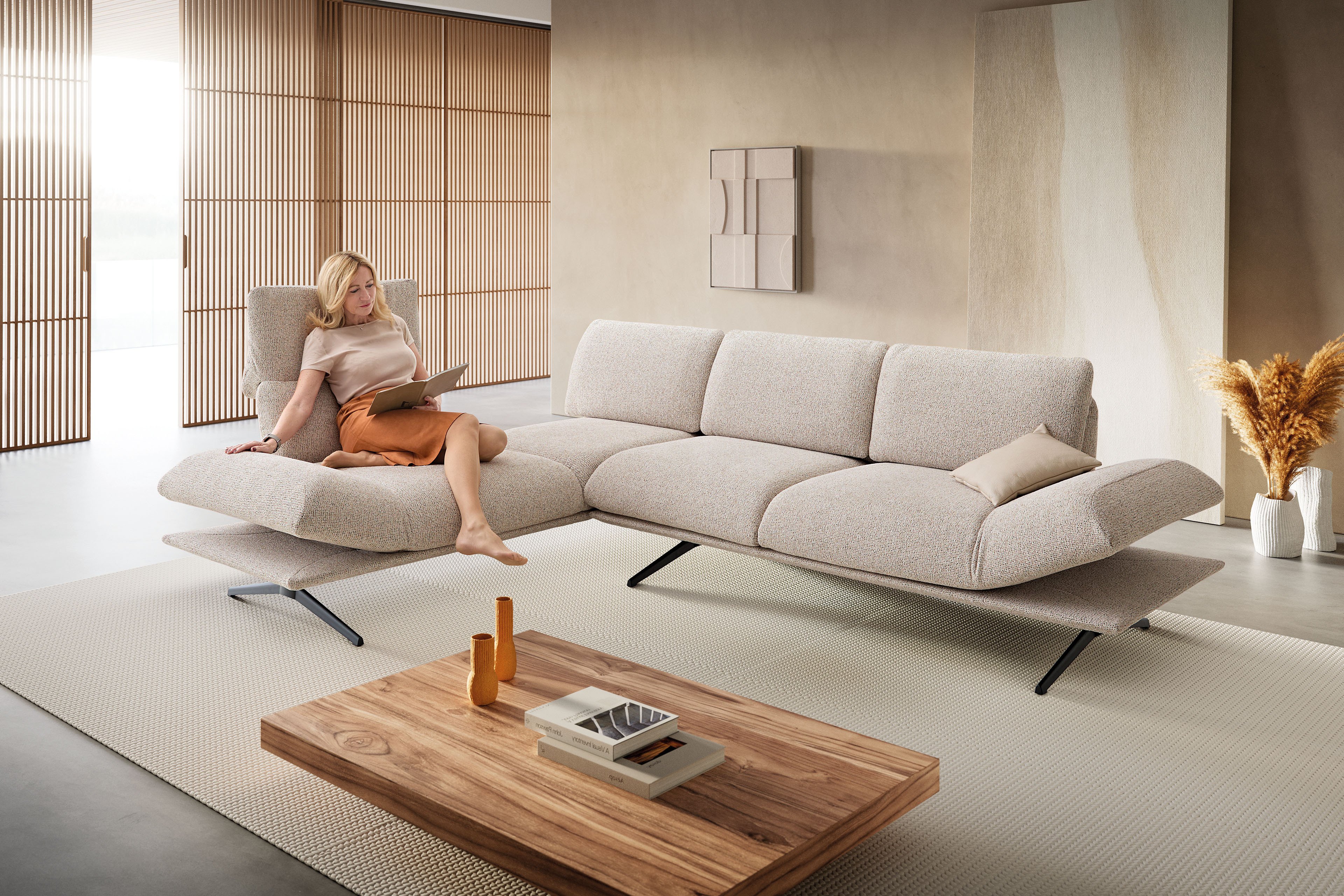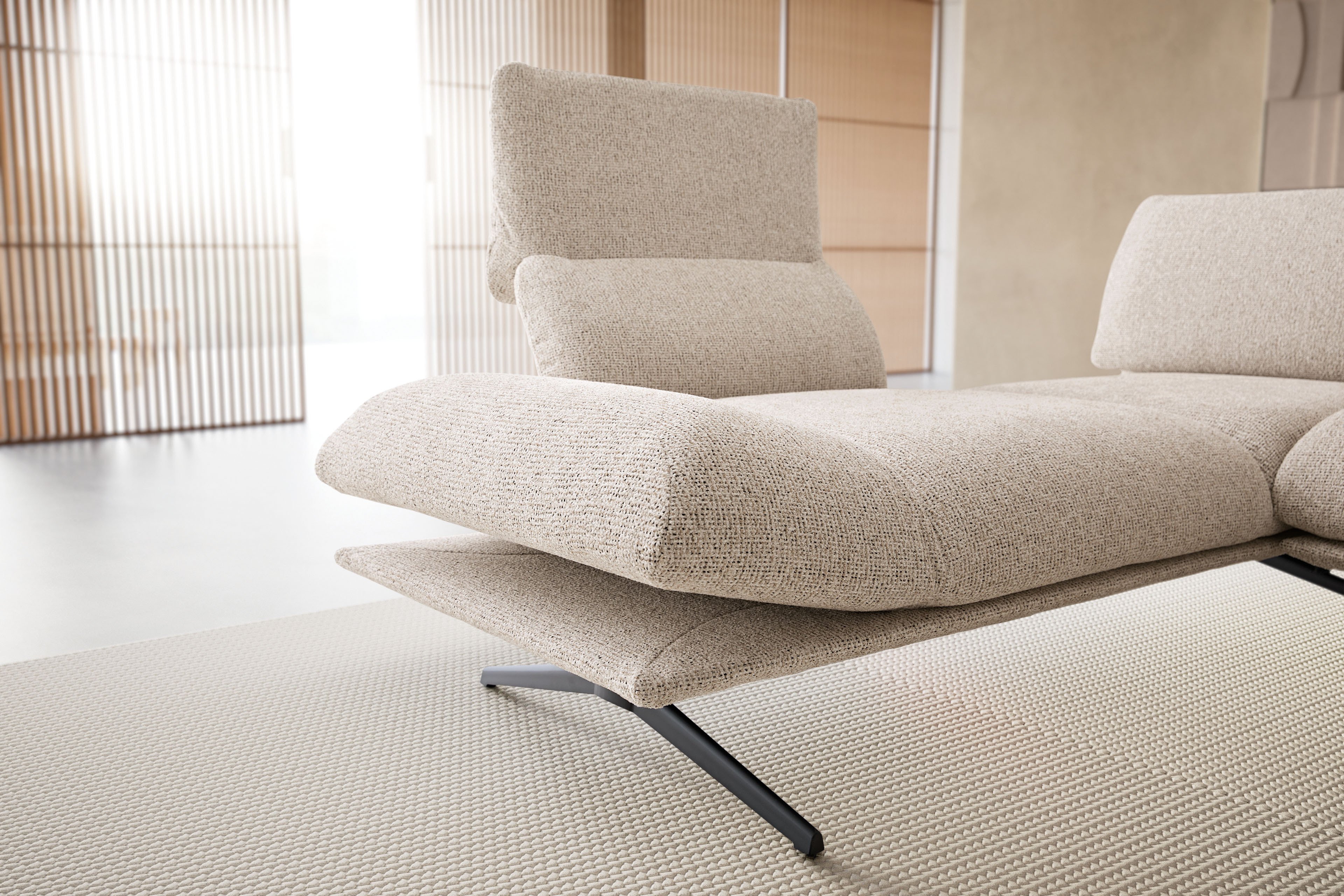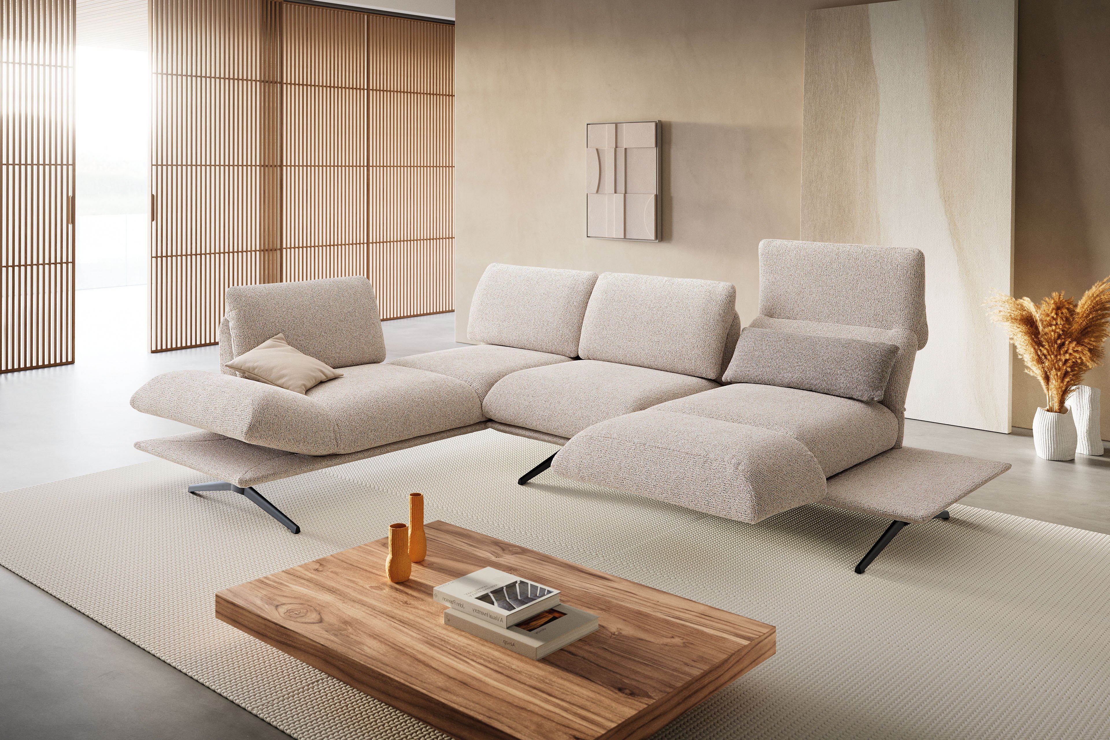- Funktionen: Funktionsrücken, Armteilverstellung, Anbauecke mit Schieberücken