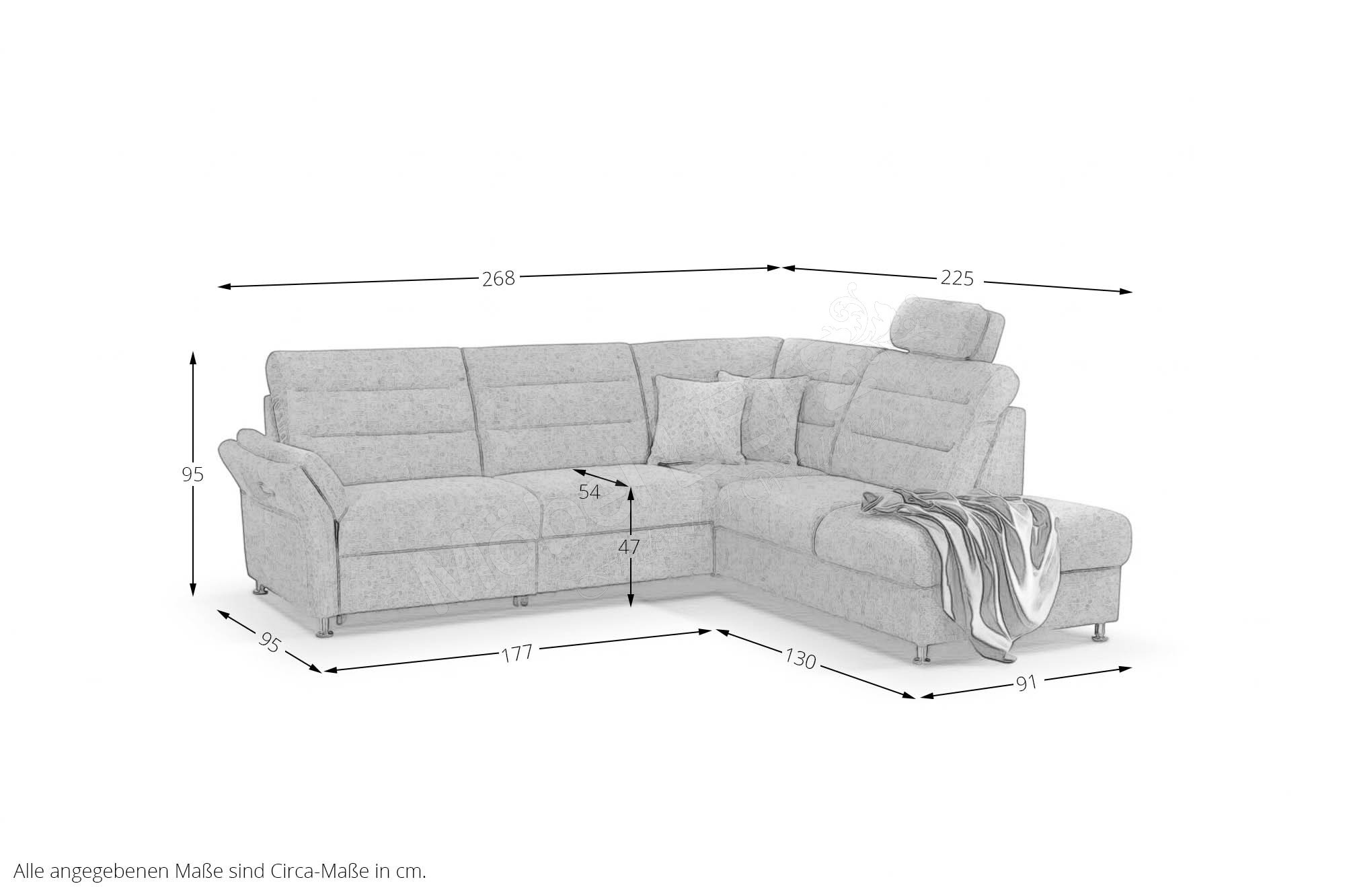 - 1 x 2OTTR - Ottomane 2-sitzig rechts, ca. BHT: 91/95/225 cm
