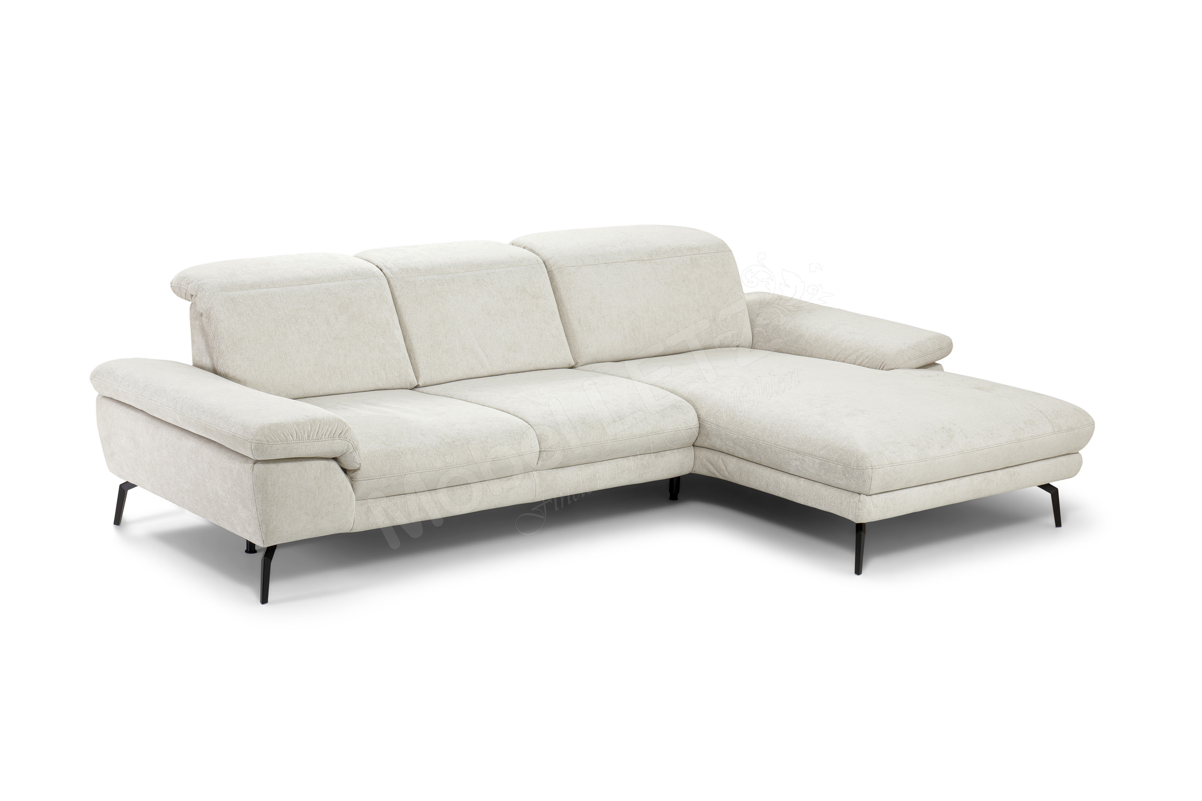 Das Ecksofa MP-IN22025 von Megapol vereint modernes Design mit hoher Funktionalität: Mit seinem großzügigen Stellmaß von ca. 293 x 191-223 cm bietet es viel Platz zum Sitzen, Ausspannen, Relaxen und eine stilvolle Lösung für Ihre vier Wände. Im angenehm weichen Chenille-Flachgewebe "Santos natur" und mit den ca. 18 cm hohen, schwarzen Metallfüßen, welche dem Megapol Sofa viel Bodenfreiheit verschaffen, sodass selbst ein Saugroboter mühelos darunter seiner Arbeit nachgehen kann, wirkt es auf den ersten Blick dezent, verrät jedoch nicht sofort die Vielzahl an Möglichkeiten, die in ihm stecken. Die Kombination aus einem 2,5-Sitzer sowie einem XL-Canape beeindruckt modelltypisch mit einer praktischen Kopfteilverstellung und einer hochwertigen Polsterung aus einem Kaltschaum auf dauerelastischen Wellenfedern. Doch manchmal reicht das Standardangebot nicht aus, um den individuellen Bedürfnissen gerecht zu werden. Für entspannte Stunden nach einem stressigen Tag wurde das Canape mit einer motorischen Verstellbarkeit ausgestattet: Mit einem Handschalter lassen sich der Sitz und der Rücken bis in eine angenehme Relaxposition verstellen, während das Kopfteil manuell in die perfekte Position gebracht wird. Ob Musik hören, ein spannendes Buch lesen, fernsehen oder im Internet surfen - das Sofa macht Ihre persönliche Auszeit zum wahren Genuss. Darüber hinaus wurde es zusätzlich mit weiteren Features, wie einer Sitztiefen- und Armteilverstellung, optimiert. Eine perfekte Wahl für jedes Wohnambiente mit individuellem Komfort - MP-IN22025 aus dem Hause Megapol.
