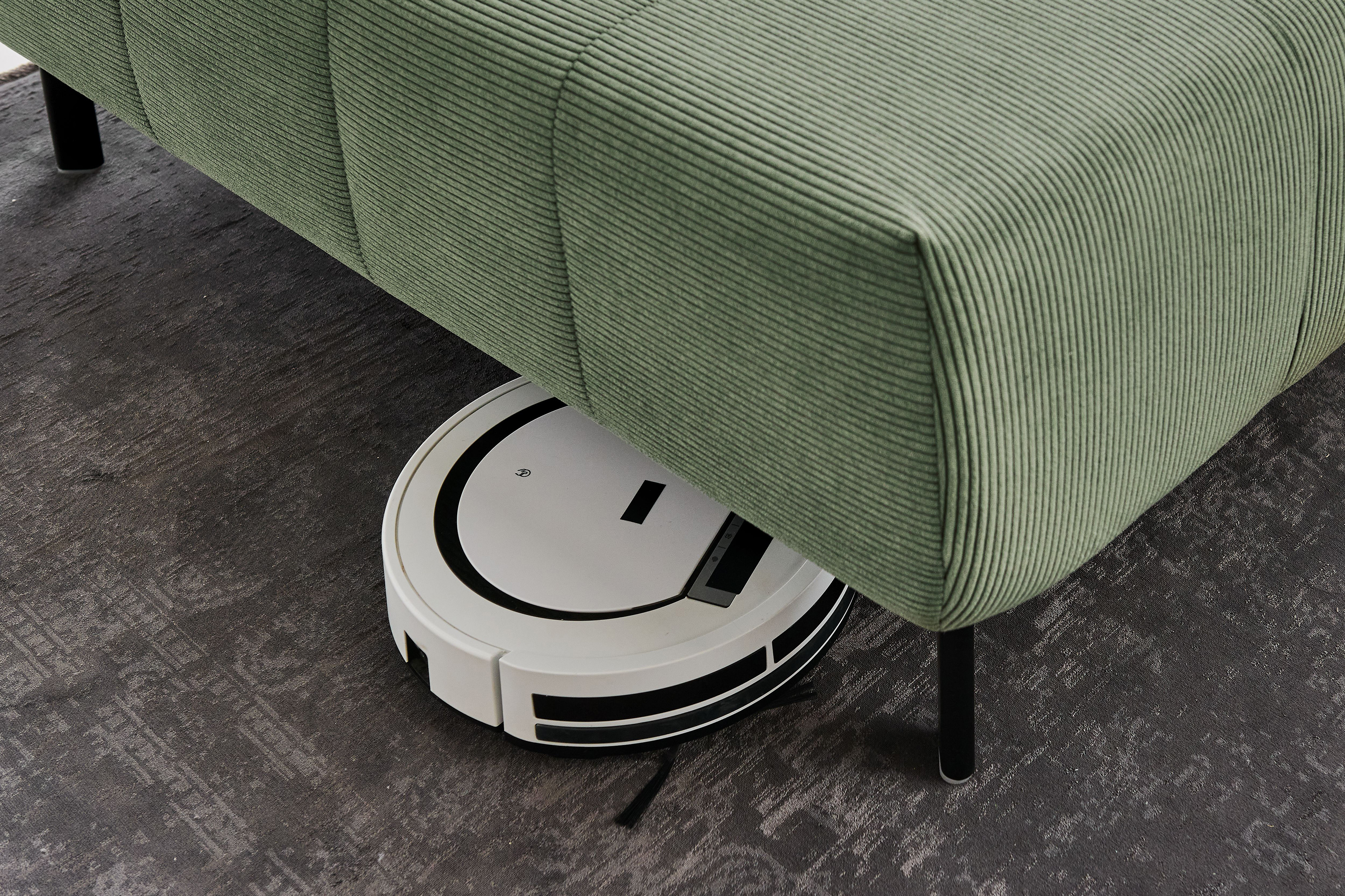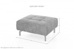 MP-IN25098 von Megapol vereint modernes Design mit hervorragendem Komfort und wird so zu einem stilvollen Highlight in jedem Wohnraum. Bezogen mit einem angenehm weichen Cordbezug im schicken Grünton strahlt das Möbelstück eine dezente Eleganz aus. Getragen wird das Ecksofa von schwarzen Metallfüßen, die optisch perfekt passen und auch praktisch durchdacht sind: Mit einer Sitzhöhe von ca. 44 cm sowie einer Fußhöhe von ca. 18 cm bietet das Sofa nicht nur einen angenehmen Sitzkomfort, sondern auch ausreichend Bodenfreiheit. So kann ein Saugroboter problemlos unter ihm arbeiten, was bei der Pflege und Reinigung des Wohnbereichs von großem Vorteil ist. Die klare Linienführung, kombiniert mit der quadratischen Steppung und der Blocksitzausführung, verleiht dem Modell seinen gemütlichen sowie modernen Charakter. Die harmonische Balance aus perfekt abgestimmten Proportionen, sanften Rundungen und einem einladenden Sitzkomfort macht die Megapol Polstergarnitur zu einem idealen Rückzugsort für entspannte Stunden. Ob Sie sitzen oder liegen möchten, ein aufregendes Buch lesen oder entspannt fernsehen - MP-IN25098 ist äußerst vielseitig und bestens vorbereitet für all diese Momente. Die Polsterecke punktet mit einer durchdachten Kombination aus einem Kombi-Element mit Anstellhocker und einem 1,5-Sitzer XXL mit Armlehne, einer modelltypischen Kopfteilverstellung sowie einer bequemen Kaltschaumpolsterung und schafft trotz der eher kompakten Stellfläche von ca. 214 x 261 cm ausreichend Platz für unterschiedlichste Bedürfnisse. Für noch mehr Freiheit und Bequemlichkeit kann die Garnitur optional mit einer motorischen Vorziehbank ergänzt werden. Durch einfaches Berühren zweier Touch-Buttons lässt sich die Sitzfläche des 1,5-sitzigen Elements um etwa 19 cm erweitern - ideal zum Ausruhen und Ausstrecken. Alternativ sorgt eine wählbare Sitztiefenverstellung für zusätzliche Flexibilität: Durch leichtes Anheben und Vorziehen der Rückenkissen kann die Sitztiefe individuell angepasst werden. Wählen Sie zudem zwischen zwei unterschiedlichen Sitzhöhen sowie Fußausführungen und ergänzen Sie einen passenden Hocker sowie dekorative Zierkissen - so entsteht ein Rückzugsort, der nicht nur ästhetisch überzeugt, sondern auch auf funktionale Anforderungen eingeht. Hinzu kommen die umfangreiche Bezugsauswahl und eine Typenplanung, die weitere Ausführungen möglich macht. MP-IN25098 aus dem Hause Megapol ist ein Polstermöbel, das Sie tagtäglich aufs Neue begeistern wird.