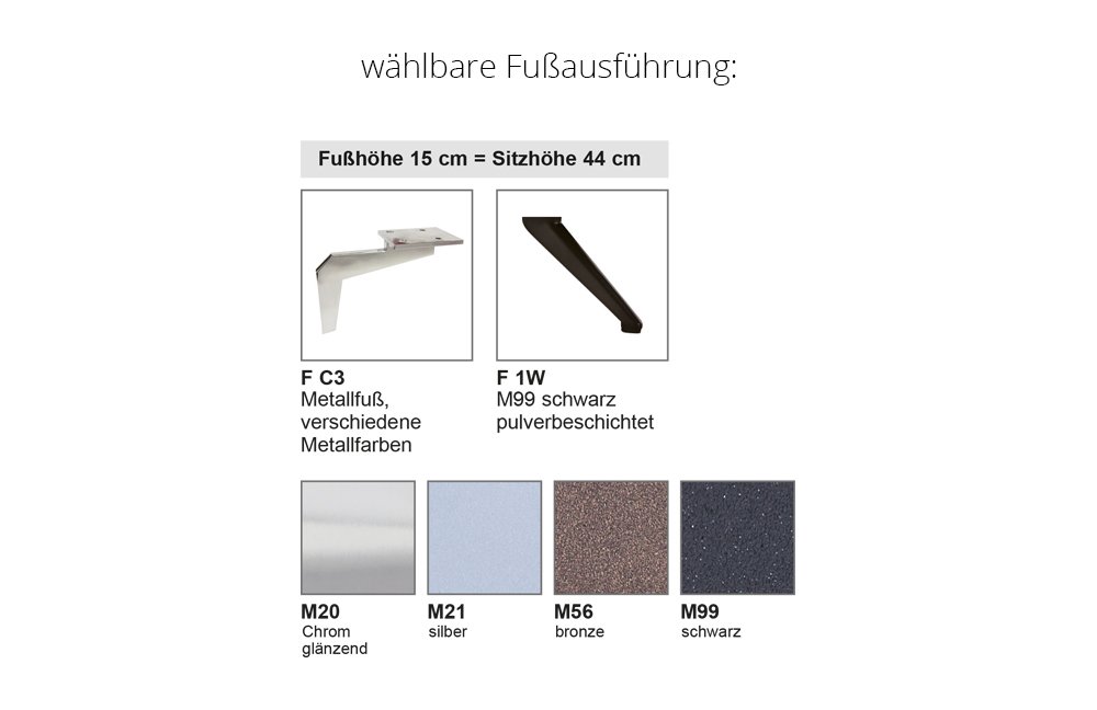 - Fußvariante: F1W - Metallfuß schwarz, ca. 15 cm