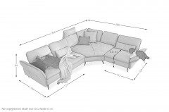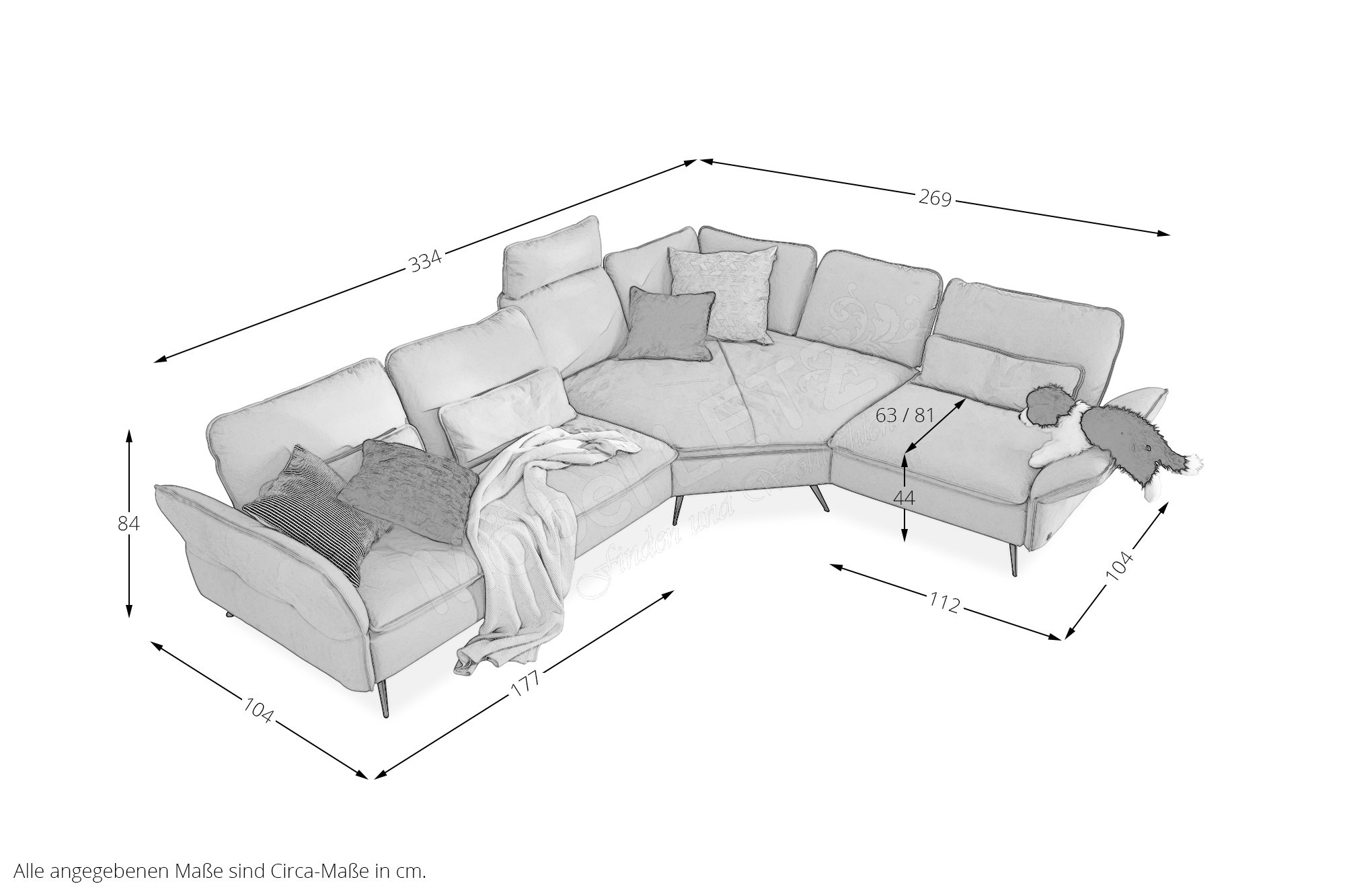 Diese Musterring Garnitur überzeugt nicht nur mit ihrem traumhaft schönen Design, sondern auch mit einem hervorragenden Sitzkomfort - Modell MR 2340. Das attraktive Ecksofa in einem braunen Lederbezug präsentiert sich mit einer Stellfläche von etwa 334 x 269 cm und bietet so einen großzügigen Platz, um den Abend allein mit einem Gläschen Wein oder in Gesellschaft bei einem entspannten Serienmarathon ausklingen zu lassen. Der edle Look wird mit den dezenten Metallfüßen in Schwarz perfekt abgerundet und verleiht dem Polstersofa eine gewisse Leichtigkeit. Hier werden Sie Tag für Tag von purem Wohlfühlen empfangen - dank der hochwertigen ergo-PUR-Schaum-Polsterung, in Kombination mit der Sitztiefenverstellung, welche sich im 2-Sitzer sowie im 1,5-Sitzer befindet, erleben Sie ein ausgezeichnetes Sitzgefühl, das zum stundenlangen Verweilen und Relaxen einlädt. Für noch mehr Flexibilität lässt sich MR 2340 mit einer Seitenteilverstellung ausrüsten, welche für mehr individuellen Komfort sorgt und Ihnen bei jeder Sitzhaltung seitliche Unterstützung schenkt. Ergänzen lässt sich das Möbelstück optimal mit Nierenkissen, Kopfstützen sowie einem passenden Hocker. Das alles können Sie über die Zusatzoptionen hinzubuchen, wo Sie ebenfalls die Möglichkeit finden, aus diversen Fußausführungen auszuwählen. Ihnen gefällt das Gewand nicht oder das Platzangebot ist begrenzt? Nutzen Sie gerne unsere umfangreiche Bezugskollektion, welche Sie unter dem Punkt "Farbe ändern" einsehen können. Außerdem hält unser Polsterplaner eine große Auswahl an verschiedenen Elementen bereit, sodass Sie Ihren persönlichen Rückzugsort ganz nach Ihren Vorstellungen konfigurieren können, oder kontaktieren Sie unsere Einrichtungs-Experten, die Ihnen bei jeder Frage stets zur Seite stehen. MR 2340 von Musterring - eine Traum-Oase, die man nicht mehr missen möchte.