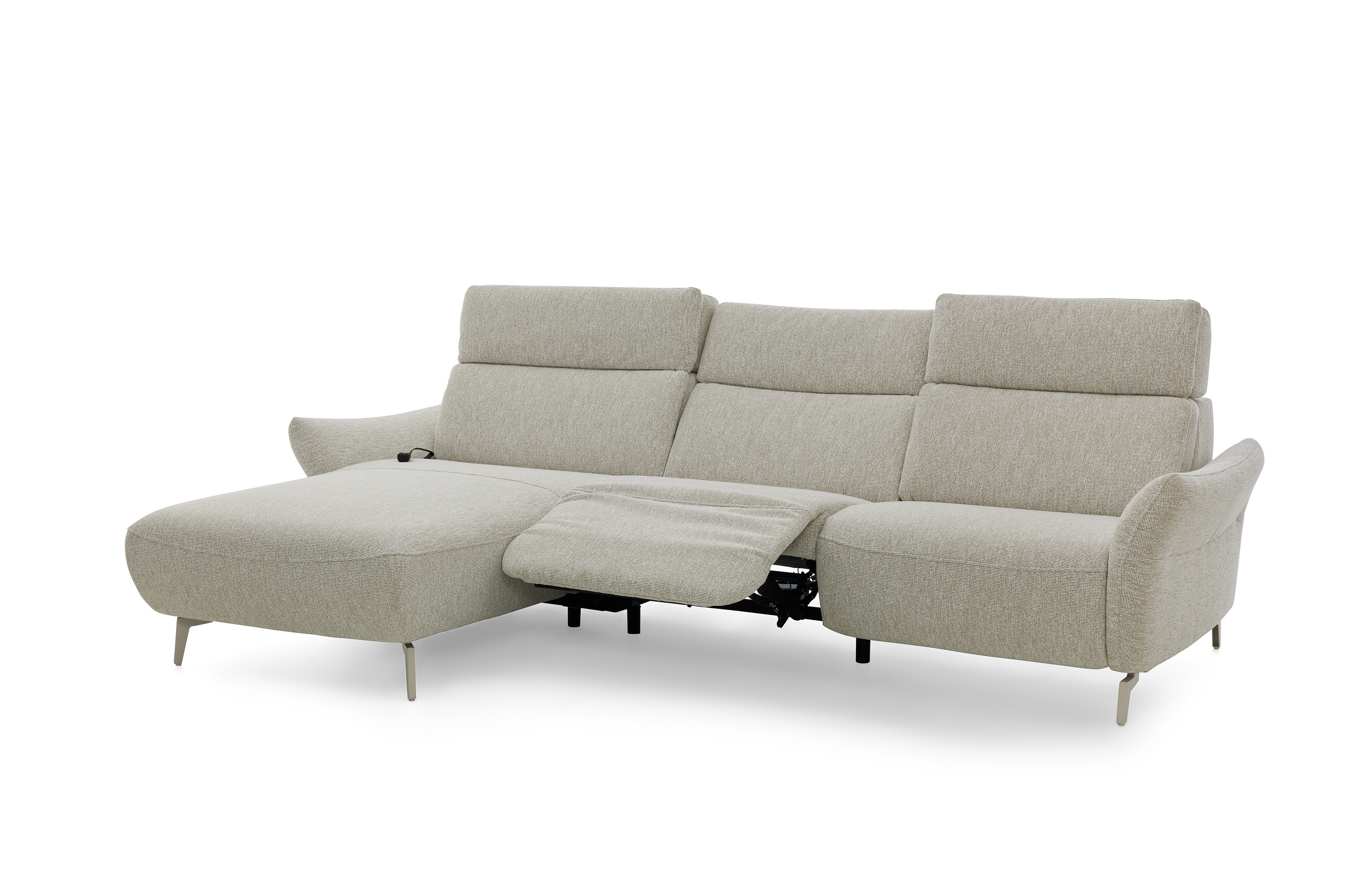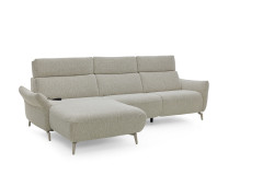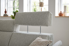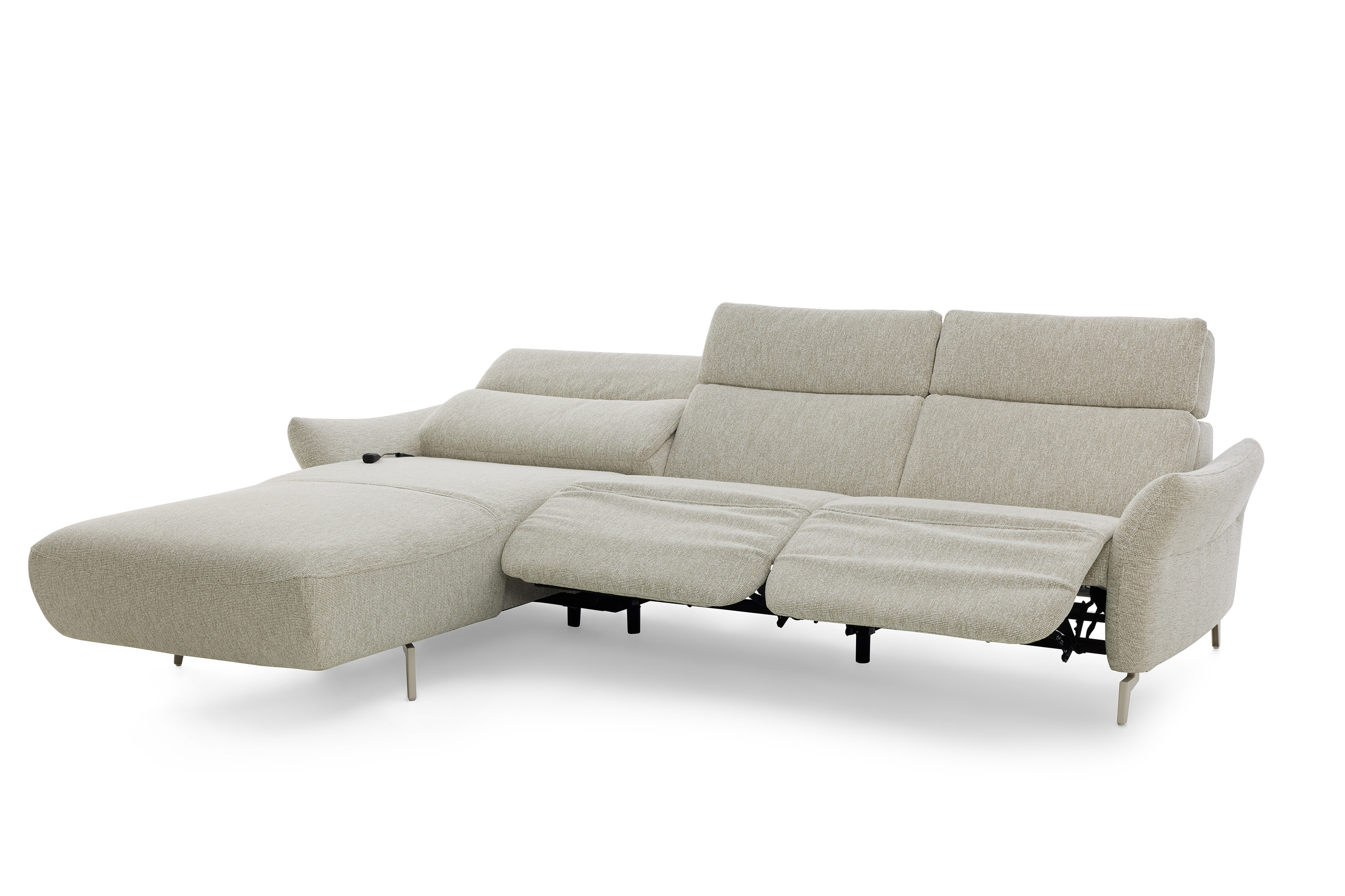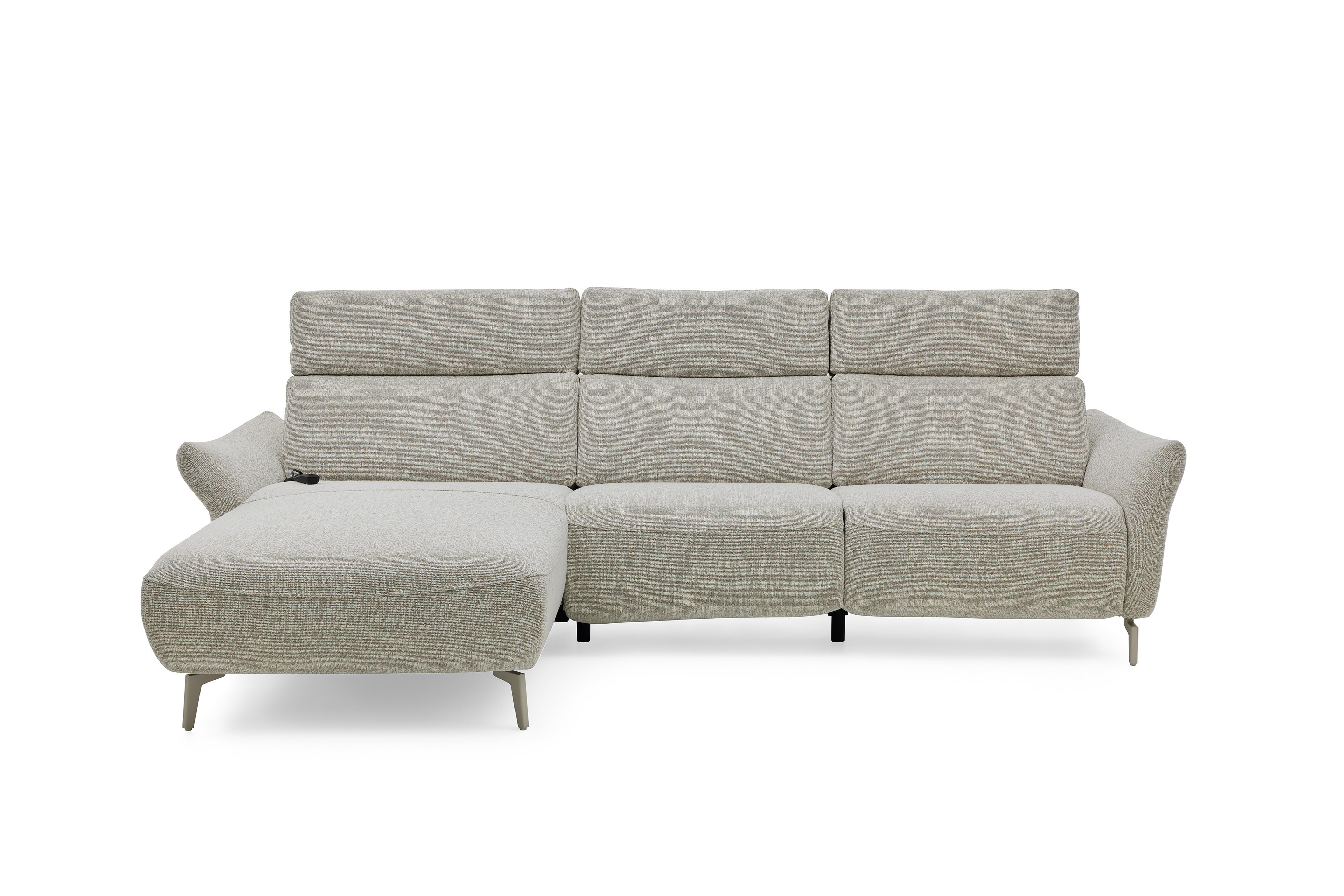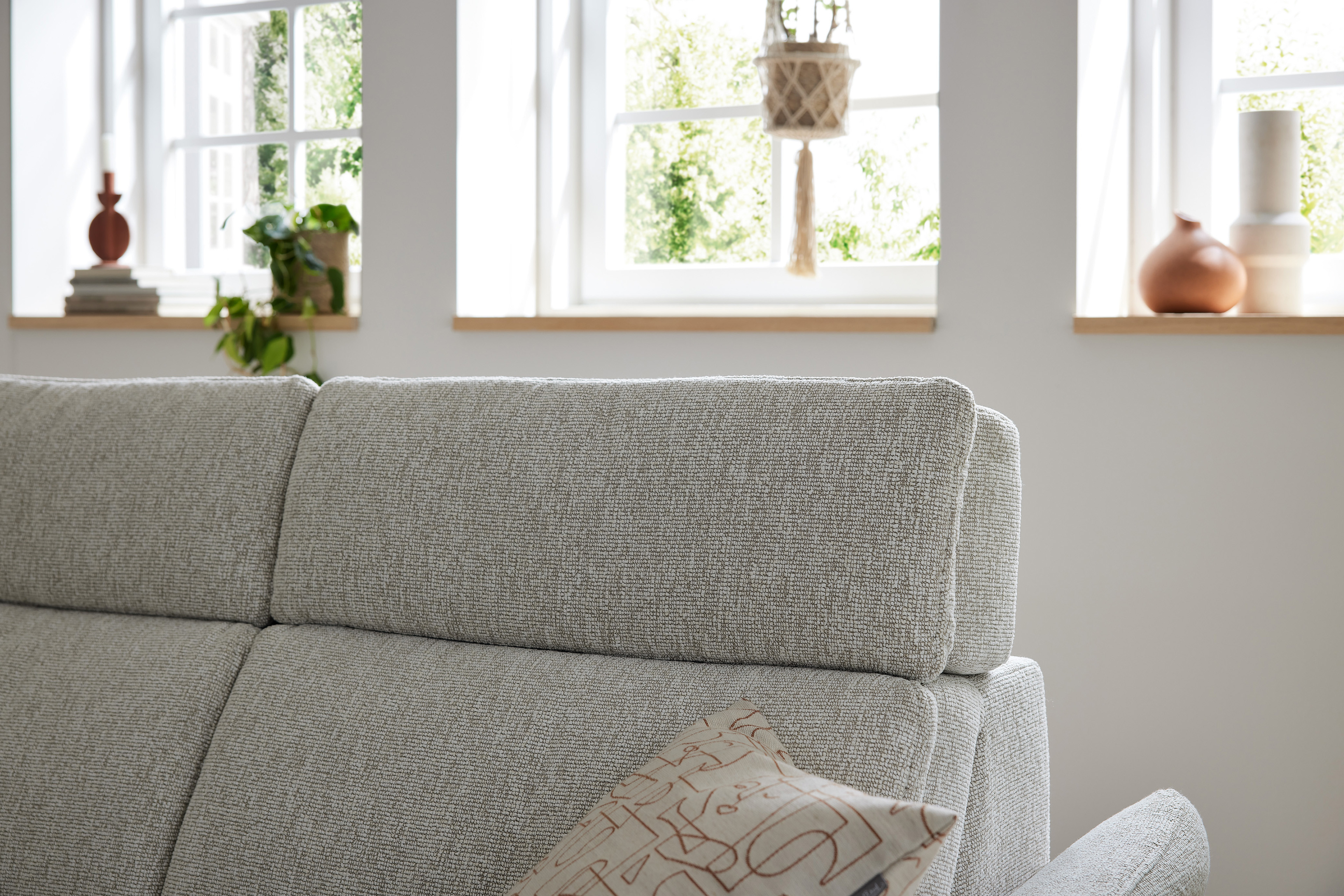 In stilsicherer Optik und mit einem Hauch Arroganz gestaltet die Eckgarnitur MR 280 von Musterring durch ihre reine Präsenz jeden Raum zu einem Ort, an dem Chic, Glamour und Ästhetik die Oberhand gewinnen. Sowohl der cremefarbene Stoffbezug als auch die dazu passende Fußausführung lassen dieses markant designte Ecksofa in absoluter Eleganz erstrahlen. Zusammengesetzt aus einem Canape sowie einem 2,5-Sitzer, bringt das Modell bereits eine manuelle Kopfteilverstellung in seine neue Wirkungsstätte mit. Neben diesen behaglichen Komfort-Extras können Sie über unsere Zusatzoptionen ebenfalls den Härtegrad des Sitzes aus drei verschiedenen Optionen frei wählen, um Ihr neues Sofa ganz und gar auf Ihre Bedürfnisse abzustimmen. Ihnen gefällt die inkludierte Kopfteilverstellung, jedoch steht Ihnen ab und an der Sinn danach, sich entspannt zurückzulehnen? Dann wird Sie die hinzubuchbare WallAway-Funktion sicherlich begeistern. Über die seitlich im Sitz liegenden Touch-Buttons können Sie den Neigungswinkel der Rückenlehne ganz nach Belieben einstellen und sich sowohl in Ihre Wunschposition fallen als auch die Seele baumeln lassen. Ob in Stoff oder Leder, mit dekorativen Zierkissen oder ohne jegliche Ablenkung vom eigentlichen Erscheinungsbild - mit der Polstergarnitur MR 280 von Musterring werden Lifestyle, Moderne und absolute Gemütlichkeit Einzug in Ihre vier Wände halten. Zögern Sie also nicht und bestellen Sie diese hinreißende Schönheit noch heute!