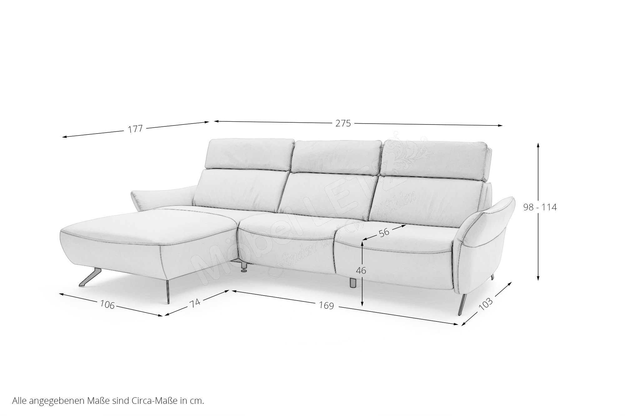 Die Nahtverarbeitung kann bei Stoff- oder Ledervarianten unterschiedlich ausfallen. Die Verarbeitung von Zier-, und Kapp- oder Doppelnähten kann in der Stoff- oder Lederausführung unterschiedlich ausfallen. Sofern das Modell in Leder bestellt wird, können zusätzlich Nähte entstehen. Die Arm- und Rückenlehnen sind nicht zum Sitzen geeignet. Die maximale Belastbarkeit beträgt 13 kg. Einige Bezüge (Velours, Microfaser) weisen starke Schattierungen auf und changieren je nach Blickrichtung. Das heißt, bei unterschiedlichen Beleuchtungs- sowie Blickwinkeln kommt es zu einem Farbwechsel bzw. zu einer farblichen Veränderung des Bezuges. Diese Eigenschaften sind warentypisch und stellen daher keinen Reklamationsgrund dar.