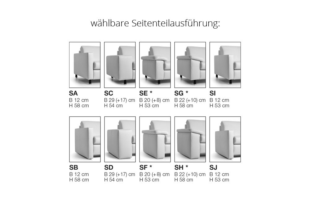Die Verarbeitung von Zier-, Kapp- oder Doppelnähten kann in der Stoff- oder Lederausführung unterschiedlich ausfallen. Es besteht die Möglichkeit, dass bei der Stoffausführung die Nähte entfallen bzw. durch einfache Nähte ersetzt werden.