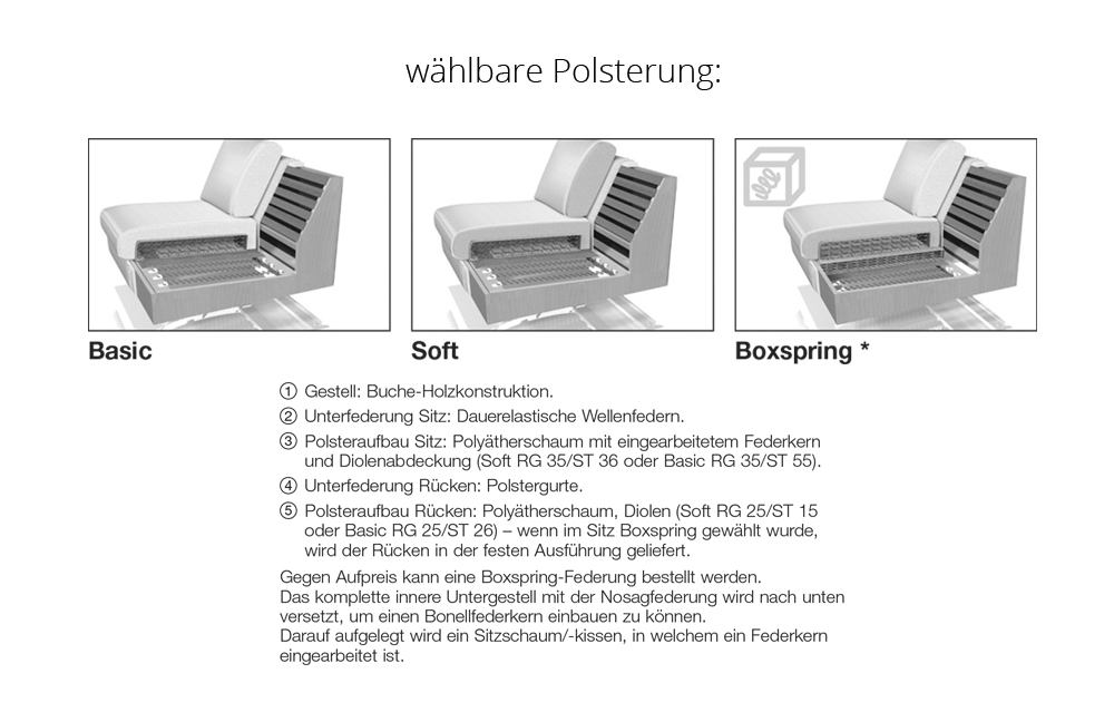 Nosagfederung, Bonellfederkern, Sitzschaum/-kissen mit eingearbeiteten Federkern (Art-Nr. BX7)