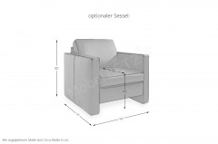 Gesamtbreite zuzüglich ca. 14 cm je 2-Sitzer