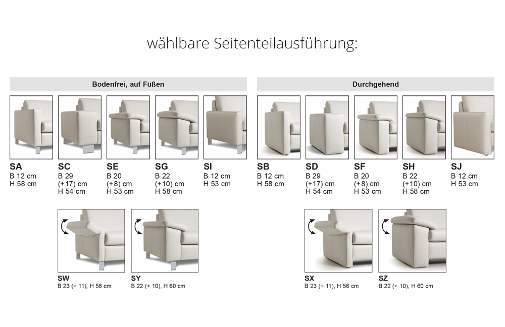 mit Gelenk, individuell zwischen Korpusrücken und Rückenkissen einschiebbar (Art-Nr. 3 x U92)