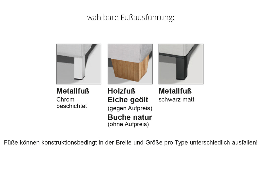 Die Hockerbank passt sich der gewählten Sitzhöhe sowie Fußausführung der Garnitur an. (Art-Nr. 9060)