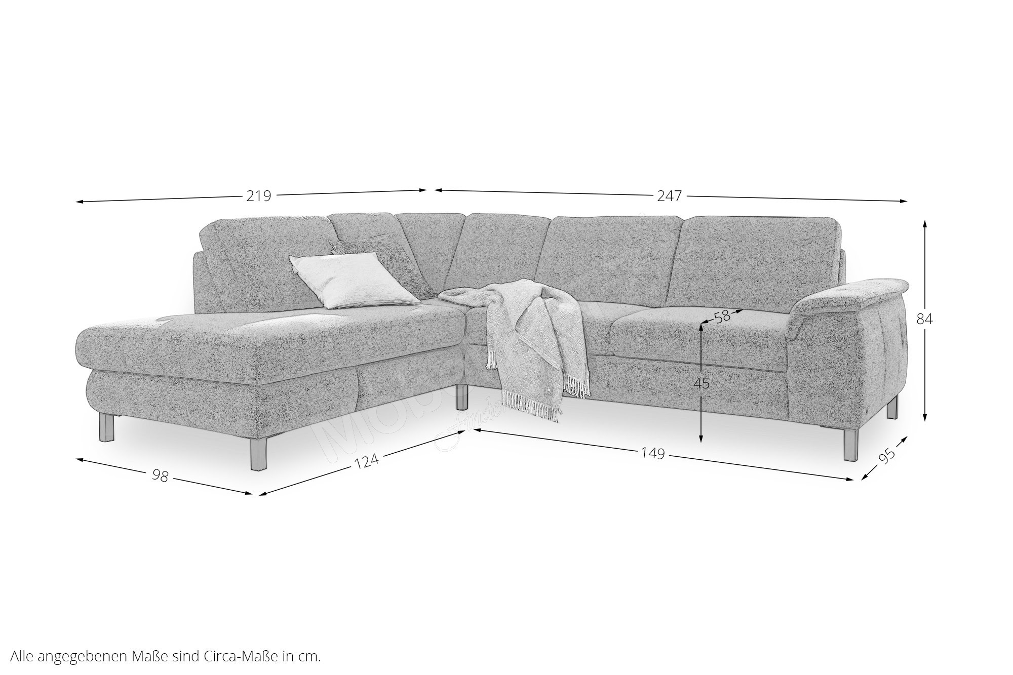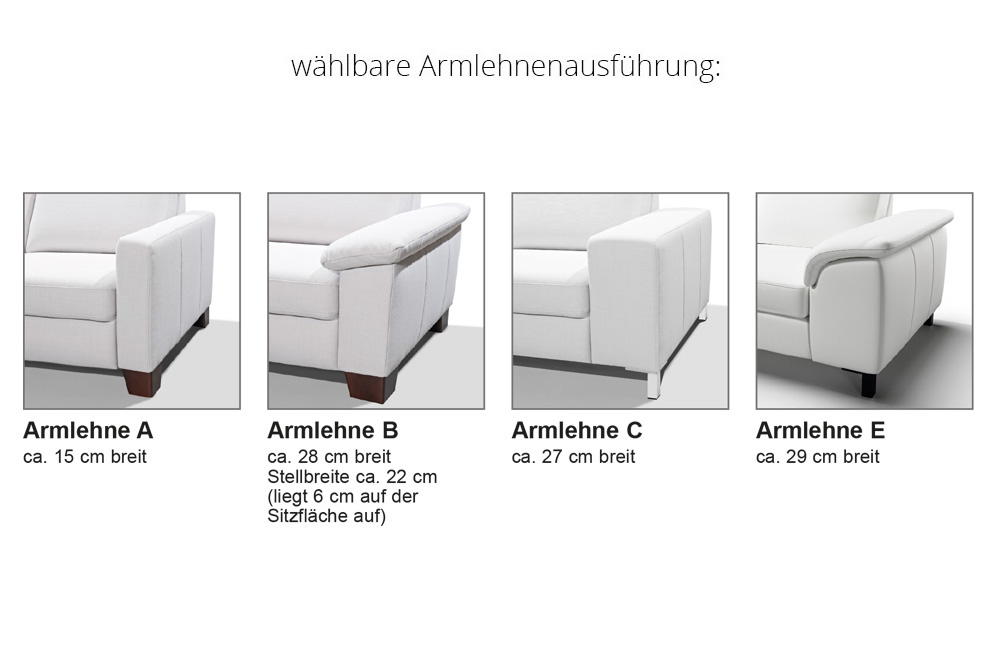 großer Polsterflächen entstehen, stellen keinen Sachmangel dar. Es handelt sich um einen natürlichen Vorgang, der als Charaktereigenschaft leger verarbeiteter Modelle zu sehen ist. Die Nahtverteilung kann bei Stoff- oder Lederverarbeitung unterschiedlich ausfallen. Die Verarbeitung von Zier-, Kapp- oder Doppelnähten kann in der Stoff- oder Lederausführung unterschiedlich ausfallen. Sofern das Modell in Leder bestellt wird, können zusätzlich Nähte entstehen! Einige Bezüge (Velours, Microfaser) weisen starke Schattierungen auf und changieren je nach Blickrichtung. Das heißt, bei unterschiedlichen Beleuchtungs- sowie Blickwinkeln kommt es zu einem Farbwechsel bzw. zu einer farblichen Veränderung des Bezuges. Diese Eigenschaften sind warentypisch und stellen keinen Beanstandungsgrund dar. Die Arm- und Rückenlehnen sind nicht zum Sitzen geeignet. Die maximale Belastbarkeit beträgt 15 kg.