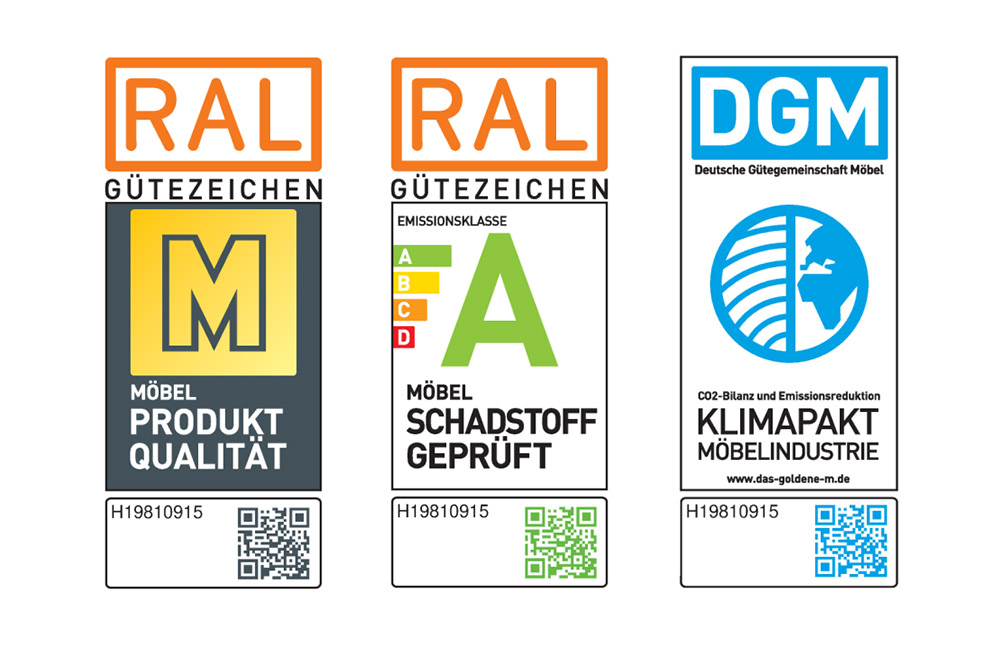 Unterfederung mit dauerelastischen Stahlwellenfedern. Sitz aus PUR-Schaum (Soft), schichtweise aufgebaut sowie in verschiedenen Stärken und Härten aufeinander abgestimmt. Abdeckung aus Wattevlies.