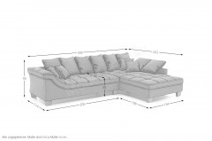 Bei Ausführung von Sitz und Kissen in Kunstleder kann es materialbedingt zu Geräuschbildung und stark rutschenden Kissen kommen. Polstermöbel sind ein handgefertigtes Produkt. Aus produktionstechnischen Gründen können Nähte hinsichtlich der Anordnung und Verarbeitung unterschiedlich ausfallen. Wir verarbeiten sämtliche Modelle mit legerer Polsterung. Da Material sich verändert, kommt es bei dieser Art der Polsterung zu stärkerer Faltenbildung. Dies ist unvermeidbar und stellt keinen Reklamationsgrund dar. Im Sitz und Rücken arbeiten wir mit hochwertigen Schäumen die sich durch nutzungsbedingte Belastung hinsichtlich der Elastizität ebenfalls verändern. Es kommt zu materialtypischen Sitzmulden (Lieblingsplatz-Effekt) die ebenfalls keinen Reklamationsgrund darstellen. Einige Bezüge (z. Bsp. Velours, Samt, Viskose) weisen starke Schattierungen auf und changieren je nach Blickrichtung. Das heißt, bei unterschiedlichen Beleuchtungs- sowie Blickwinkeln kommt es zu einem Farbwechsel bzw. zu einer farblichen Veränderung des Bezuges, dies ist eine warentypische Eigenschaft und stellt keinen Beanstandungsgrund dar.