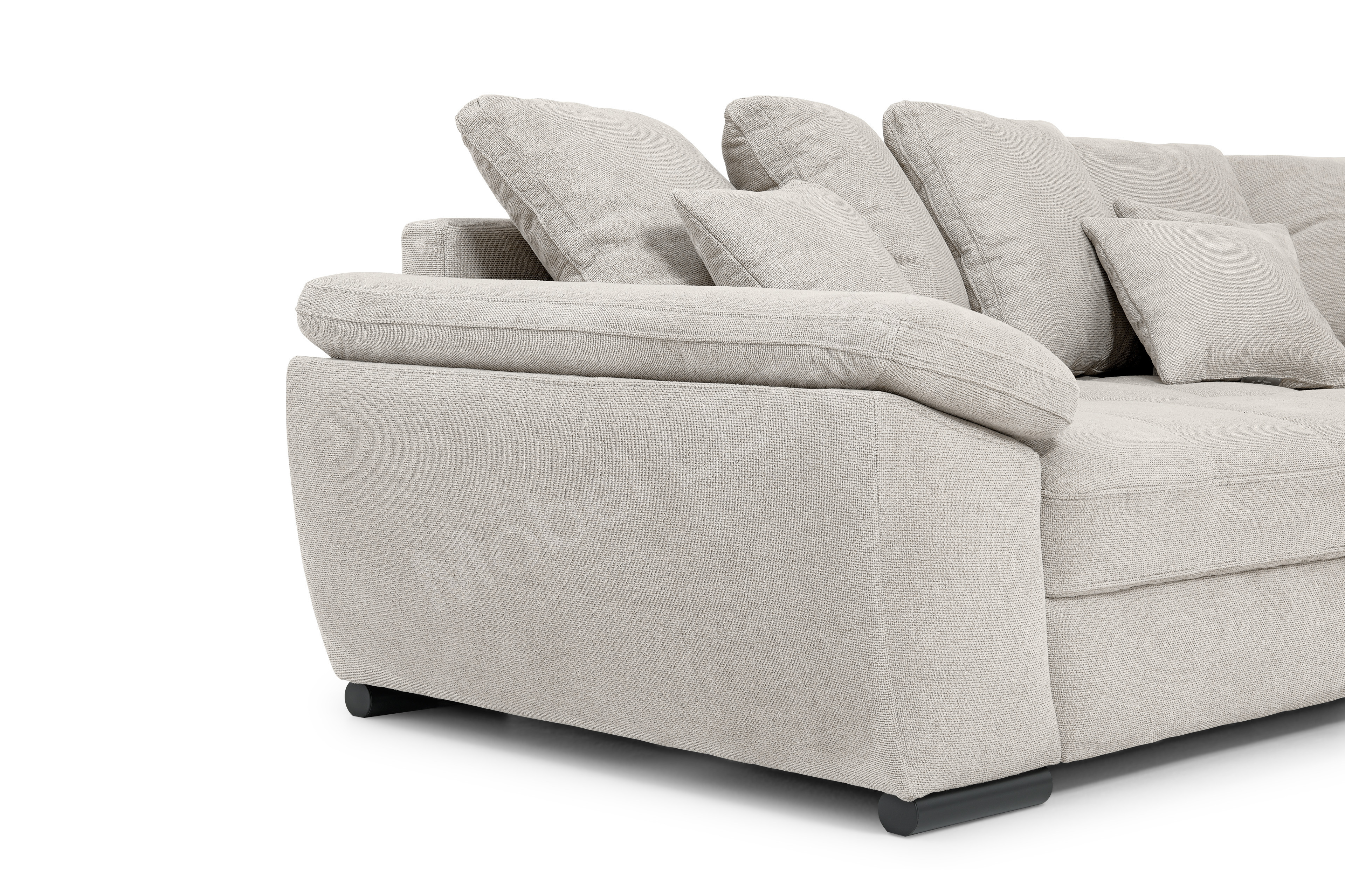 Gemeinsam lachen, träumen, kuscheln - die atemberaubende Polstergarnitur Richmond-LE25 vom Hersteller Nova Via Polstermöbel macht Ihr Wohnzimmer zu einem Ort, an dem die ganze Familie zusammenkommt und schöne Momente erlebt werden. Genießen Sie gemeinsam einen lustigen Spiele-Nachmittag, gemütlichen Filmabend oder gönnen Sie sich eine kleine Auszeit vom Alltag auf dem Ecksofa, welches mit einem Stellmaß von etwa 323 x 222 cm und einer bequemen Polsterung aus Polyschaum auf einer Wellenunterfederung ausreichend Platz sowie einen angenehmen Sitzkomfort schenkt. Während der 2-Sitzer zum entspannten Zurücklehnen einlädt, bietet die breite Recamiere genügend Fläche, um auch mal die Beine hochzulegen. Das Bezugskleid aus einem Chenille-Flachgewebe in dem warmen Farbton "cream" sowie die inkludierten Kissen strahlen Geborgenheit und pure Gemütlichkeit aus, sodass Richmond-LE25 zu etwas ganz Besonderem wird, oder gestalten Sie die Garnitur individuell nach Ihrem persönlichen Stil - von hellen, dezenten Tönen bis hin zu kräftigen Farbakzenten ist alles dabei. Für eine persönliche Note stehen auch verschiedene Kontrastnähte zur Auswahl, so sticht das Nova Via Sofa nochmal etwas mehr hervor und wird zu einem einzigartigen Möbelstück in Ihrem Zuhause.