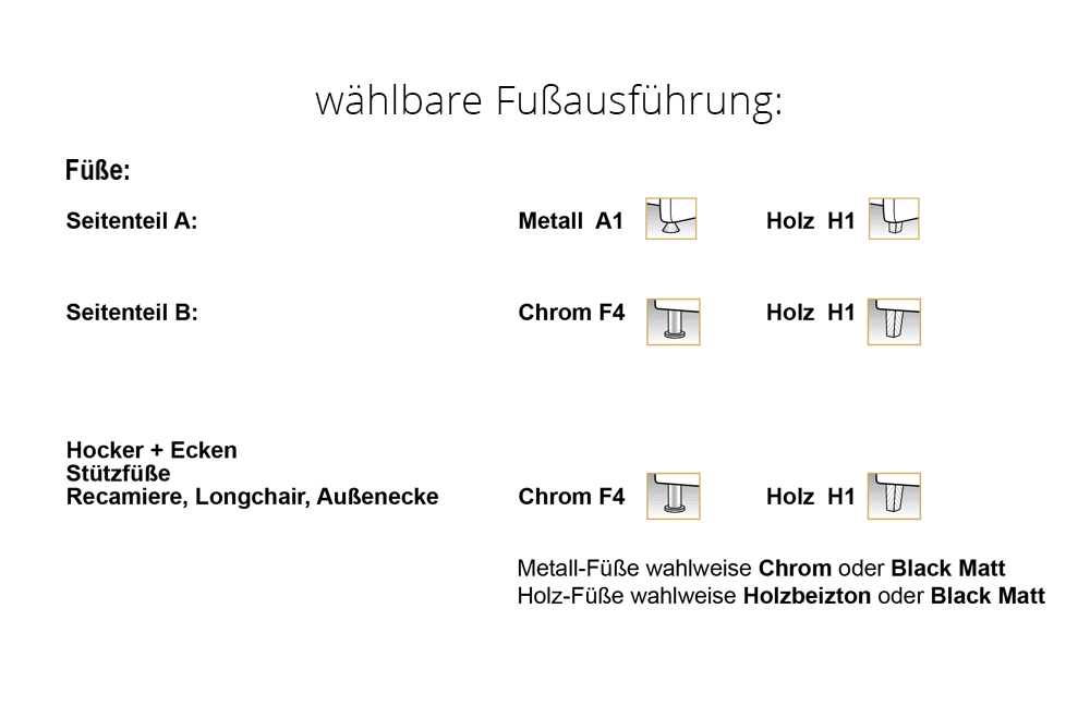Bei zweifarbiger Bezugsauswahl haben Armlehnen, Sitzfläche und Korpus eine Farbe und die Rückenkissen eine andere Farbe. Auf Wunsch können bei Zweifarbigkeit auch Armlehnen, Sitz- und Rückenpolsterung eine Farbe und der Korpus eine andere Farbe bekommen.