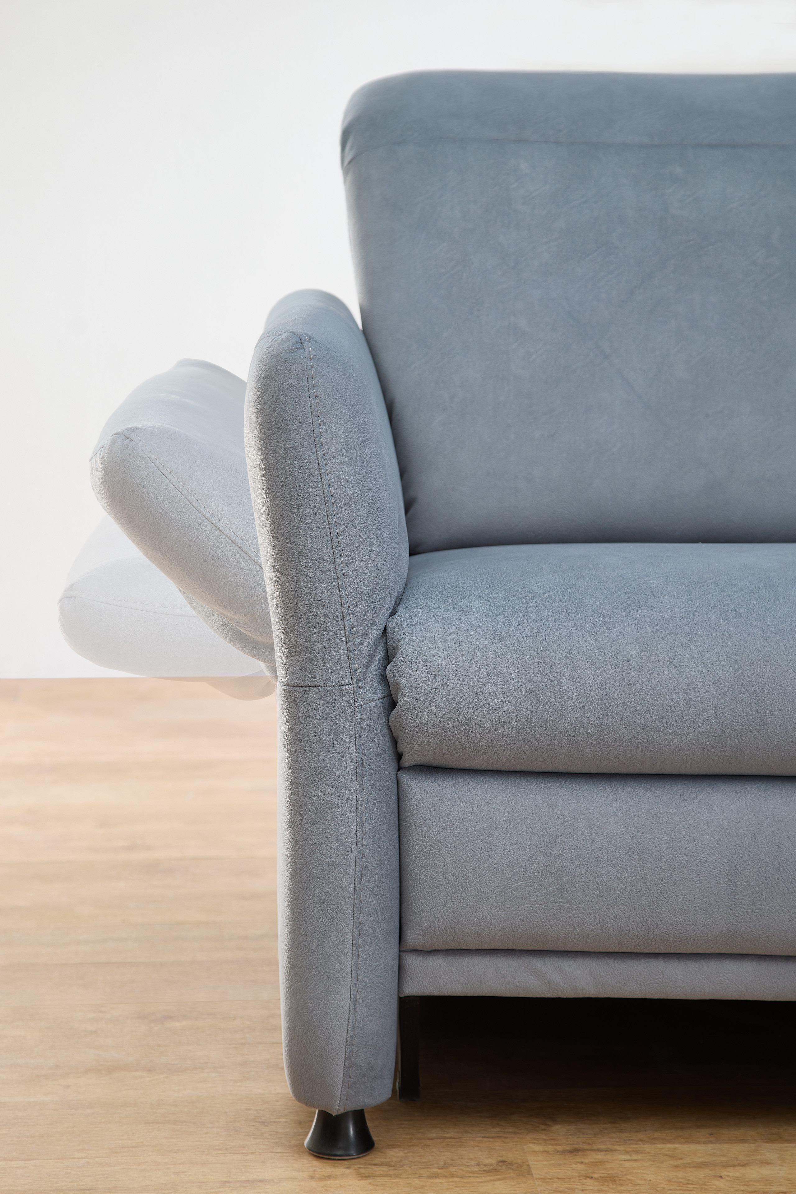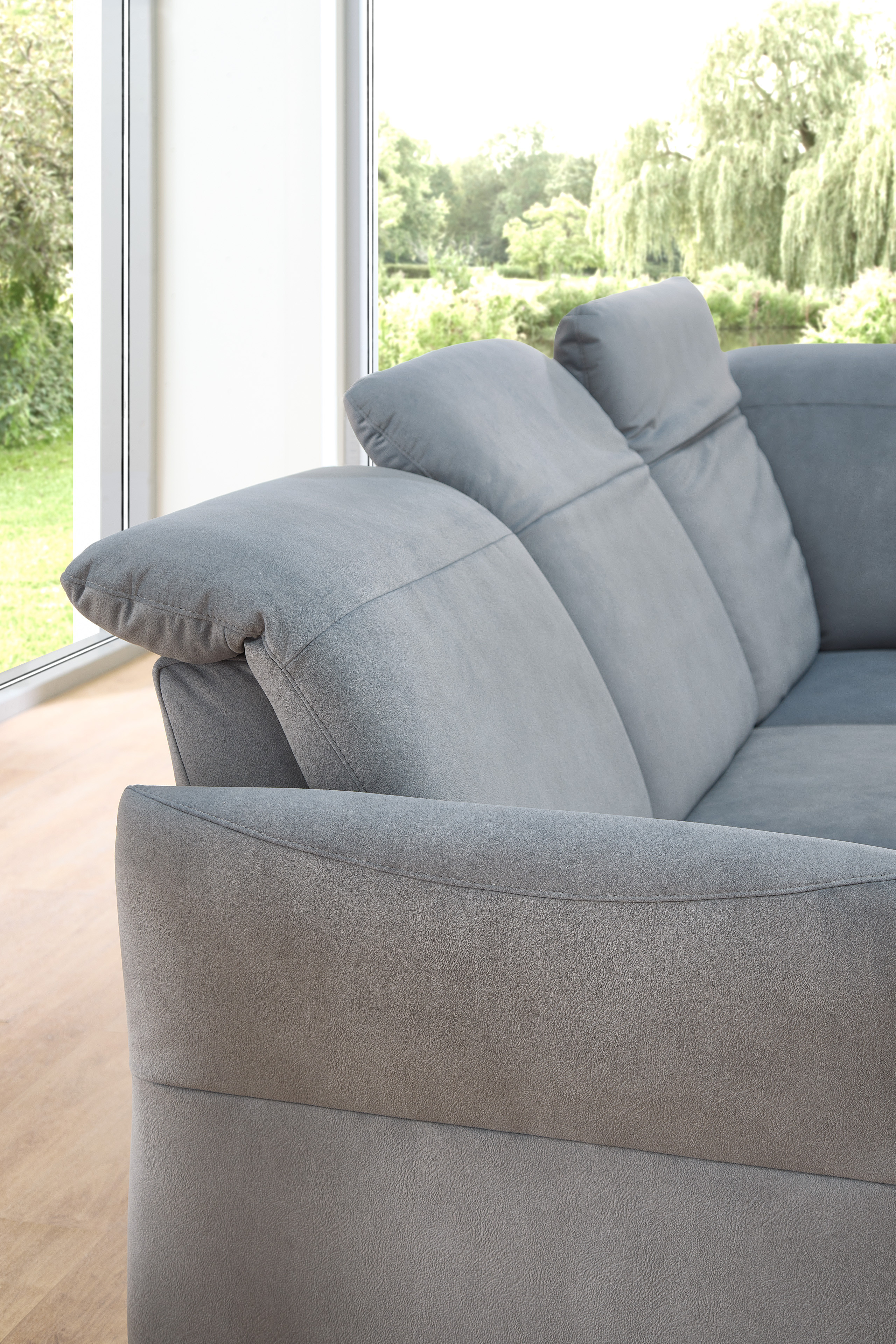 Der deutsche Möbelhersteller PM Oelsa macht Entspannen und Zurücklehnen zum Erlebnis - die Polsterecke Emilia-LE25 lädt dazu ein, jeden Moment in vollen Zügen zu genießen. Der hellblaue Microfaserbezug sorgt für ein stilvolles Erscheinungsbild und ein besonders angenehmes Sitzgefühl. Je nach persönlicher Vorliebe wählen Sie zwischen vier Polstervarianten Ihren Favoriten - von angenehm fest über soft bis hin zur Boxspring-Polsterung für höchsten Sitzkomfort. Für mehr Bequemlichkeit lässt sich das Sofa individuell ausstatten: Entscheiden Sie sich wahlweise für eine integrierte Sitzheizung oder bestellen Sie die Recamiere mit einen praktischen Bettkasten - ideal, um Decken, Kissen sowie Zeitschriften platzsparend zu verstauen. Dank der motorischen Aufstehhilfe, welche Sie für den äußeren 1-Sitzer zubuchen können, genießen Sie jederzeit Ihre Lieblingsposition und starten nach dem Aufstehen wieder mühelos zurück in den Alltag. Verstellbare Kopfteile steigert zusätzlich den Bequemlichkeitsfaktor und lassen sich individuell an Ihre gewünschte Position anpassen. Zudem steht Ihnen eine große Auswahl an attraktiven Stoffen und Farben zur Verfügung, sodass sich die Eckcouch perfekt an Ihren Einrichtungsstil anpassen lässt. So vereint Emilia-LE25 durchdachte Funktionalität mit modernem Wohnkomfort. Gestalten Sie Ihre persönliche Traumgarnitur nach Ihren Wünschen - für ein Zuhause, das Stil, Komfort und Gemütlichkeit harmonisch verbindet. Die PM Oelsa Eckgarnitur Emilia-LE25.