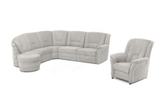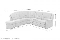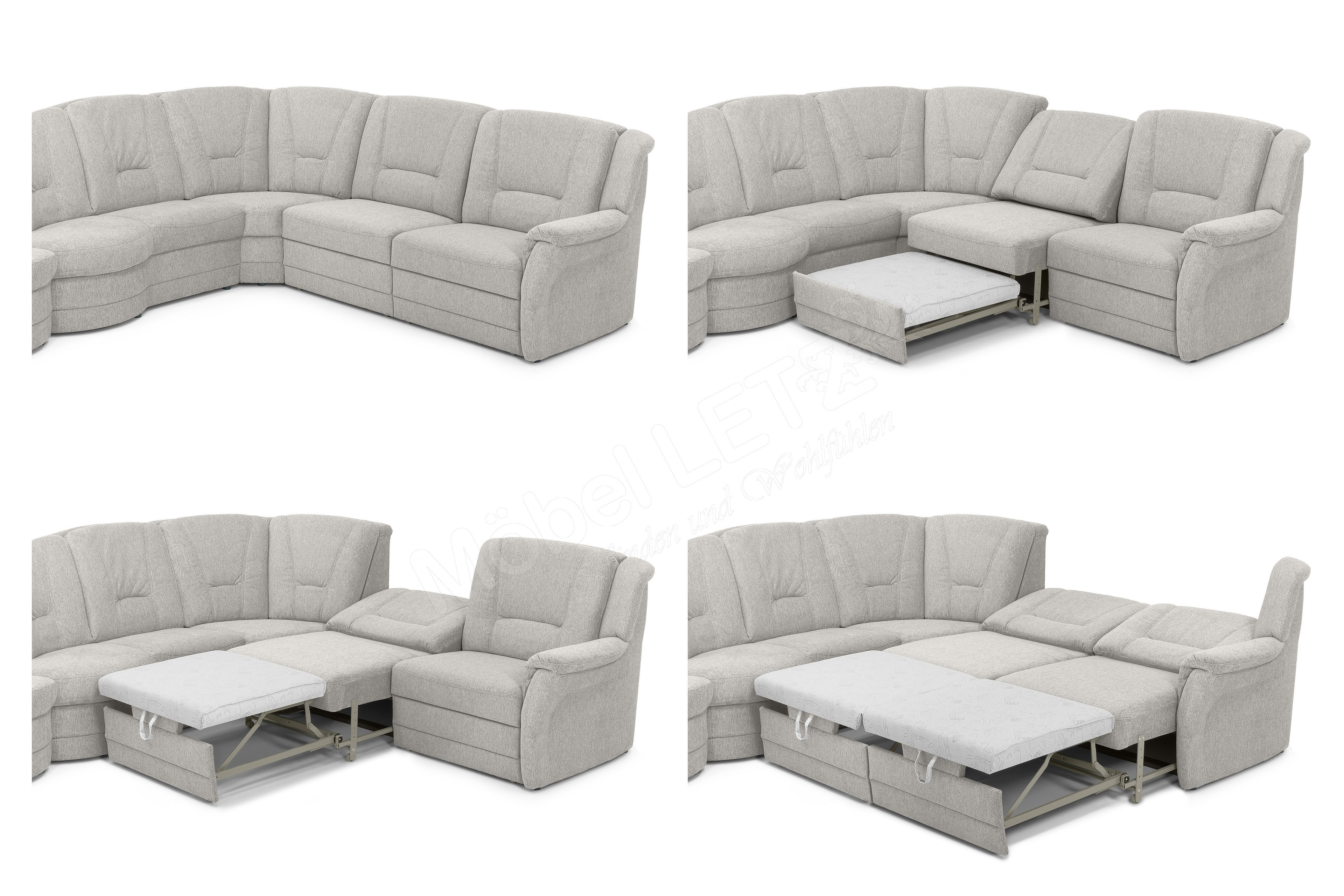 - Funktionen: Außenecke mit schwenkbarem Anstellhocker, Rundecke mit Relaxrücken, Schlaffunktion - Liegefläche mit Drell bezogen, TV-Sessel mit manueller Relaxfunktion
