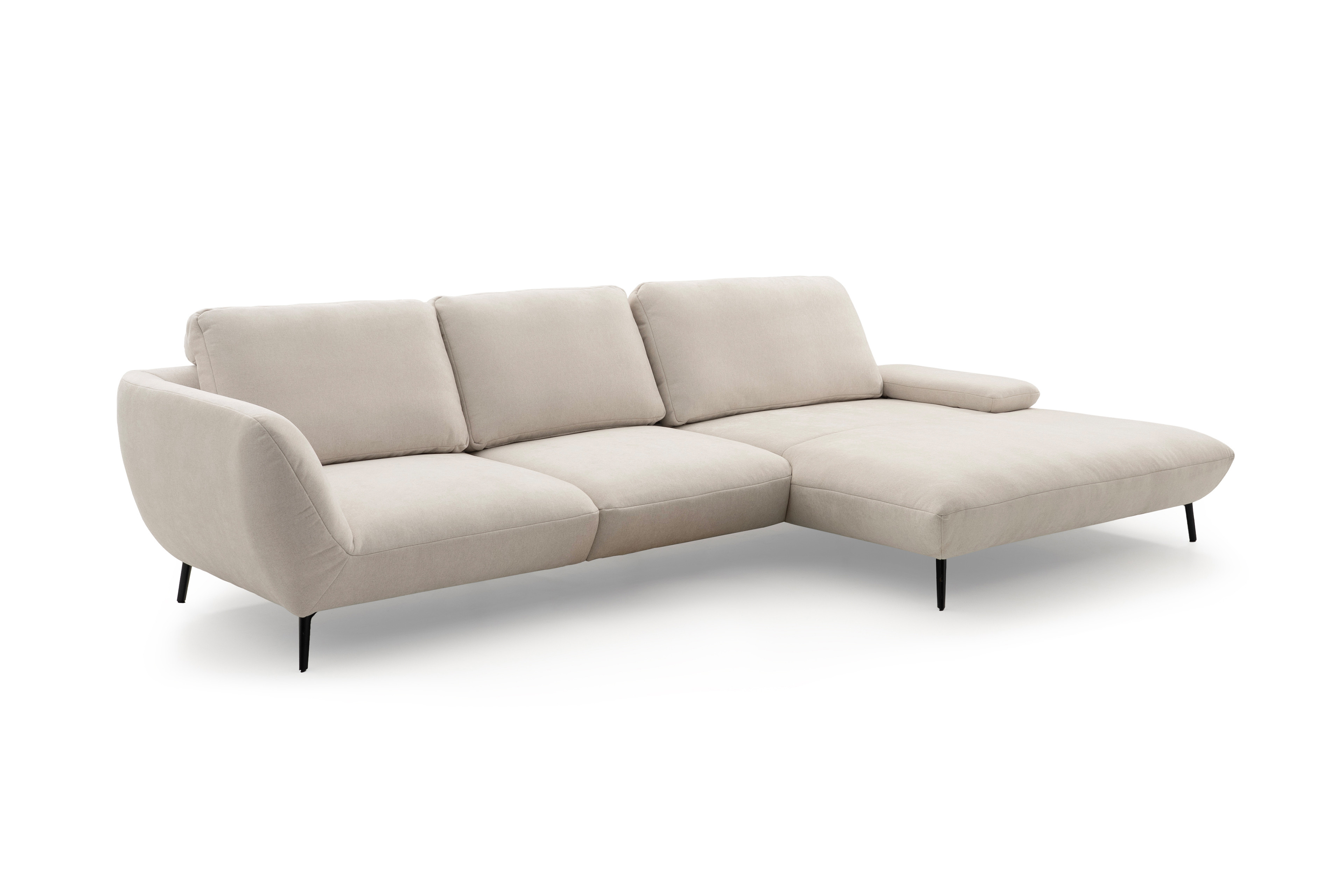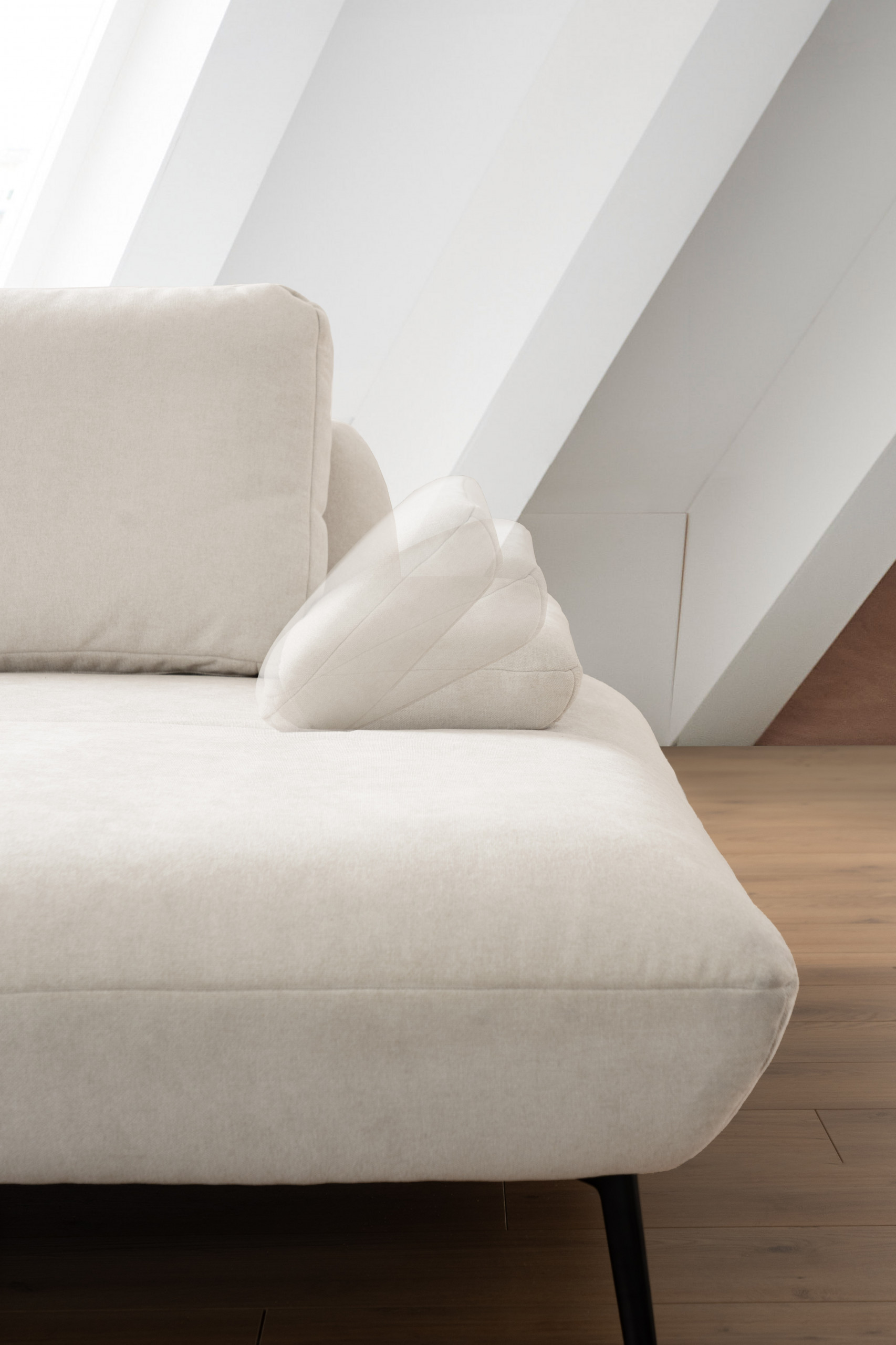 Verleihen Sie Ihrem Wohnzimmer ein Upgrade mit Stil - die Eckgarnitur Benton von Poco ist das neue Highlight für Liebhaber moderner Interieurs. Die Kombination aus einem sanften cremefarbenen Chenille-Flachgewebe und markanten schwarzen Metallfüßen kreiert eine Ästhetik, die gleichermaßen luxuriös wie einladend wirkt. Mit ihren großzügigen Abmessungen von ca. 300 x 173 cm fügt sich diese Couch harmonisch in unterschiedlichste Raumkonzepte ein - vom kompakten Apartment bis zum weitläufigen Loft. Ein besonderer Pluspunkt: Da der Rücken serienmäßig im Originalstoff bezogen ist, müssen Sie das Sofa nicht zwingend vor der Wand platzieren. Gestalten Sie Ihr Zuhause offen und nutzen Sie das Möbelstück als stilvollen Raumteiler. Für eine besonders edle Optik können Sie die Garnitur sogar auf Wunsch mit einem Echtlederbezug bestellen. Ob beim gemütlichen Nachmittagskaffee, beim entspannten Feierabend-Drink oder dem nächsten Heimkino-Abend mit der Familie - die hochwertige Polsterung garantiert Ihnen in jeder Lebenslage erstklassigen Komfort. Die Armlehne "Typ A" bietet optional eine praktische Verstellfunktion für noch mehr Bequemlichkeit. Zusätzlich lässt sich die Poco Polsterecke noch durch einen passenden Hocker oder gemütliche Zierkissen erweitern. Lassen Sie Ihrer Kreativität freien Lauf: Dank einer breiten Palette an Farben, Bezugsmaterialien und unterschiedlichen Stellvarianten lässt sich das Modell Benton von Poco Polstermöbel perfekt auf Ihren persönlichen Wohnstil zuschneiden. Konfigurieren Sie noch heute Ihr neues Lieblingsstück!