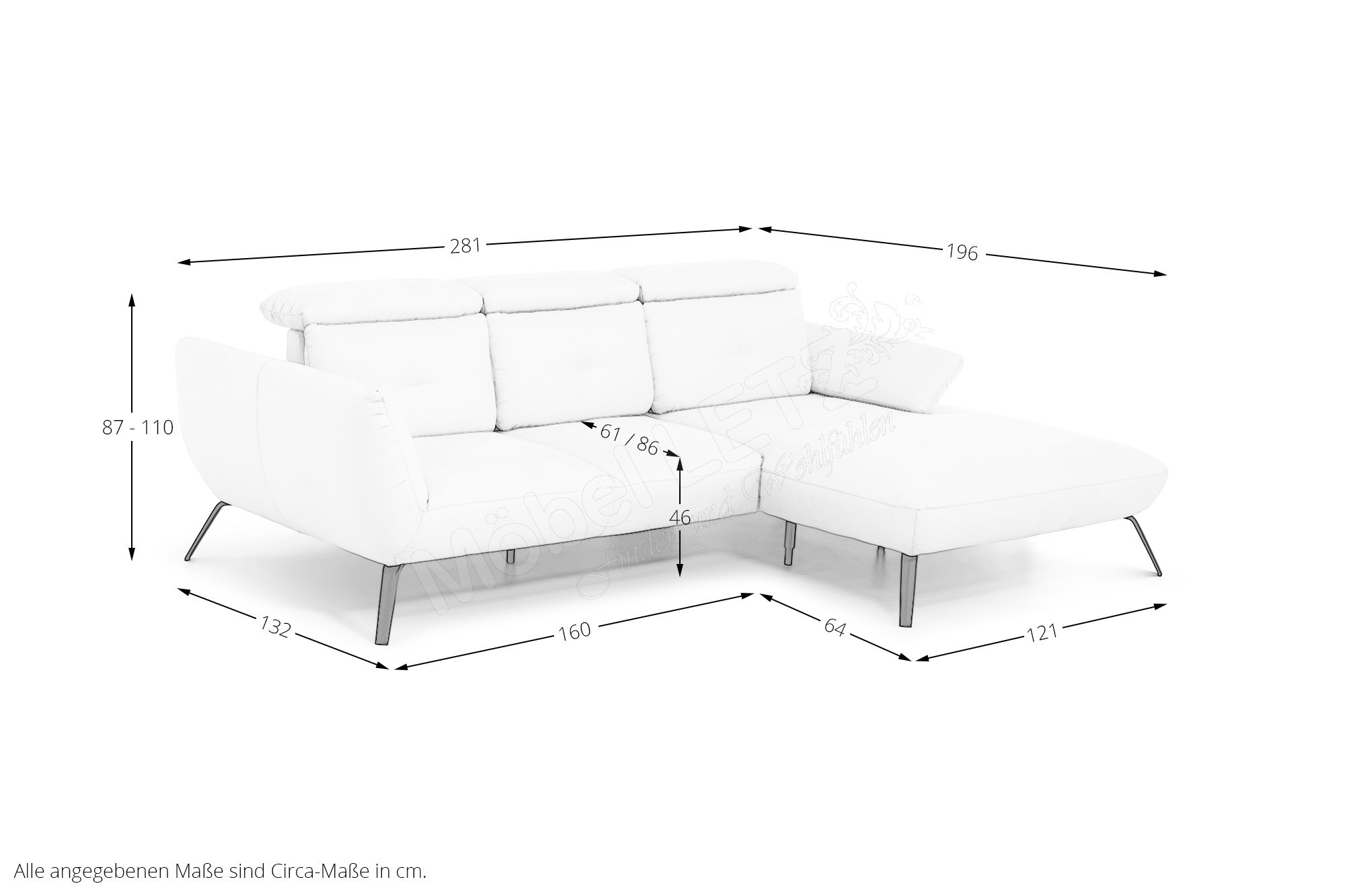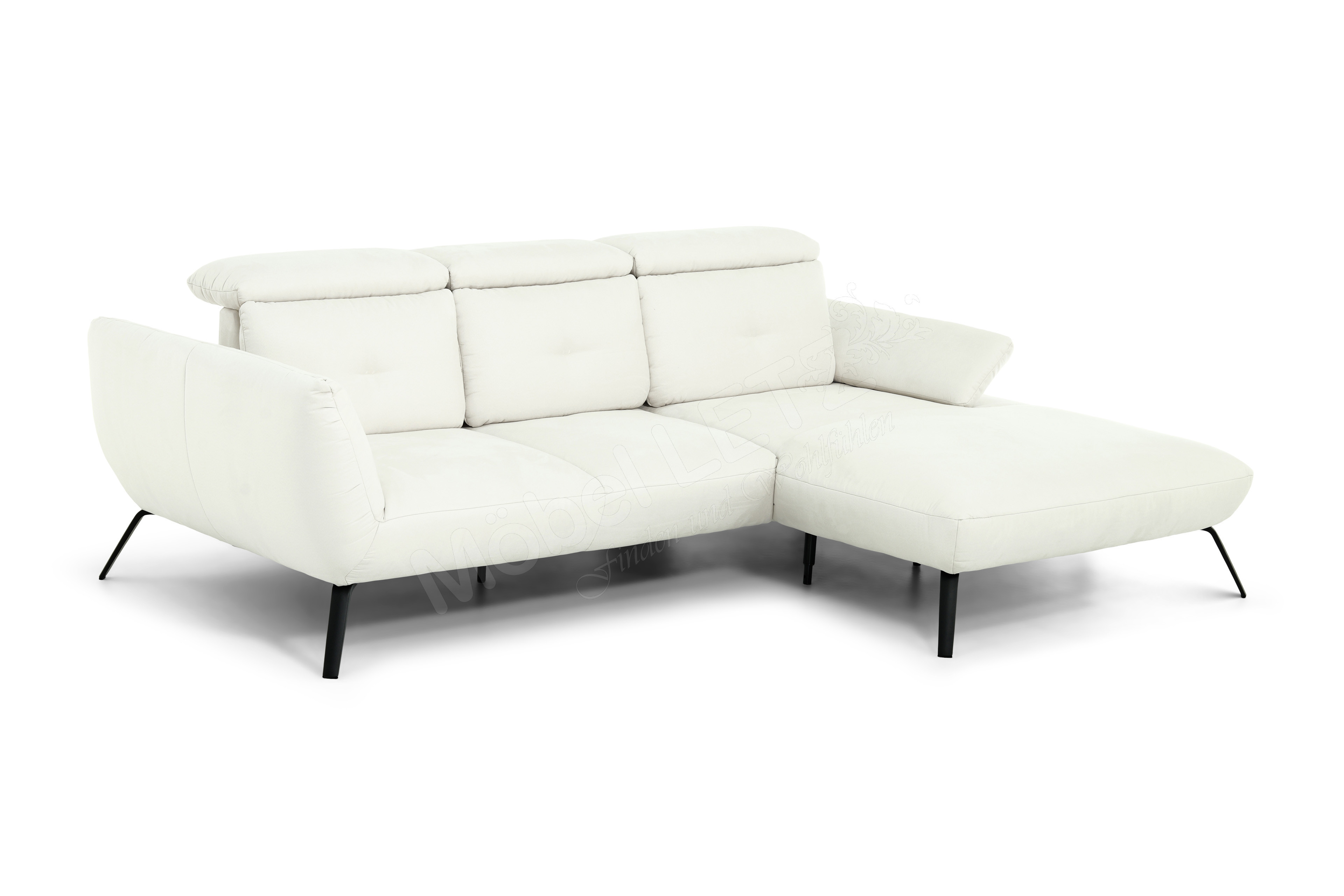 Sie sind auf der Suche nach einem gemütlichen Sofa, welches mit einem modernen Design Ihr Wohnzimmer bereichert und zudem einen angenehmen Sitzkomfort sowie ausreichend Platz bietet? Dann ist das Polstersofa Seattle aus dem Hause Poco Polstermöbel genau das Richtige. Mit einem Stellmaß von etwa 281 x 196 cm, welches sich aus einem 2-Sitzer sowie einem seitlich anschließenden Longchair zusammensetzt, schenkt die Eckgarnitur genügend Fläche für Sie und Ihre Liebsten. Beim Platznehmen überzeugt das Möbelstück mit einer erstklassigen Polsterung aus einem weichen Kaltschaum, ruhend auf Wellenfedern, und sorgt für ein bequemes Sitzen beim Romanlesen oder Lieblingsserien schauen. Ein besonderes Highlight ist die manuell verstellbare Rückenlehne, mit welcher sich die Sitztiefe von etwa 86 cm auf ca. 61 cm verkürzen lässt und Sie so jeden Tag neu entscheiden können zwischen einer aufrechten Sitzhaltung oder entspanntem Zurücklehnen. Während die cremefarbene Microfaser sanft die Garnitur umhüllt und Ruhe sowie Geborgenheit in Ihren Räumlichkeiten bringt, setzen die schwarzen Metallfüße elegante Akzente. Dank der dezenten Ausstrahlung lässt sich das Sitzmöbel optimal in jeden Einrichtungsstil integrieren. In unserem Angebot erhalten außerdem noch einen passenden Hocker sowie dekorative Kissen dazu, die das Gesamtbild stilvoll ergänzen. Mit seinem besonderen Charme wird die Poco Couch zu einer perfekten Wohlfühloase, an der Sie nach einem langen Alltag wunderbar abschalten und relaxen können - Modell Seattle.