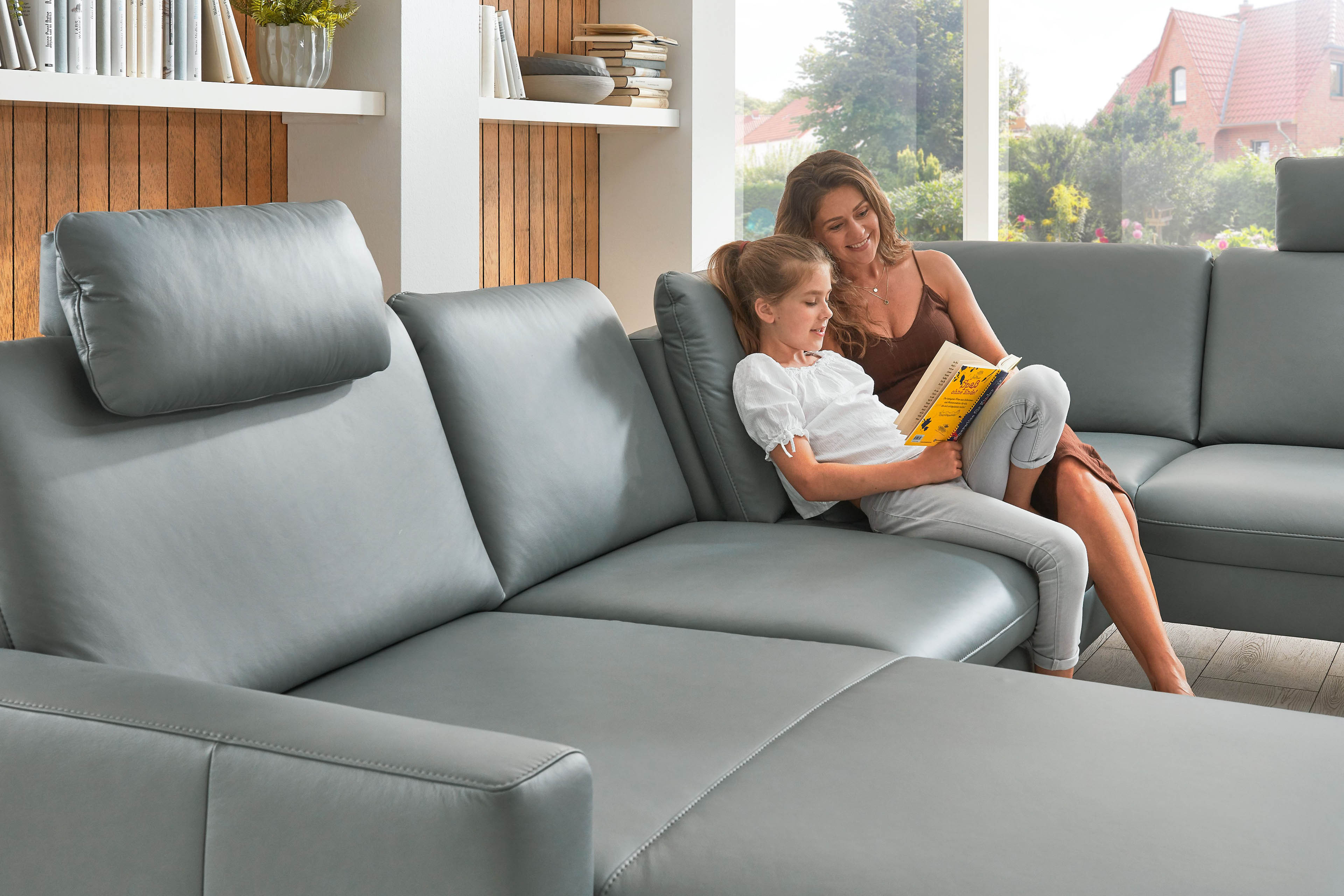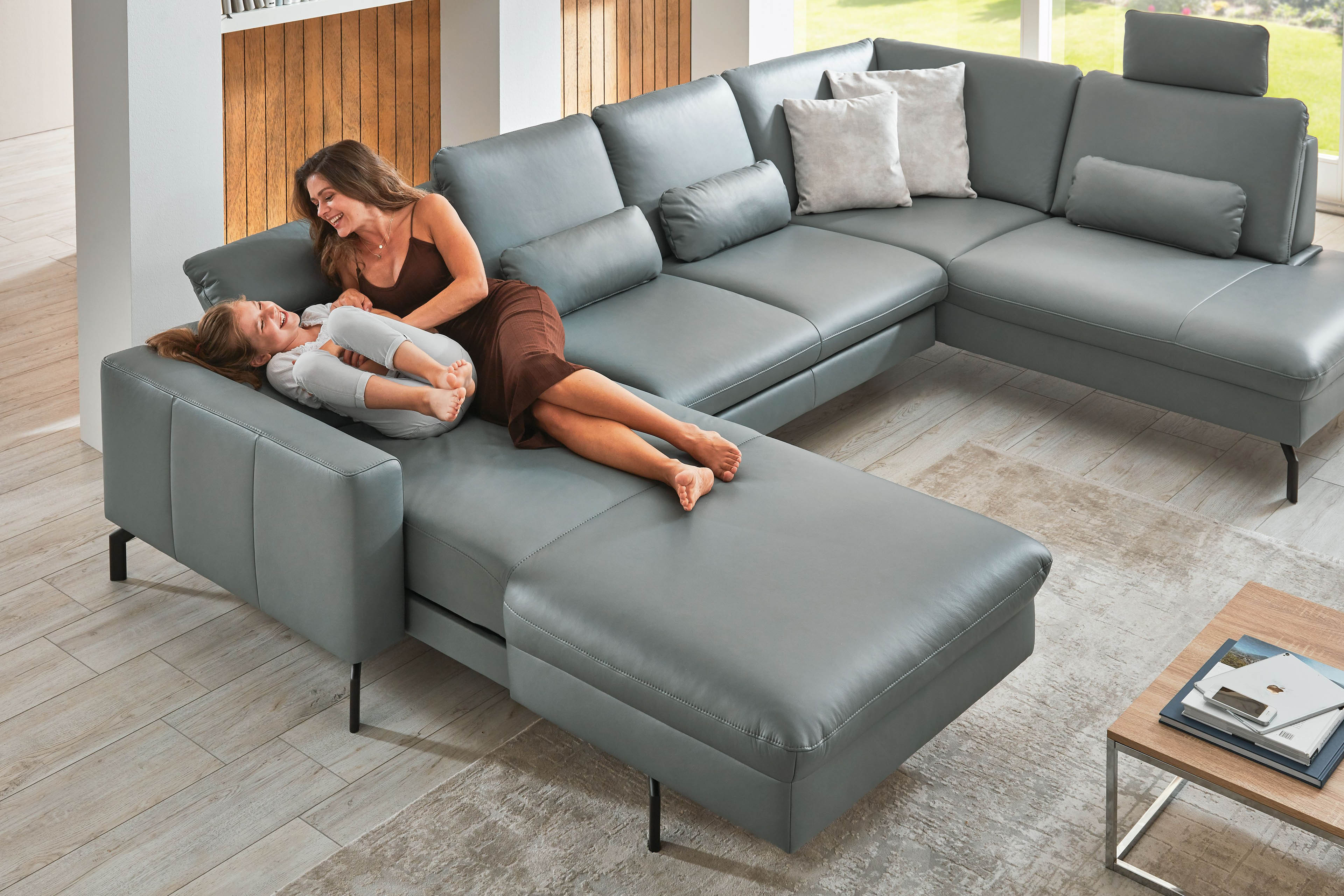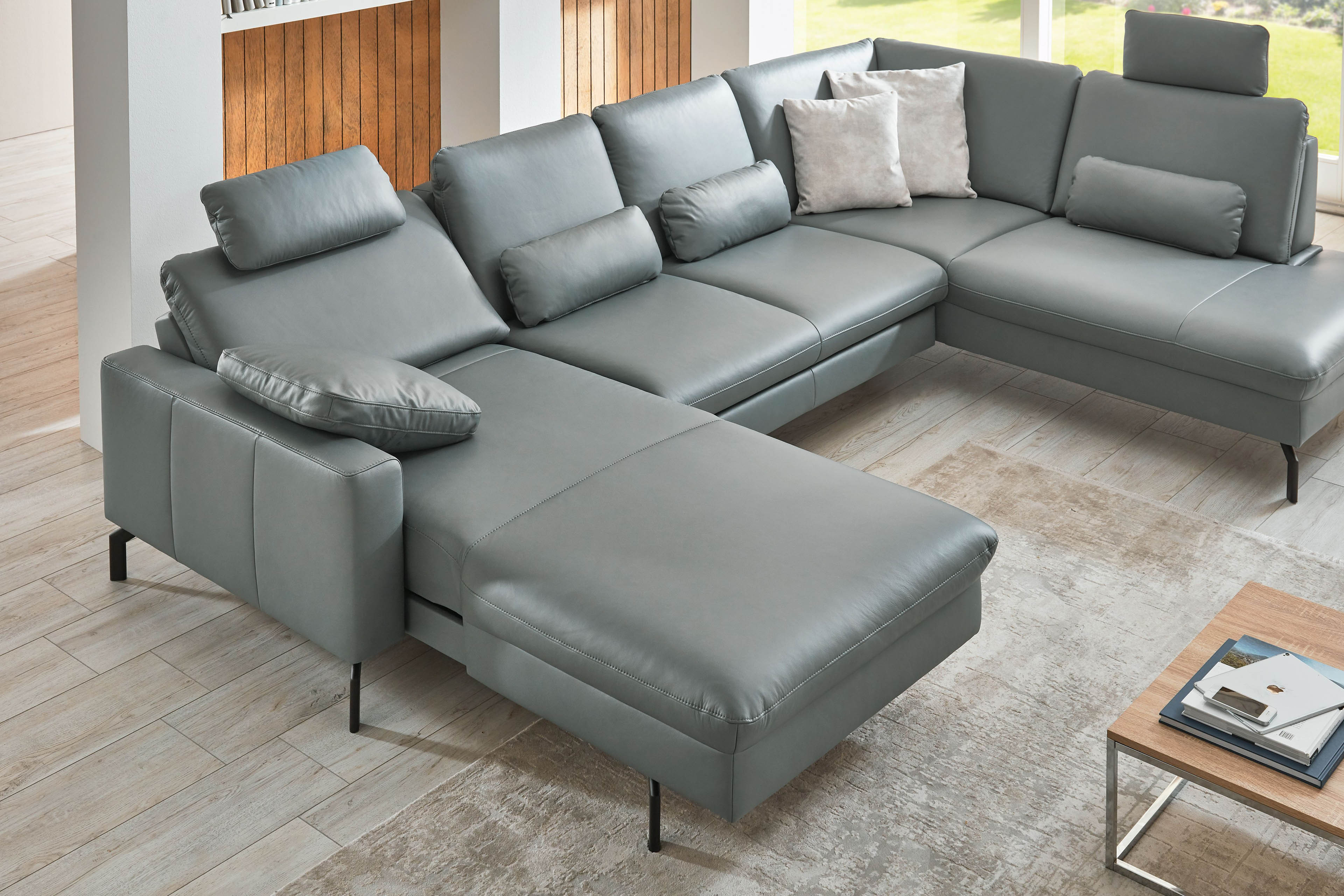 mit Schlaffunktion in Leder, Liegefläche echt bezogen