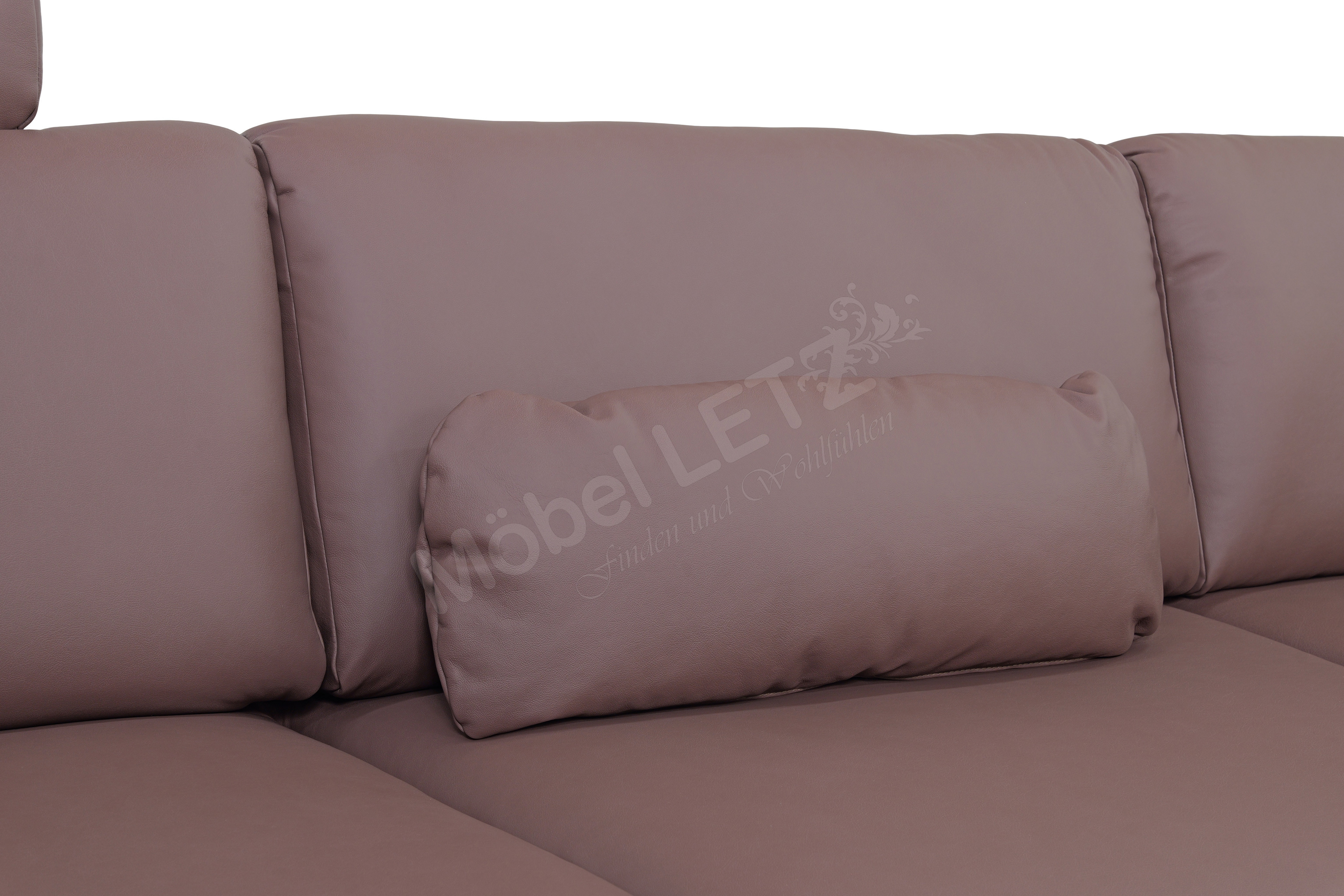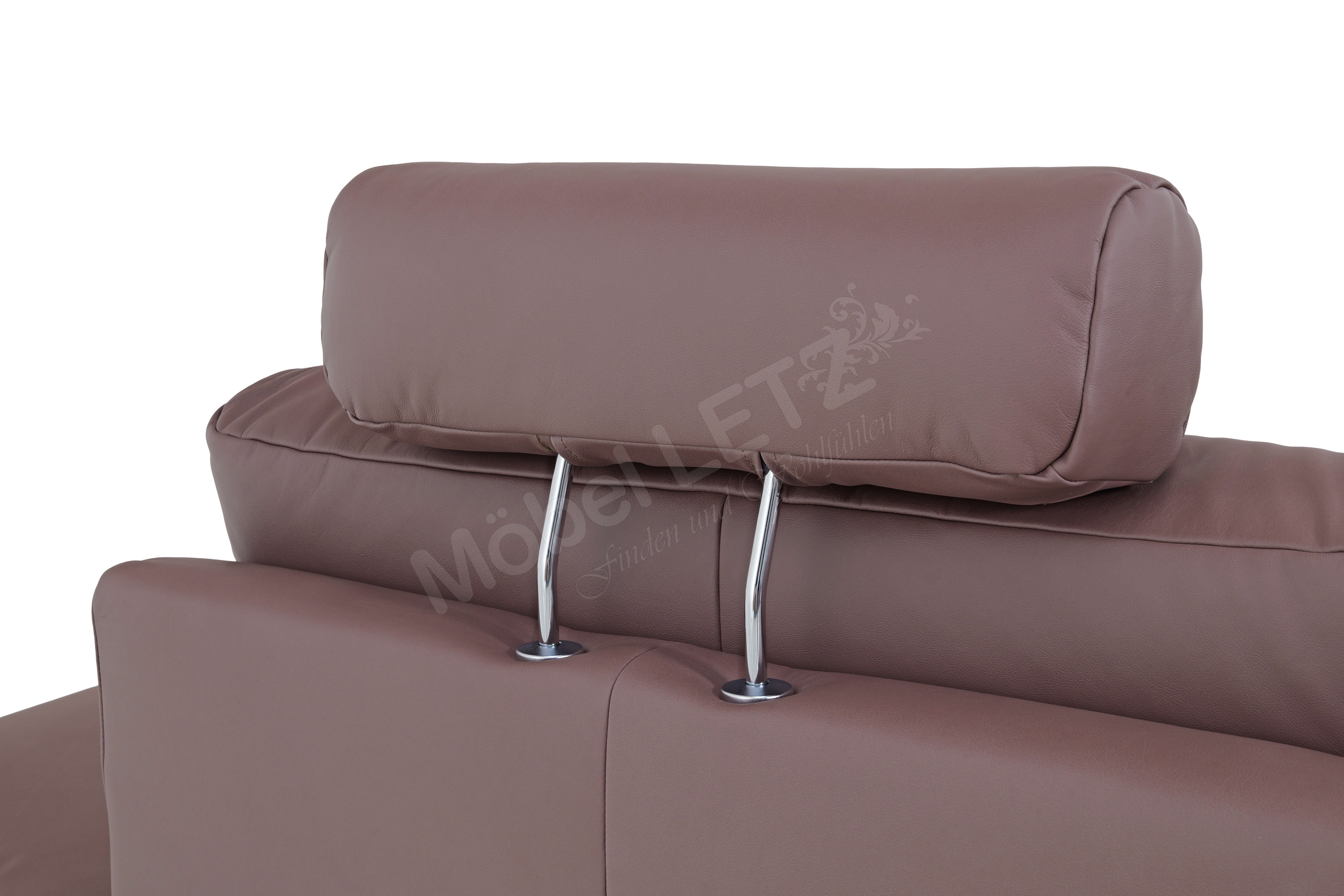 PN-EM24126 von Polinova - eine hervorragende Kombination aus schlichter Eleganz, hohem Komfort und einer Fülle an zusätzlichen Ausstattungen. Dieses stilvolle Ecksofa präsentiert sich in einer gelungenen Zusammenstellung aus einem 3-Sitzer mit Armlehne, einer Spitzecke sowie einem 1,5-Sitzer mit Anstellhocker, ist mit einem hochwertigen Semianilinleder in einem warmen, dunkel gehaltenen Farbton in Altrosa bezogen und wird von schlanken, schwarzen Metallfüßen getragen. Dank des zeitlosen Designs lässt sich das Polinova Sofa nahtlos in nahezu jeden Einrichtungsstil integrieren, ohne dabei aufdringlich zu wirken. Besonders hervorzuheben ist die exzellente Polsterung, die durch eine clevere Sandwichbauweise aus zwei unterschiedlichen Kaltschaumqualitäten gefertigt ist. Diese Materialien sind in verschiedenen Härten und Höhen kombiniert, um einen außergewöhnlichen Sitzkomfort zu bieten, der dazu einlädt, stundenlang entspannt zu verweilen. Mit einer beeindruckenden Stellfläche von ca. 298 x 254 cm präsentiert sich die Polsterecke als ideales Zentrum Ihres Wohnzimmers und bietet ausreichend Fläche, um auch Gästen bei geselligen Abenden einen bequemen Platz anzubieten. Sie könnte somit nicht nur Ihr persönlicher Rückzugsort, sondern auch der Mittelpunkt freundschaftlicher Begegnungen werden. Falls Sie Ihrem neuen Möbelstück noch mehr Individualität und Funktionalität verleihen möchten, stehen Ihnen eine Reihe optionaler Erweiterungen zur Verfügung. So bietet das Modell Optionen wie eine verstellbare Armlehne sowie in der Höhe und Neigung anpassbare Kopfstützen, wodurch der Sitzkomfort noch weiter optimiert werden kann. Für zusätzliche Akzente und ein Maximum an Gemütlichkeit können Sie Ihre Polstergarnitur mit Kissen in unterschiedlichen Ausführungen ergänzen. Diese kleinen Details verleihen Ihrer neuen Garnitur nicht nur eine besondere Note, sondern steigern zudem das Wohlfühlambiente erheblich. Zögern Sie nicht länger! Holen Sie sich noch heute Ihr persönliches Lieblingsmöbelstück für Ihr Zuhause - PN-EM24126 aus dem Hause Polinova.
